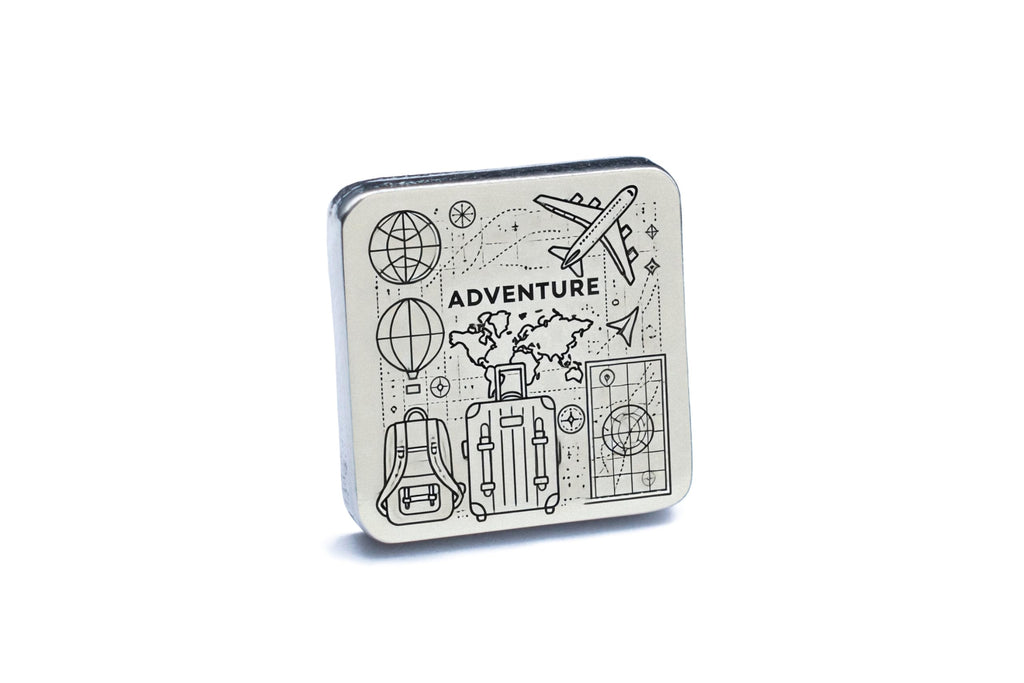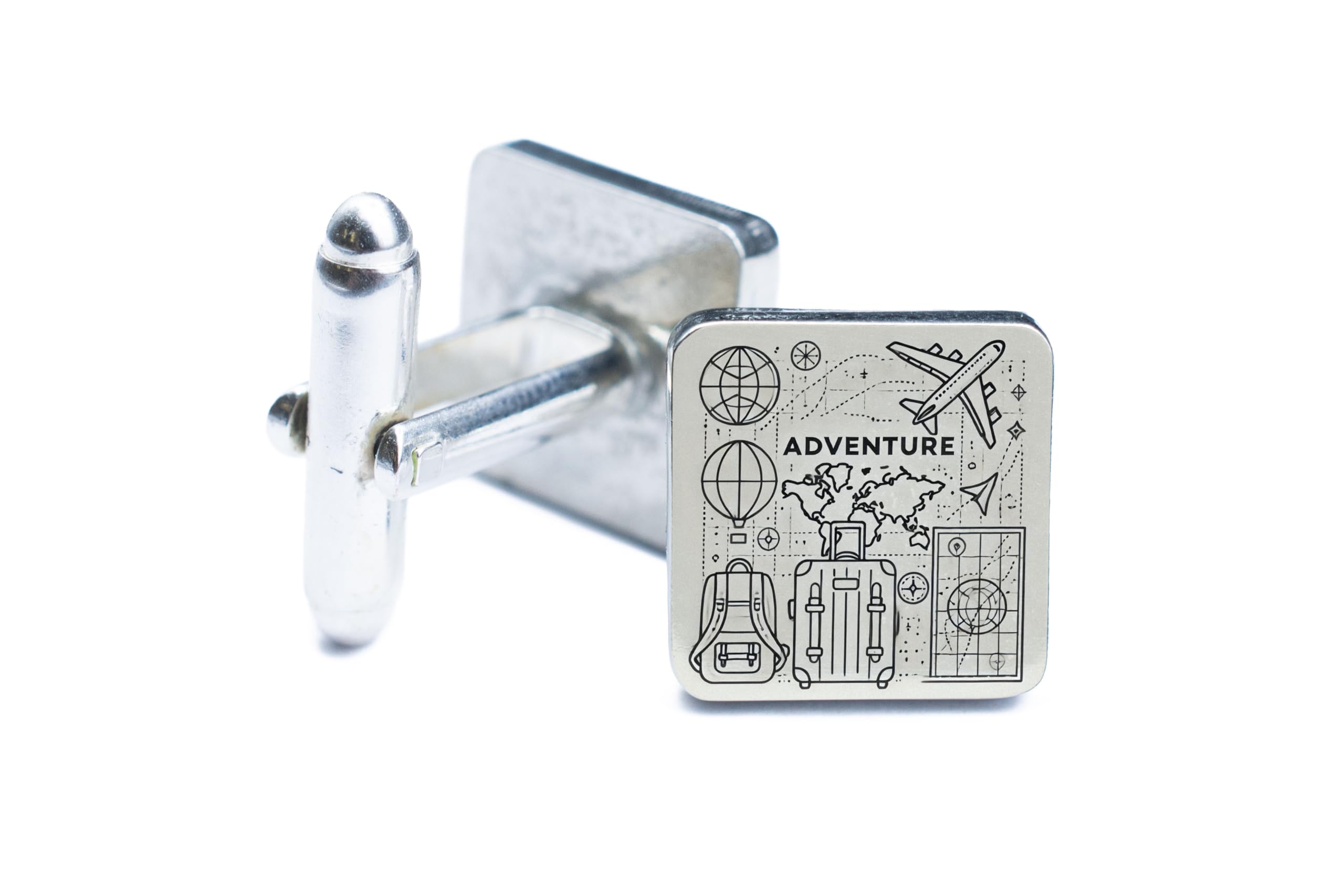 - UV printed cufflinks with a modern and stylish 'adventure' text, perfect for adding personality to your formal attire