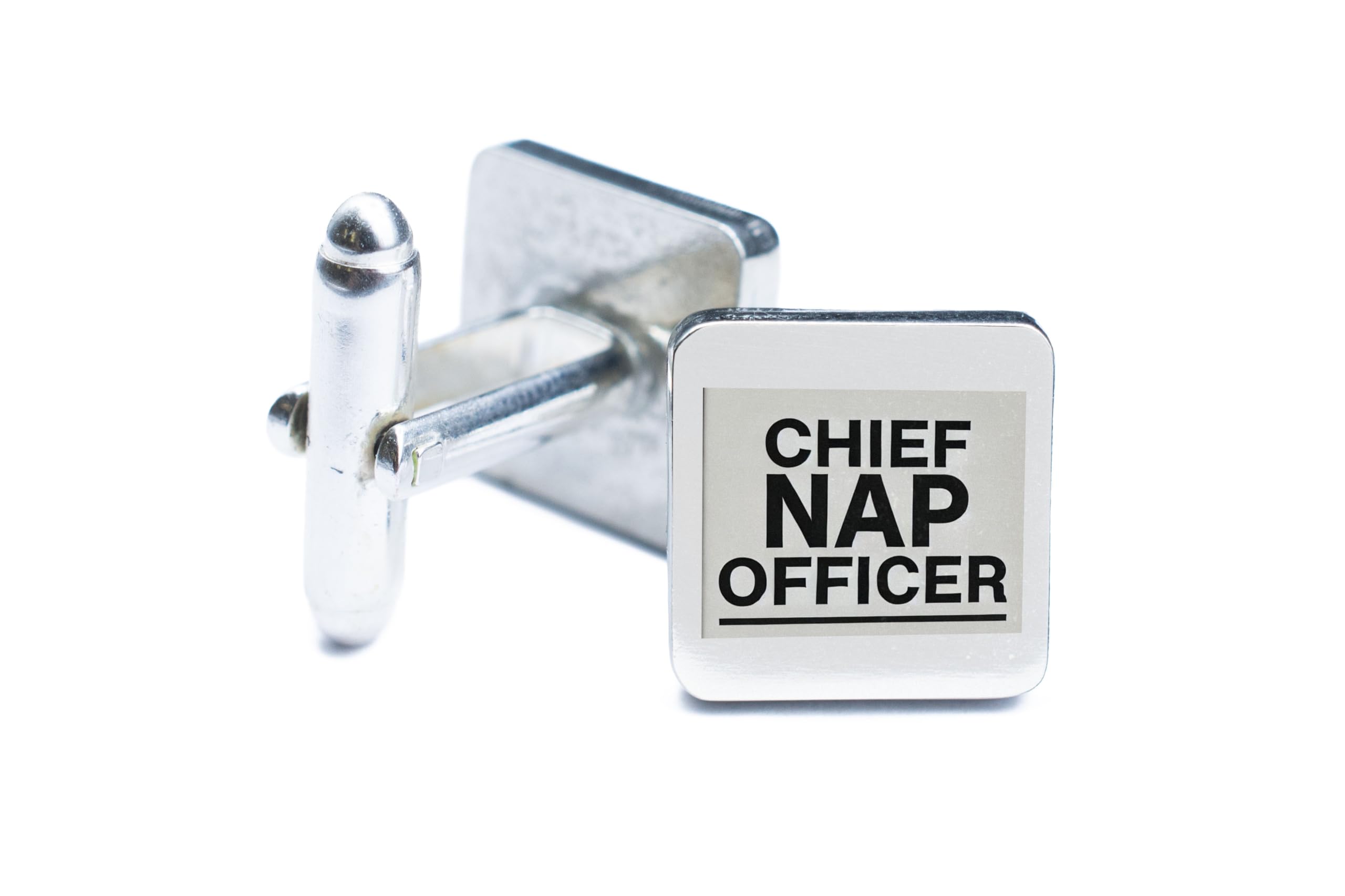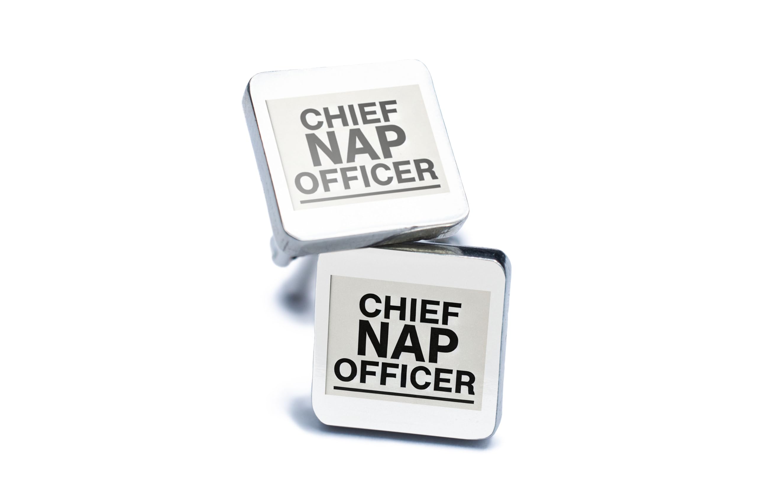 • Handcrafted UV printed cufflinks featuring a Chief Nap Officer theme - a fun and unique men's accessory