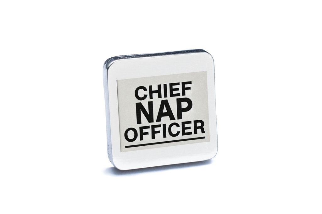 Add a touch of lighthearted fun to your outfit with these handcrafted UV Printed Chief Nap Officer Cufflinks. Made from quality tin and pewter, these novelty cufflinks feature a unique design that is sure to make a playful fashion statement. The UV printed design reads 'Chief Nap Officer' in bold, eye-catching colours, making it a great gift for men who appreciate a good laugh. These cufflinks are the perfect accessory for casual wear, adding a touch of humour to any outfit. Whether you're a dedicated napper or just someone who loves a good joke, these cufflinks are a must-have addition to your collection.