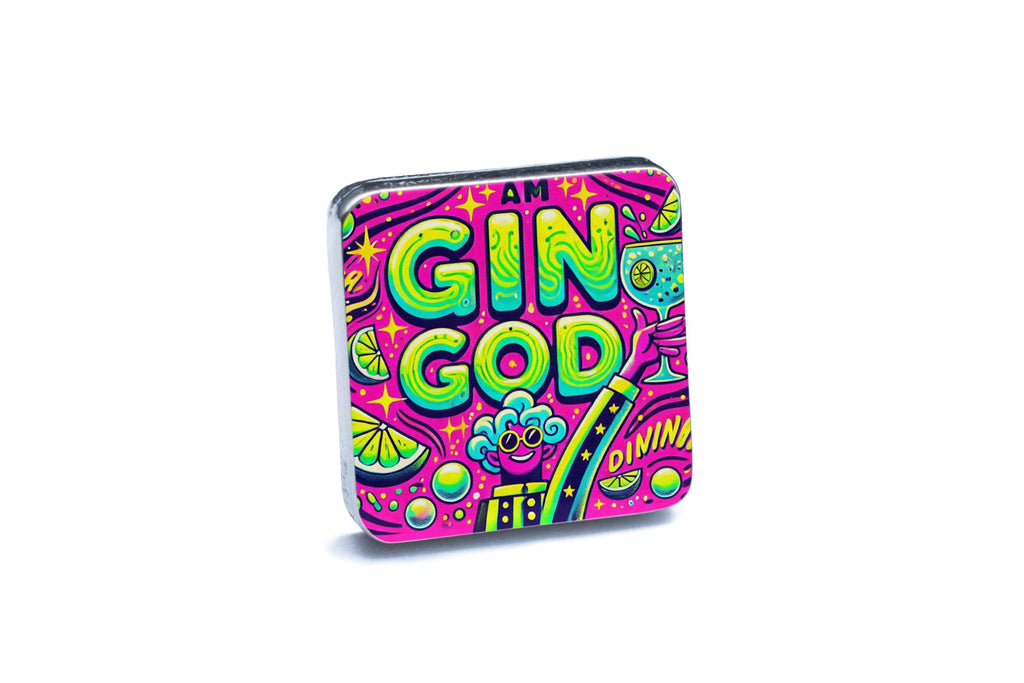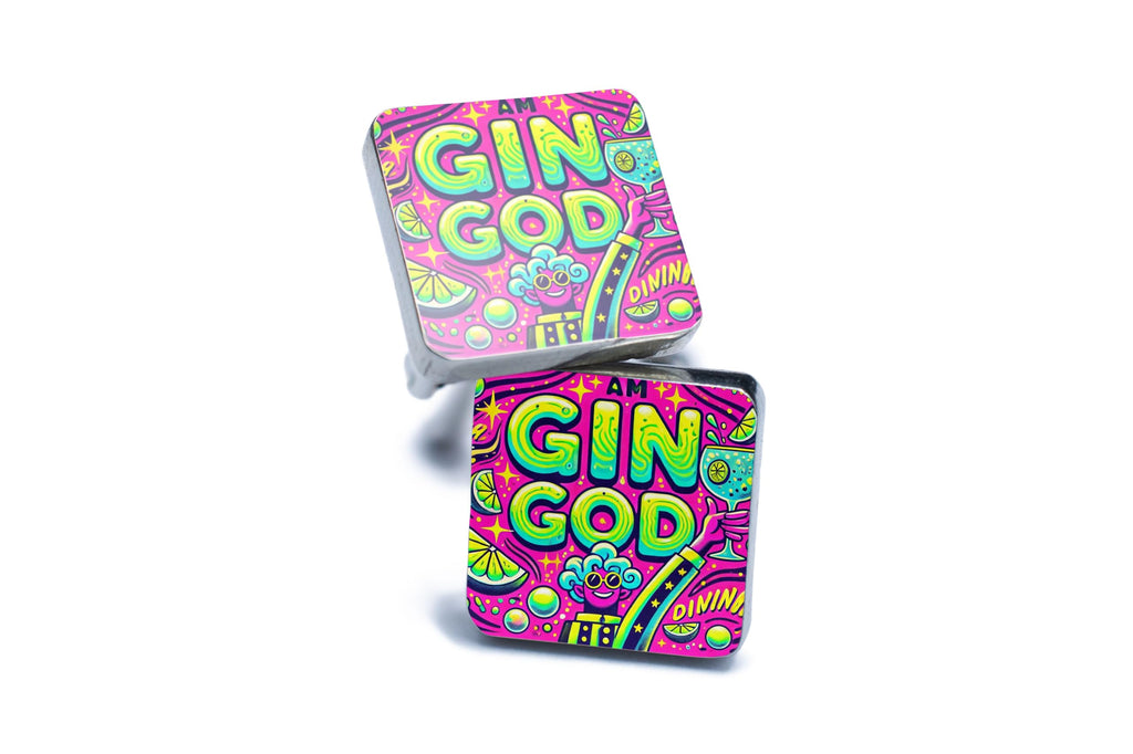 Introducing our Handcrafted UV Printed Gin God Cufflinks, featuring a colourful cocktail typography design that is sure to make a statement. These novelty cufflinks are the perfect accessory for gin lovers who appreciate fun and artistic fashion. Each cufflink is handcrafted from tin and pewter, and the unique UV printed design showcases a bold typography reading 'Gin God'. The bright pop art style of these cufflinks makes them ideal for parties or special occasions, adding a touch of whimsy to any outfit. Whether you're attending a stag-do or just want to show off your love for gin, these colourful cufflinks are a must-have addition to your collection.