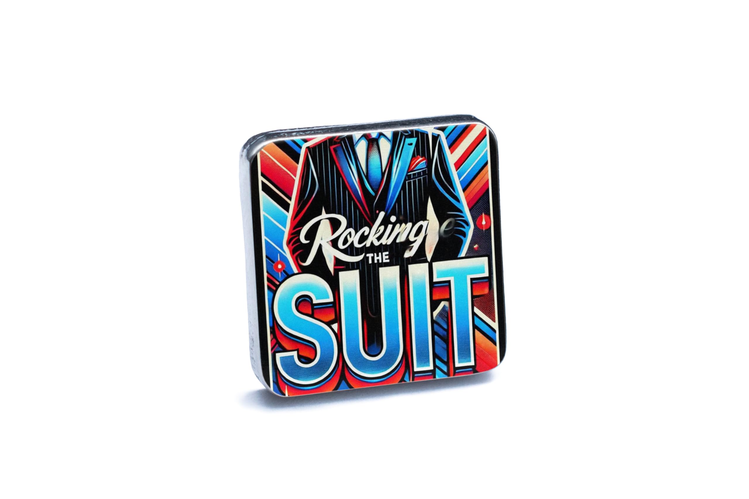 Add a touch of personality to your formal wear with these handcrafted UV printed suit-themed cufflinks. These novelty cufflinks are perfect for men who love to rock the suit while still prioritising fun and stylish accessories. The bold and colourful design of these cufflinks makes them a unique and eye-catching addition to any outfit. Made from handcrafted tin and pewter, these cufflinks feature a UV printed design that reads 'Rocking the Suit'. The full-colour printed cufflinks show a playful cartoon style design, making them a statement accessory ideal for dad or grandad. Gift a pair of these suit-themed cufflinks to the fashion-forward man in your life and watch them elevate their formal wear with a playful twist.