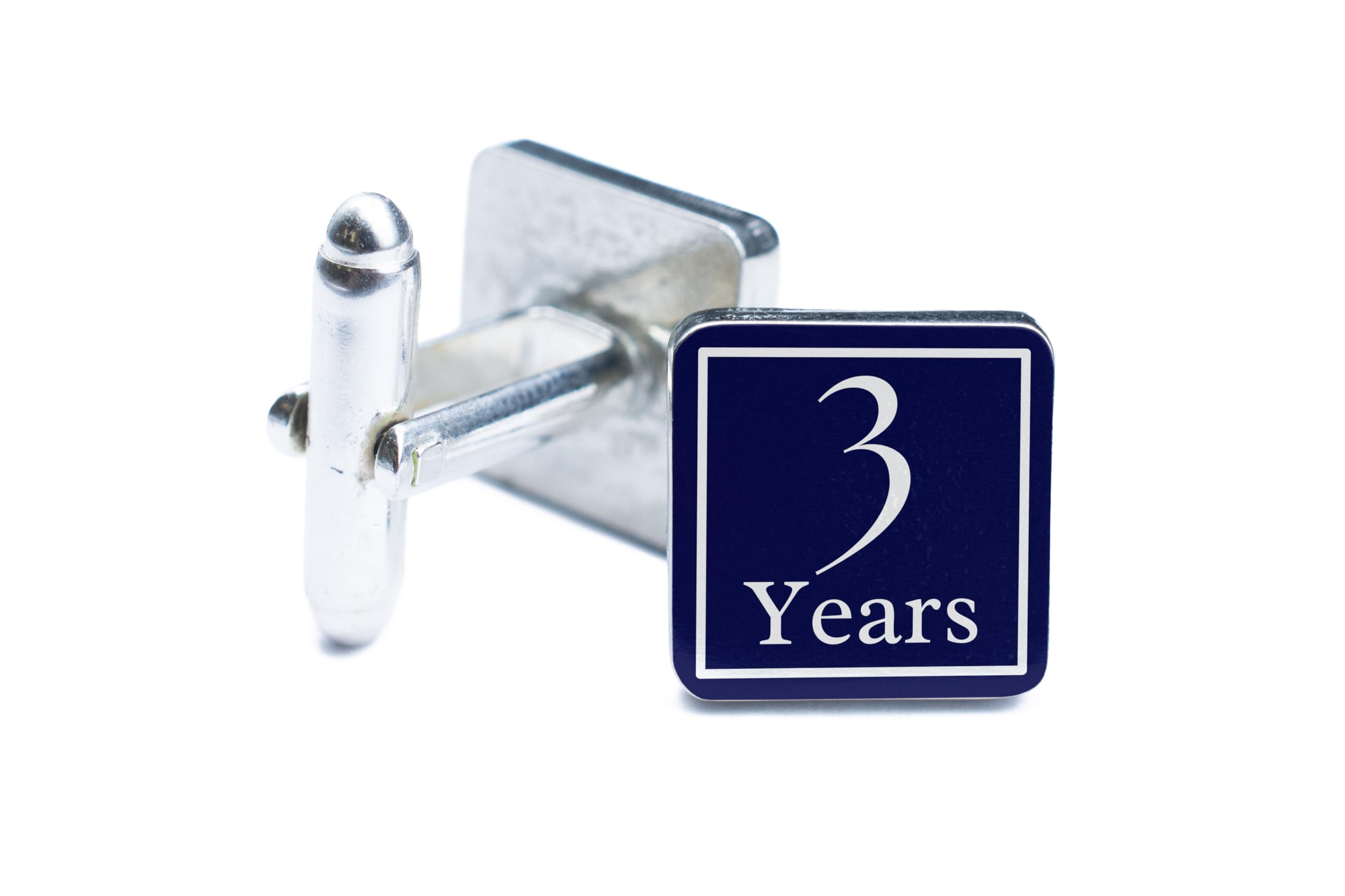 - Handcrafted UV Printed Tin Cufflinks with a '3 Years' Anniversary Design
