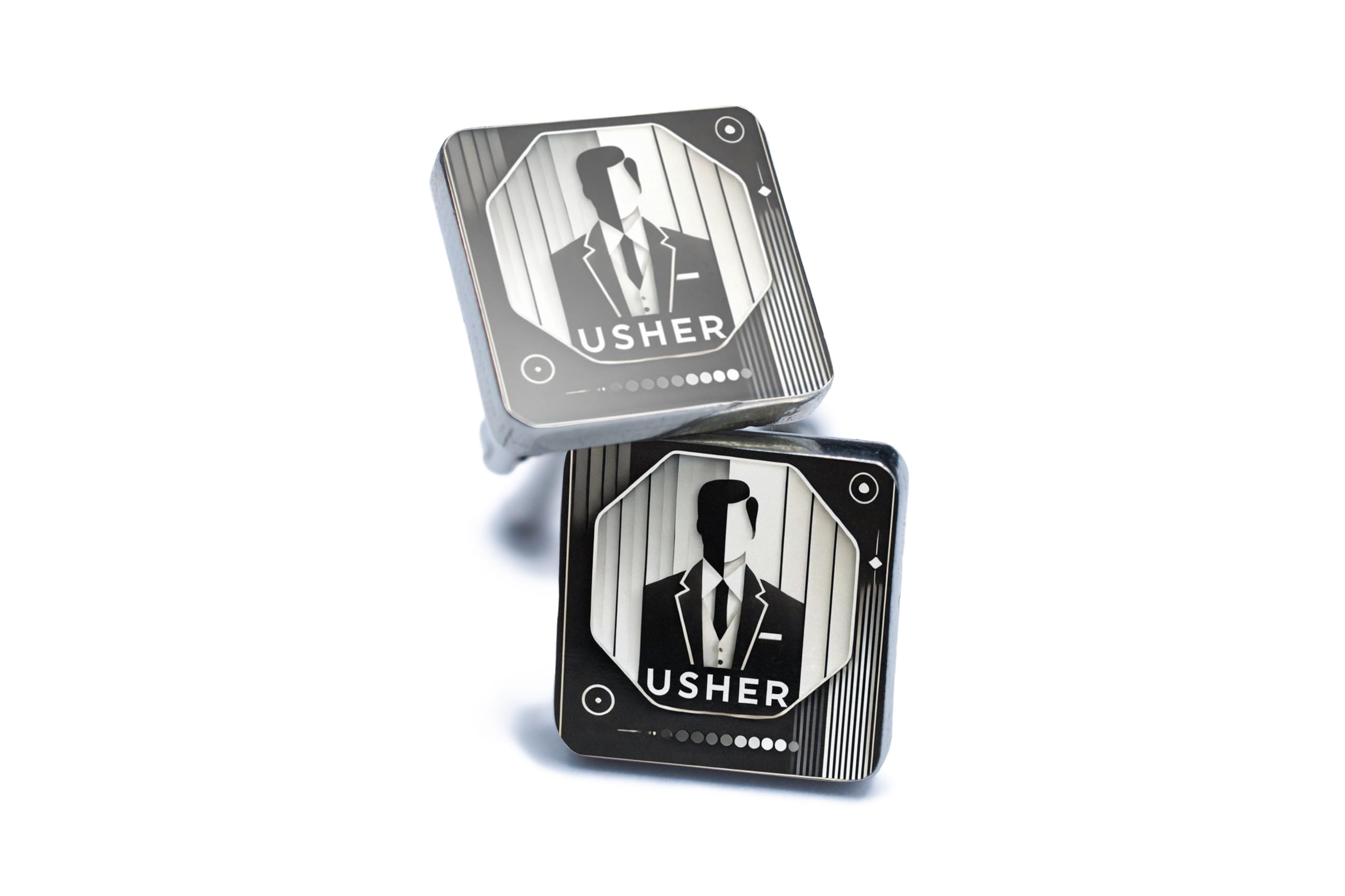 Handcrafted UV Printed Usher Wedding Cufflinks (cuff-ds24-suitusherrg)