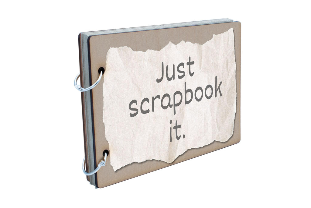 Introducing our Handcrafted Wooden Cover Memory Album with Ring Binder - the perfect way to keep your treasured memories safe and secure in a stylish and creative design. This unique scrapbook keepsake features a full colour front cover with a fun arts and crafts inspired design and a whitty caption that reads 'Just Scrapbook It'. The wooden cover adds a decorative and sentimental touch to your photos and mementos, making it a truly special keepsake. The ring binder allows for easy organisation and customization of your memories, while the 25 recycled pages provide plenty of space for your creativity to shine. Whether you're a crafting enthusiast or just looking for a beautiful way to preserve your memories, this handcrafted memory album is sure to inspire and delight.