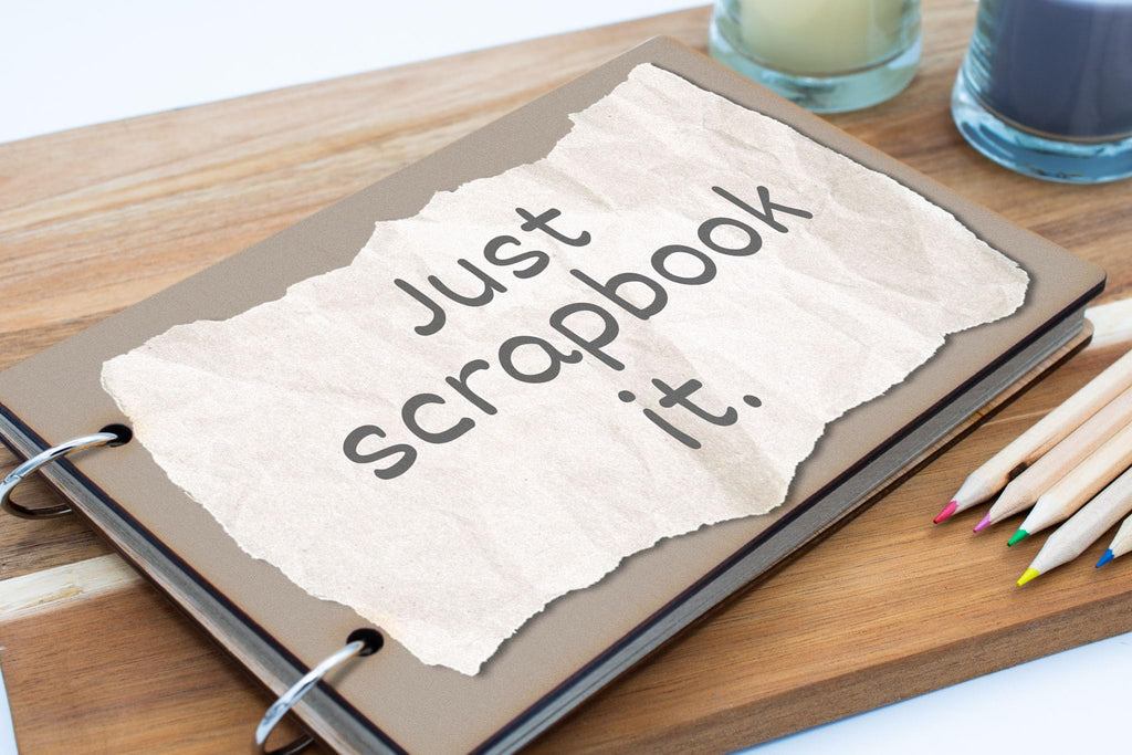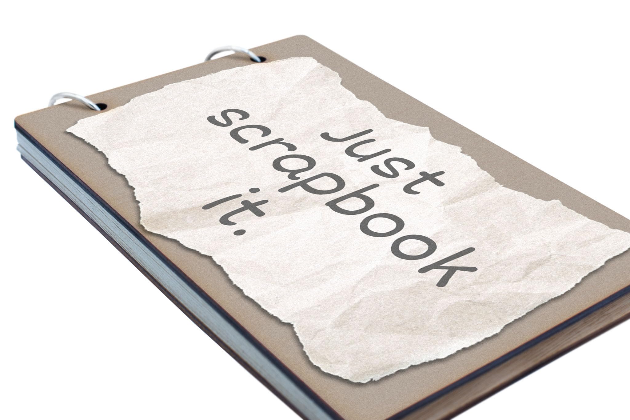 • Motivational and inspirational sentiment - reads 'Just Scrapbook It' on the front cover