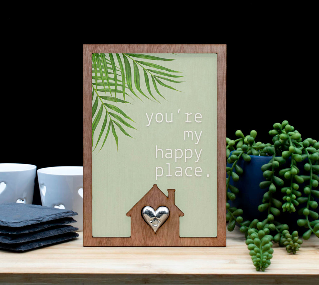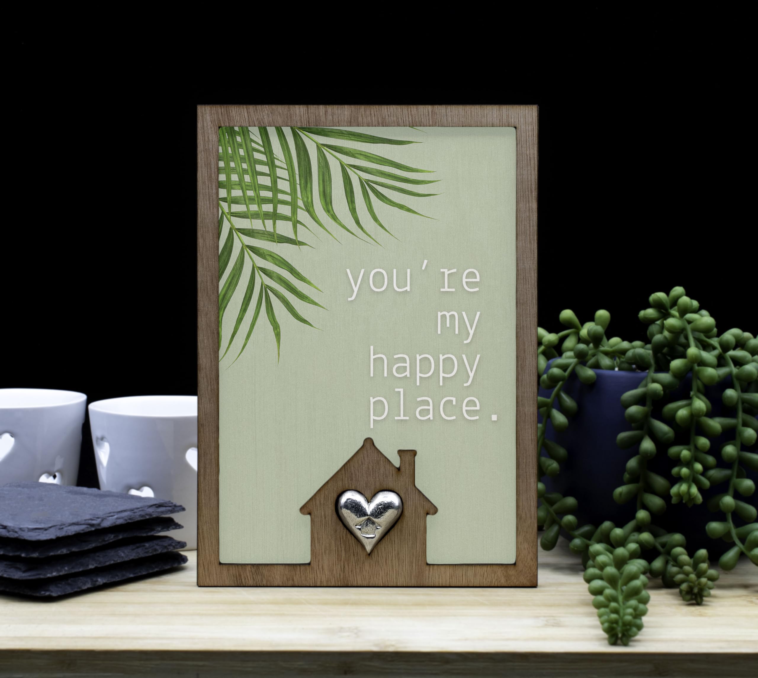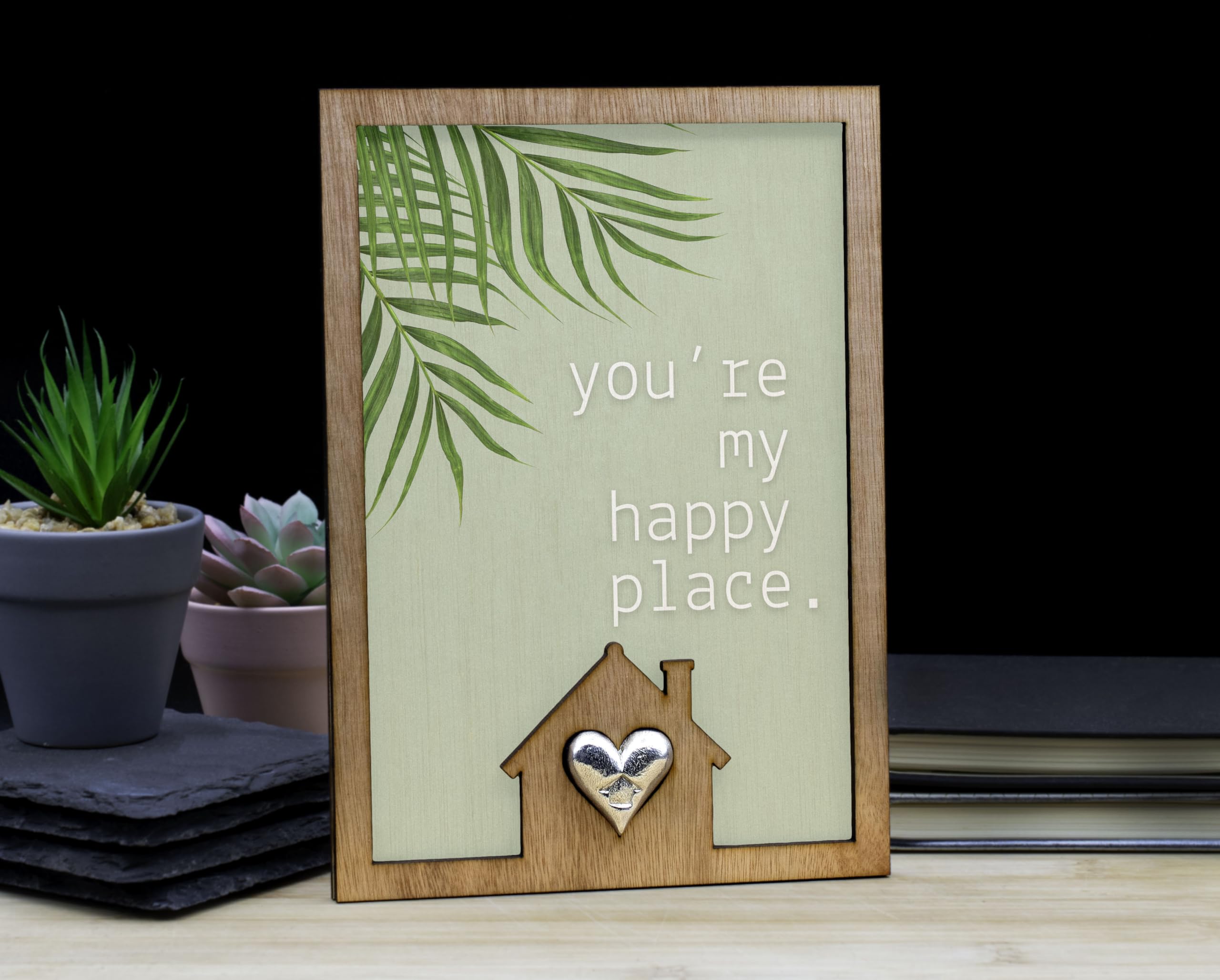 - Add a unique and meaningful touch to your home decoration with this 'You're My Happy Place' sign