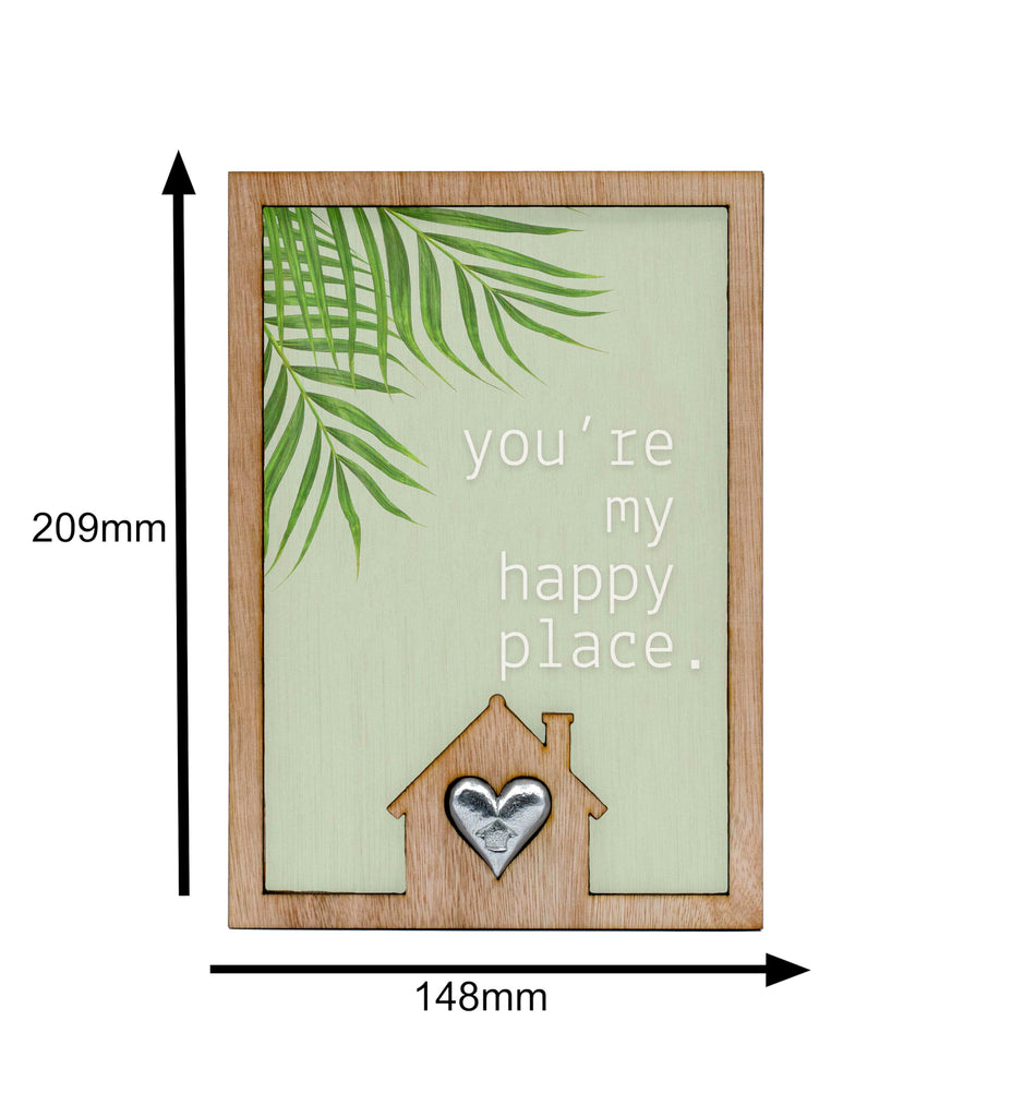 Add a touch of warmth and inspiration to your home decor with our Handcrafted Wooden Frame Inspirational Sign with Heart Ornament. This beautiful rustic piece features a heartfelt sentiment that reads 'You're My Happy Place' surrounded by a charming botanical design. The minimalistic style and elegant design make it a perfect addition to any room, providing a cozy and welcoming atmosphere. Whether you are looking for a housewarming gift or simply want to adorn your own space with a positive quote and sentimental message, this decorative plaque is sure to brighten up your home.