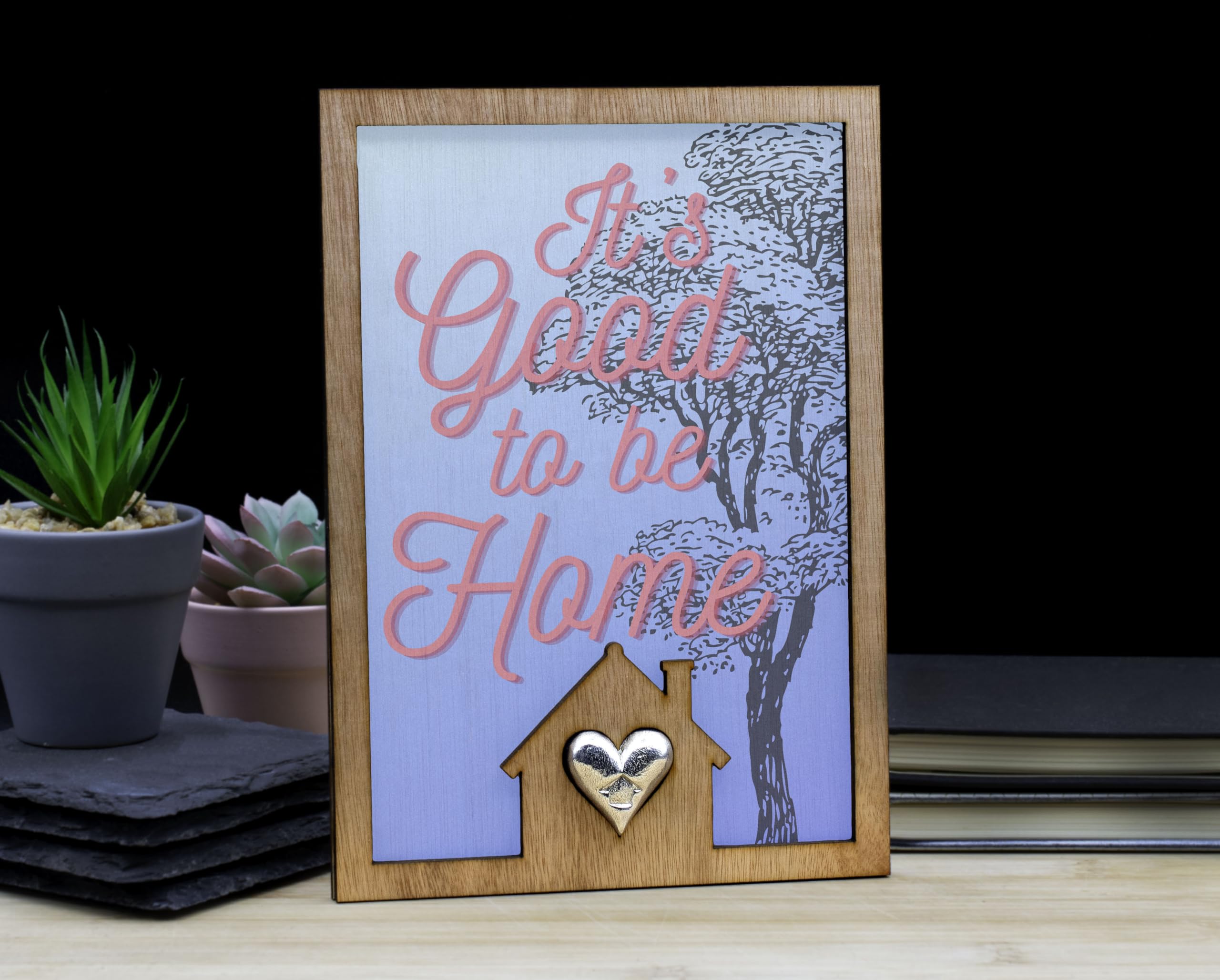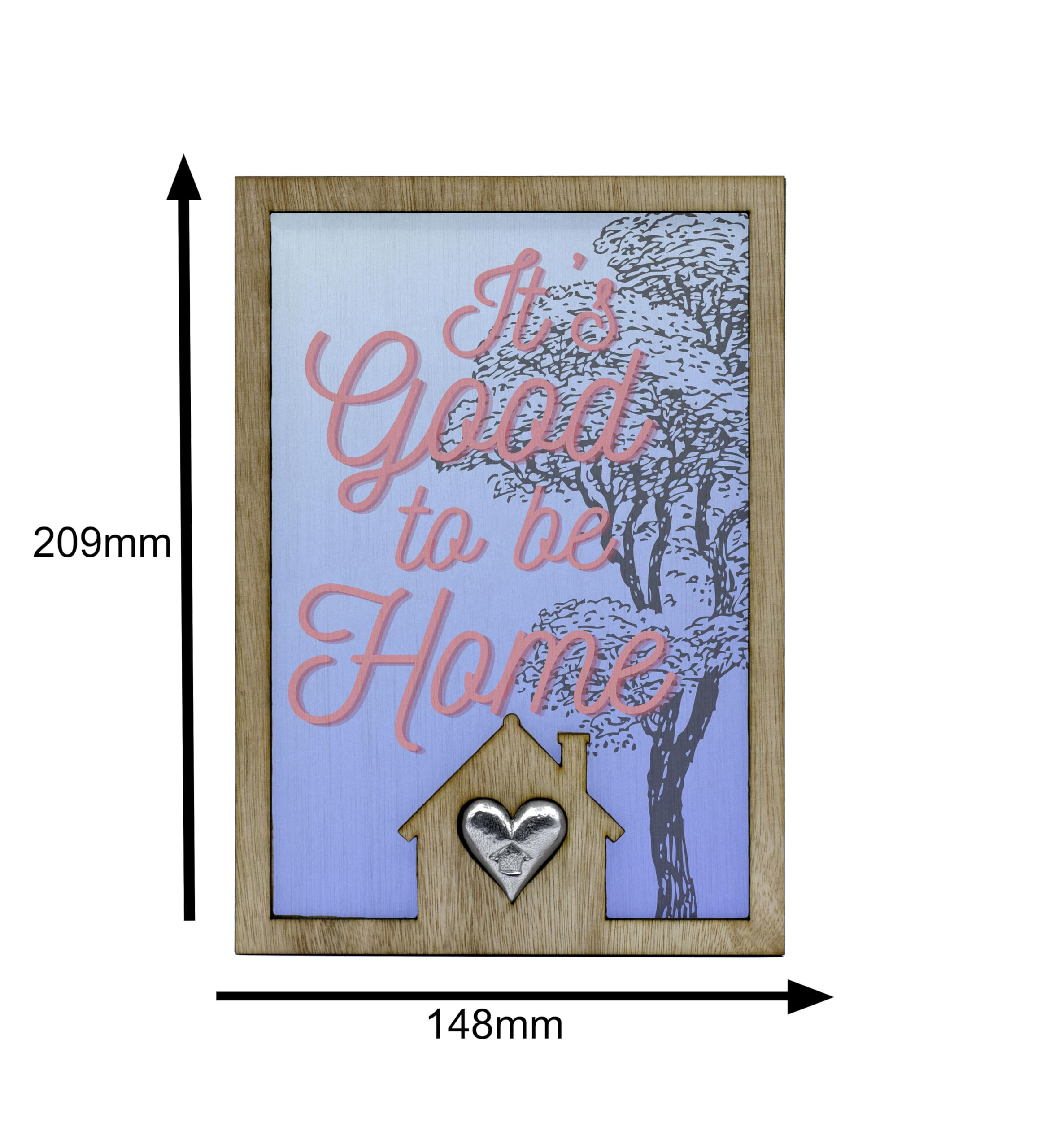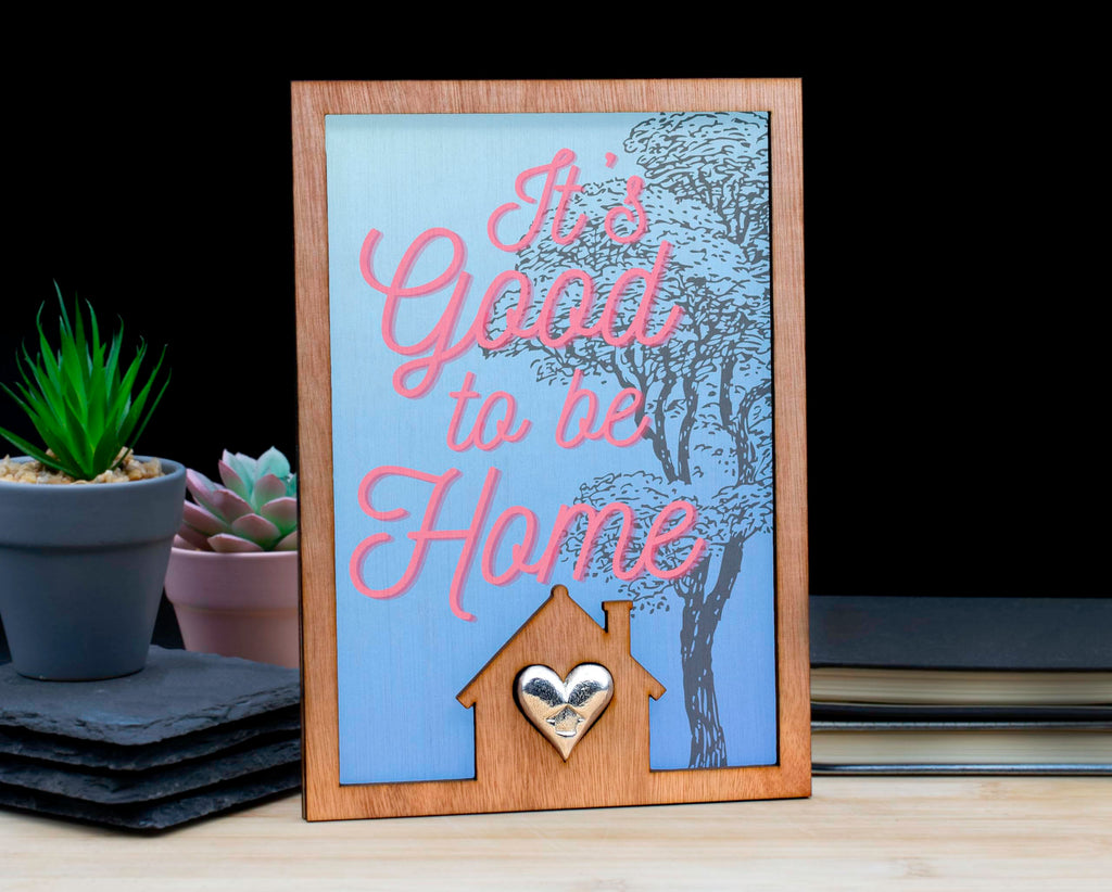 - Ideal housewarming gift with a sentimental quote that reads 'It's good to be home'