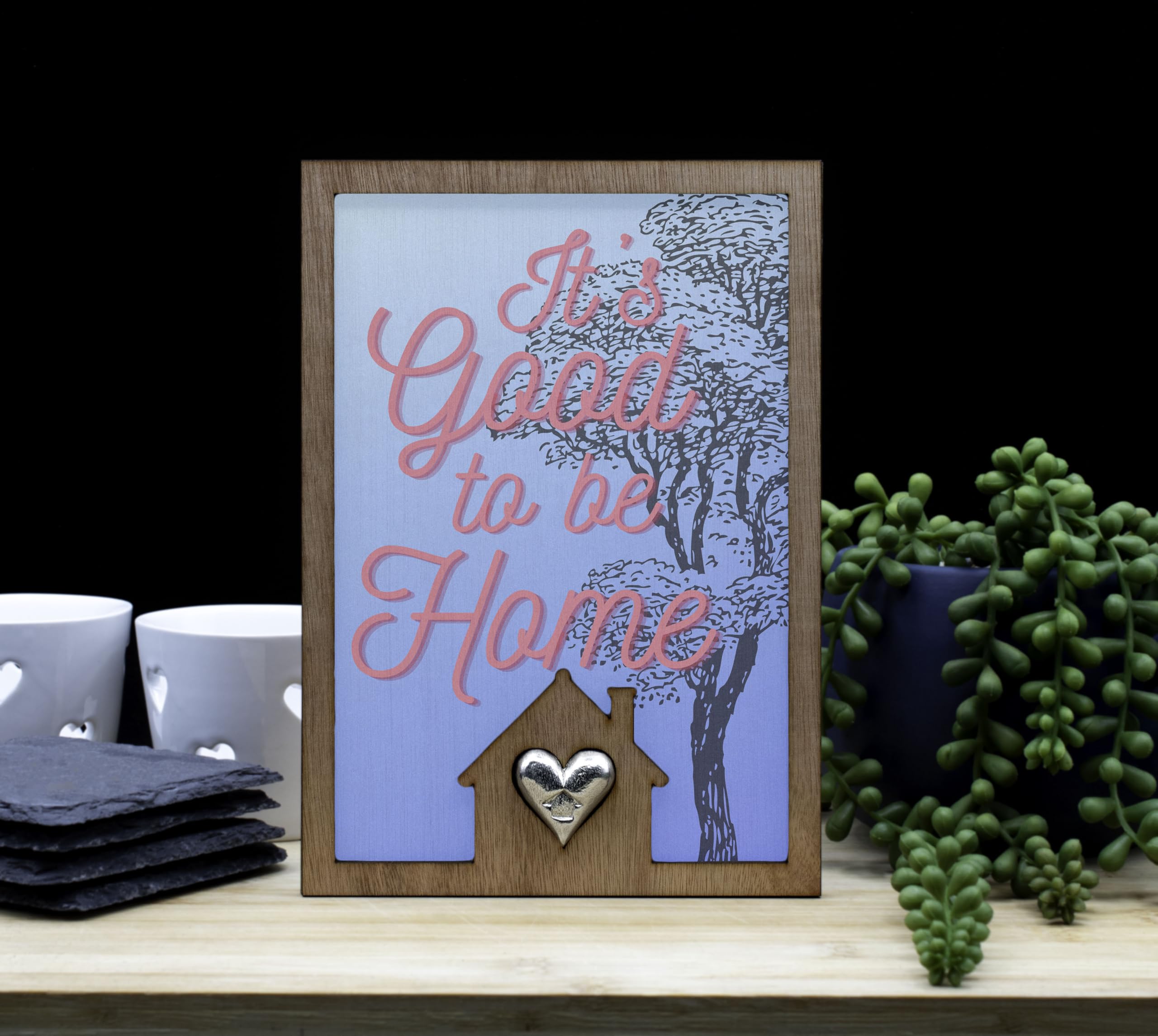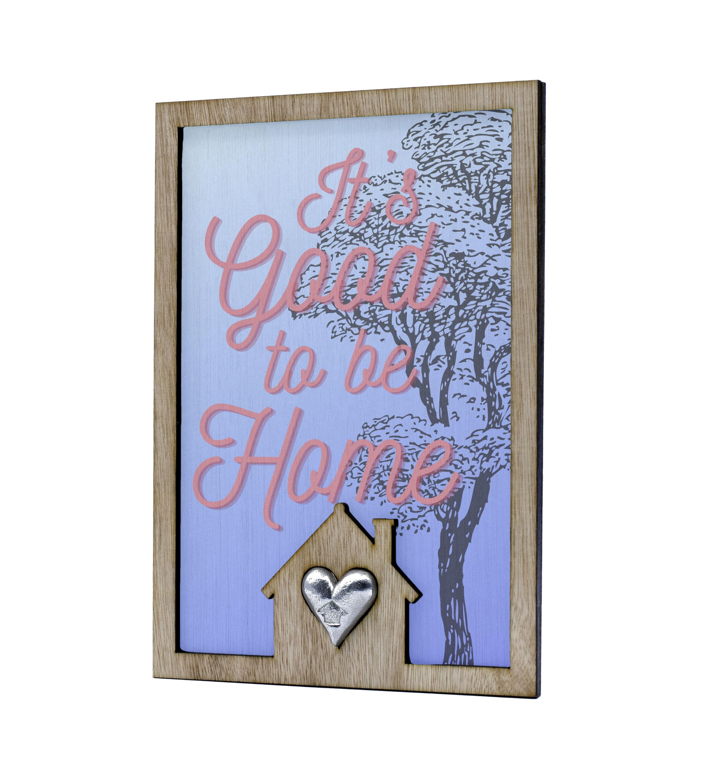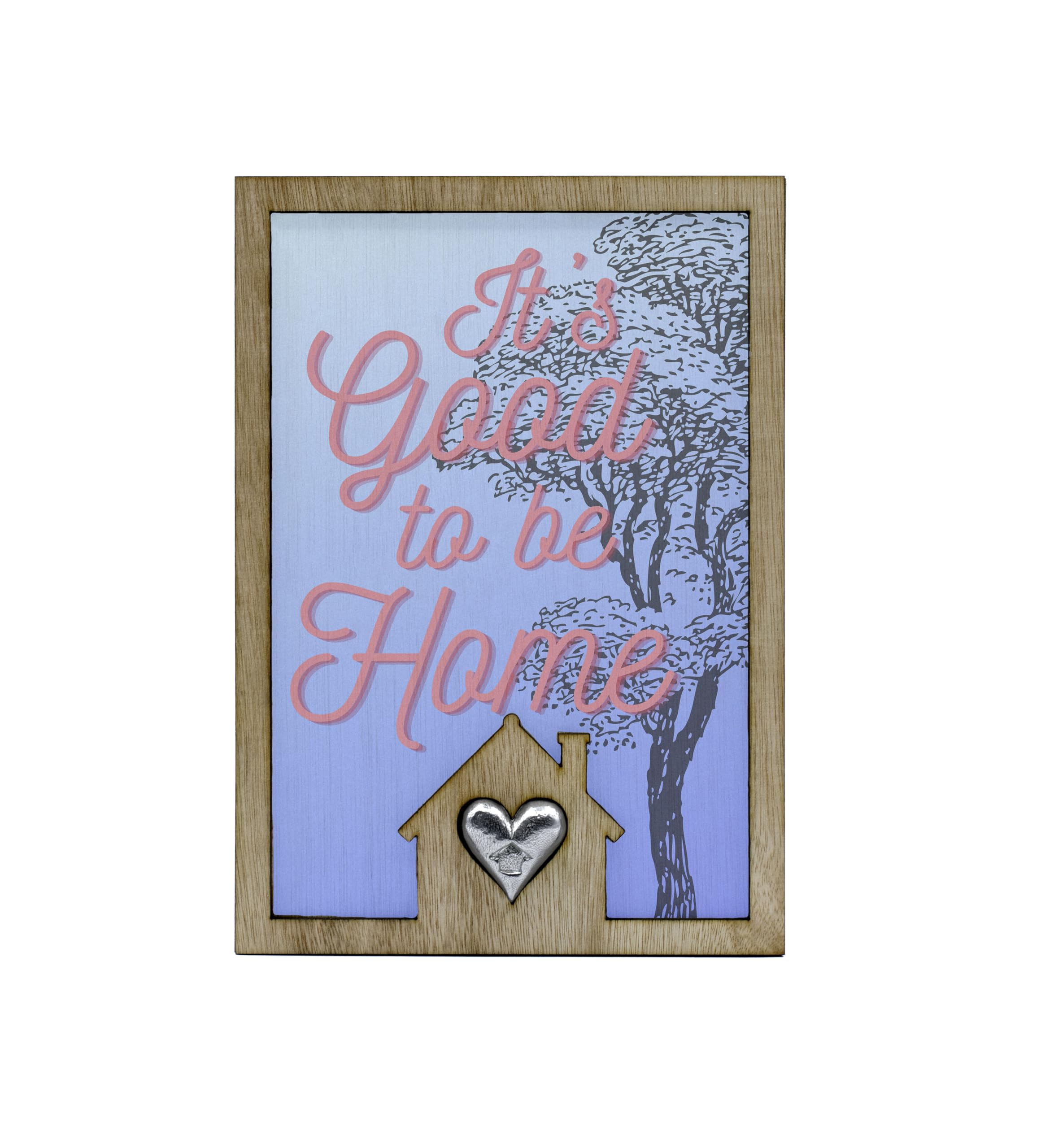 - Ideal housewarming gift with a sentimental quote that reads 'It's good to be home'