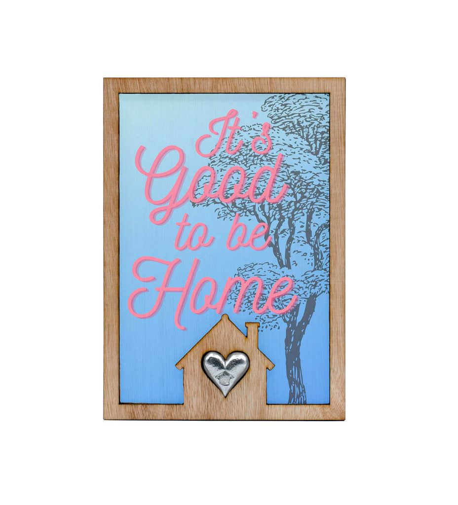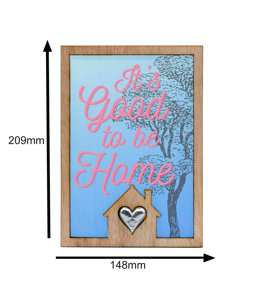 Add a touch of warmth and charm to your living space with our Handcrafted Wooden Welcome Sign with Heart Ornament. This beautiful rustic home d?cor piece is the perfect housewarming gift with a sentimental quote that reads 'It's good to be home'. The wooden frame and heart ornament are handcrafted from laser-cut plywood, giving it a unique and artisanal look. The full-colour ornament features a lovely caligraphic design on a blue background, creating a nature-inspired aesthetic that complements any d?cor style. Whether you're looking to decorate your own home or give a thoughtful gift to a friend or family member, this decorative plaque is sure to make a statement. Place it in your living room to add a cozy touch to your space and remind yourself of the love and warmth that comes with being at home. This inspirational sign with a heartfelt message will make a lovely addition to any home.