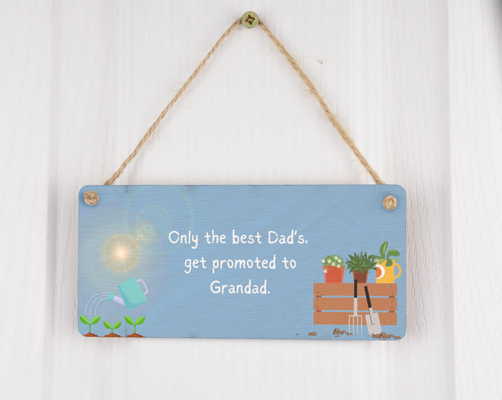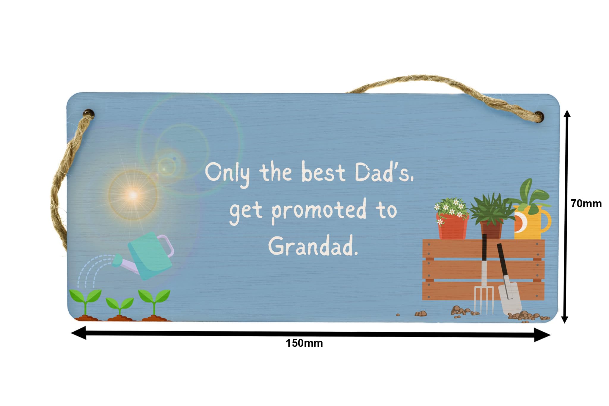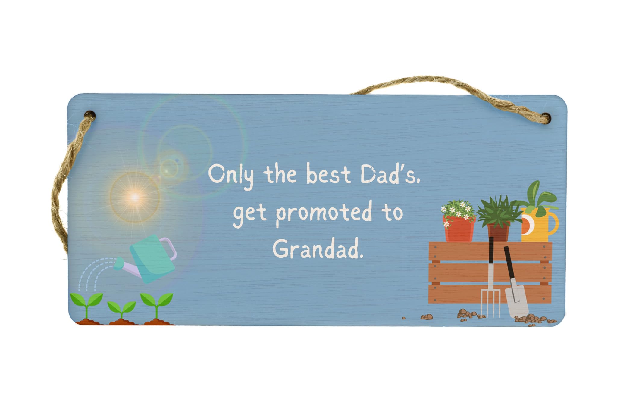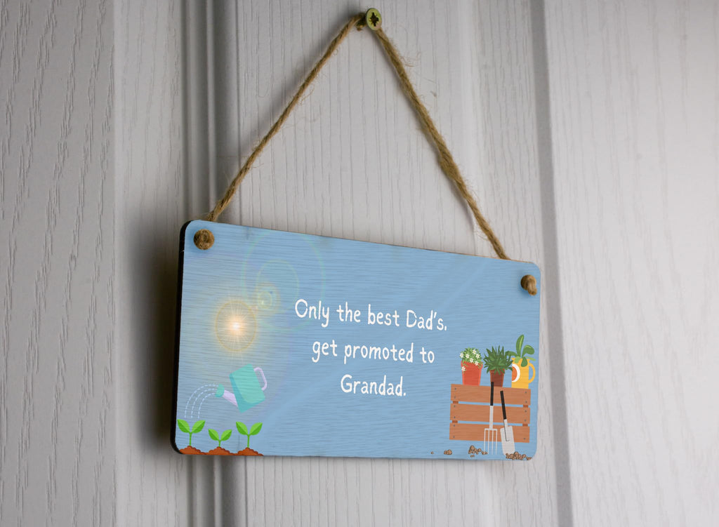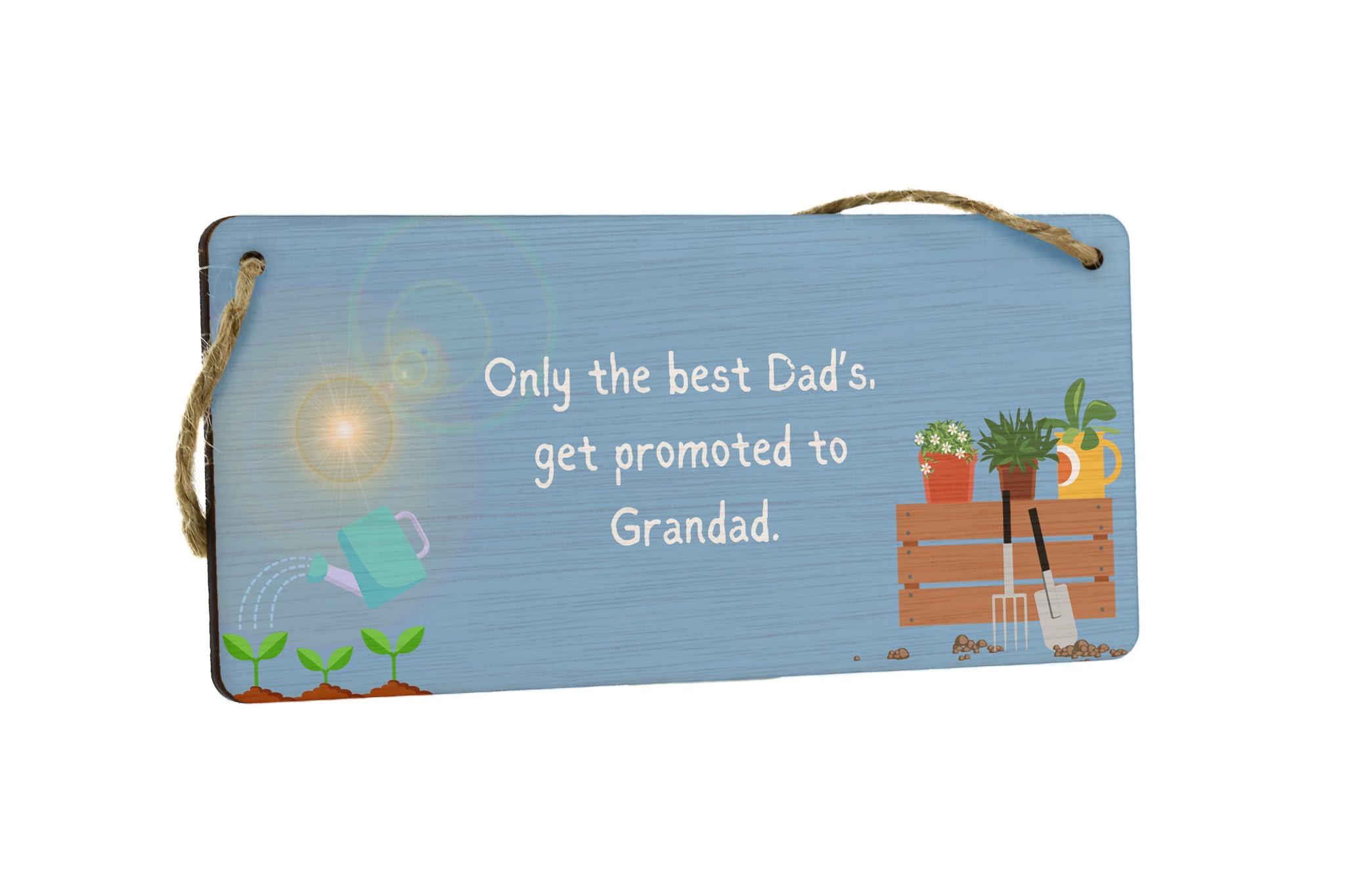 This beautiful Hanging Plywood Sign is the perfect gift for any father or grandfather. The sign features the heartwarming message 'Only the Best Dads Get Promoted to Grandad' in bold, eye-catching letters. Made from quality plywood, this sign is durable and long-lasting, ensuring it can be treasured for years to come. The full-colour design adds a vibrant touch, making it a unique and memorable gift. Whether it's for Father's Day, a birthday, or to celebrate the arrival of a new baby, this sign is sure to bring joy and pride to any dad or grandad. Hang it in the home or office to show off your well-deserved title of 'Grandad' and let everyone know how loved and appreciated you are.