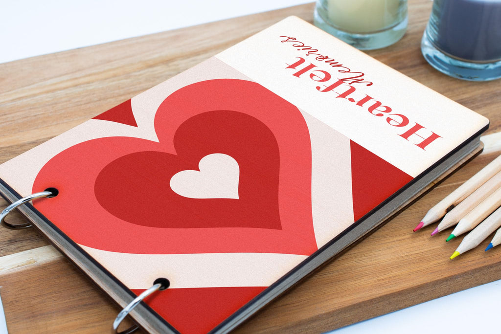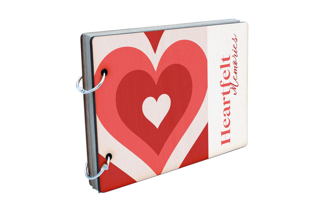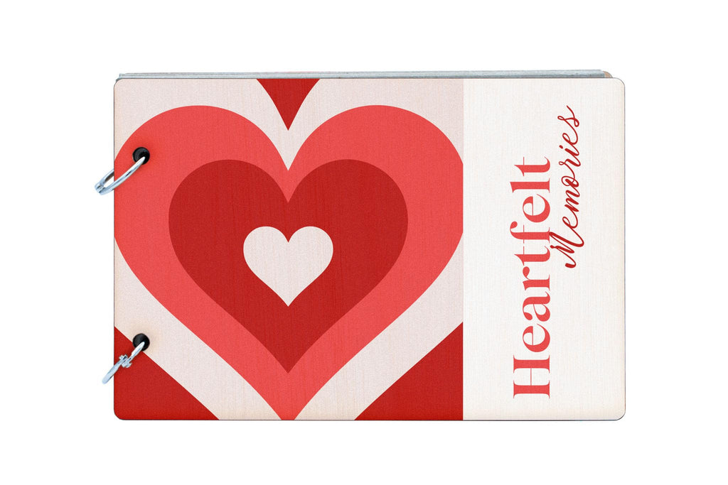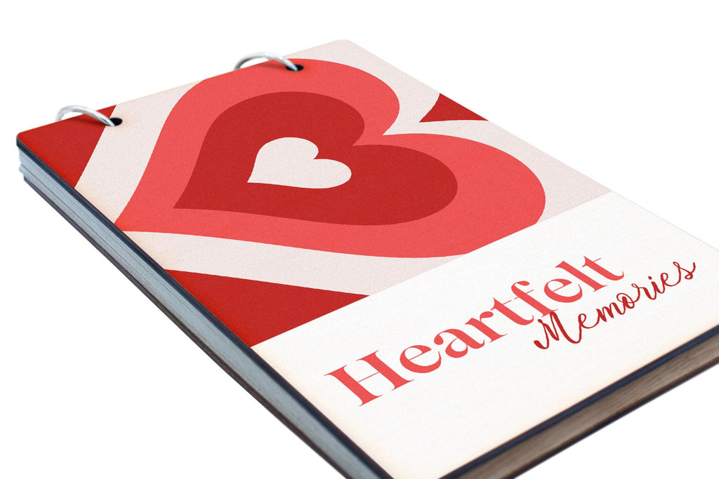 Welcome to 'Heartfelt Memories: A Loving Collection', the ultimate Love Album for keeping all your cherished memories in one sentimental keepsake. This Romantic Collection is perfect for capturing affectionate memories, emotional records, and heartwarming moments with your loved one. It is a beautiful way to store your most intimate moments and create a record of your passionate love story. 'Heartfelt Memories' is not just a book, but a true reflection of your adoration and devotion, filled with tender memories and sweet reminders of your love. The wooden cover and 25 recycled pages make this album an eco-friendly and sustainable choice. Each page reads 'heartfelt memories' as a gentle reminder of the depth of your connection. The full-colour front cover showcases a lovely love heart pattern in warm shades of red, symbolising the deep and abiding love you share with your partner.