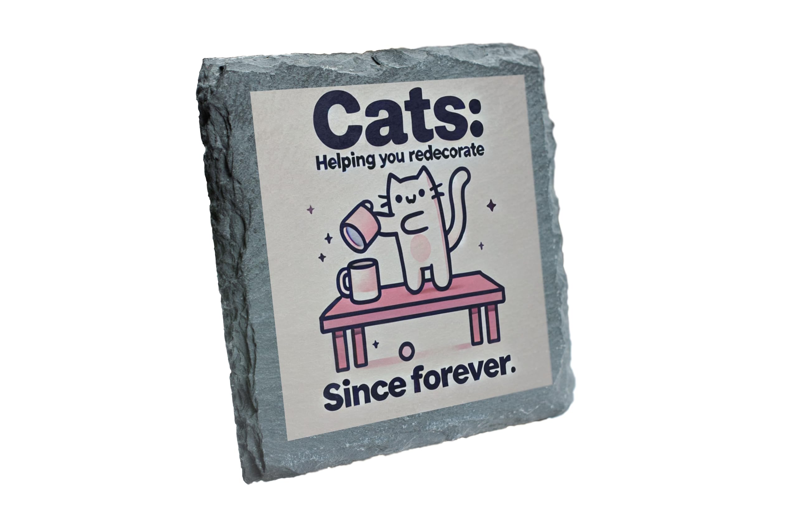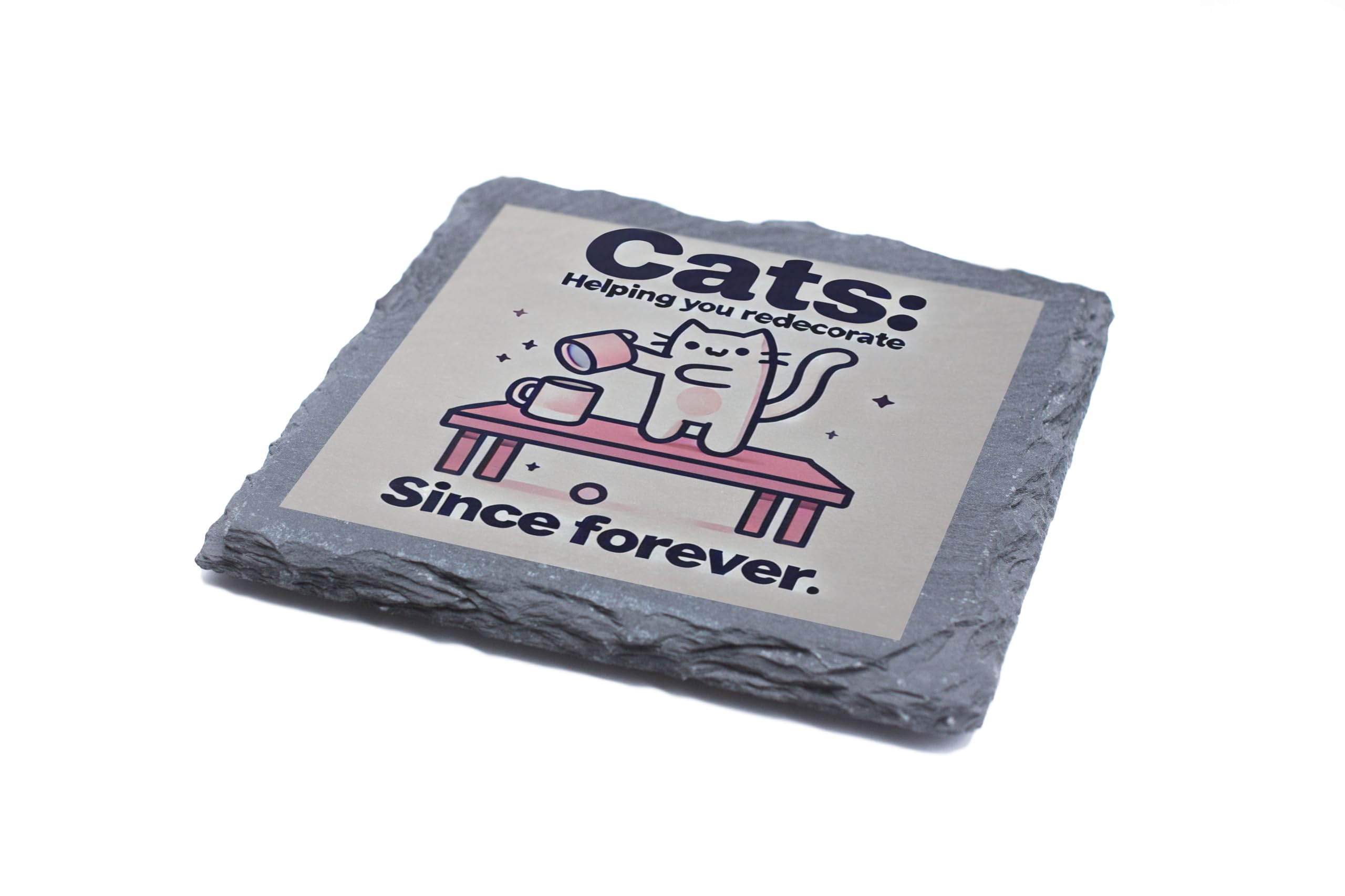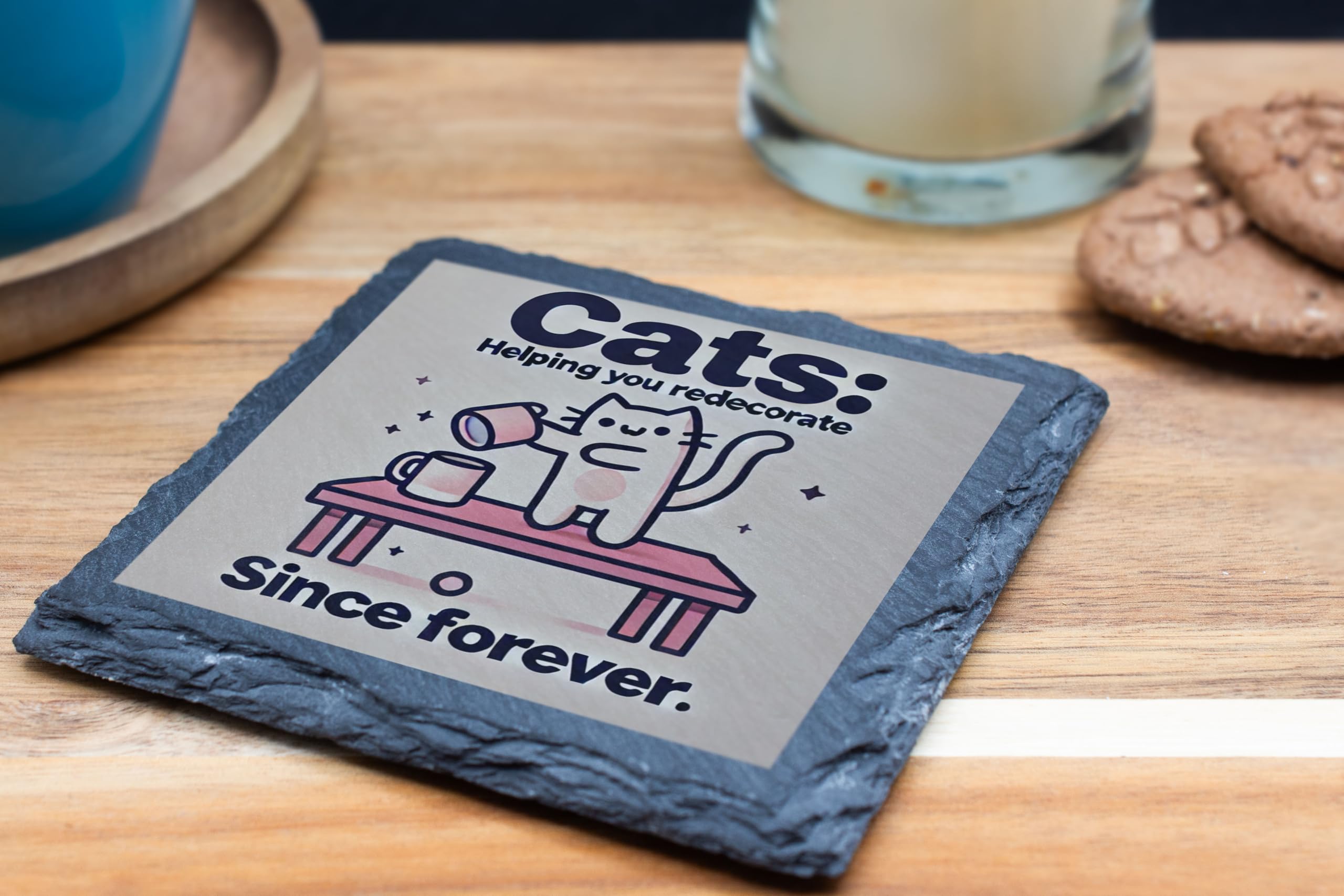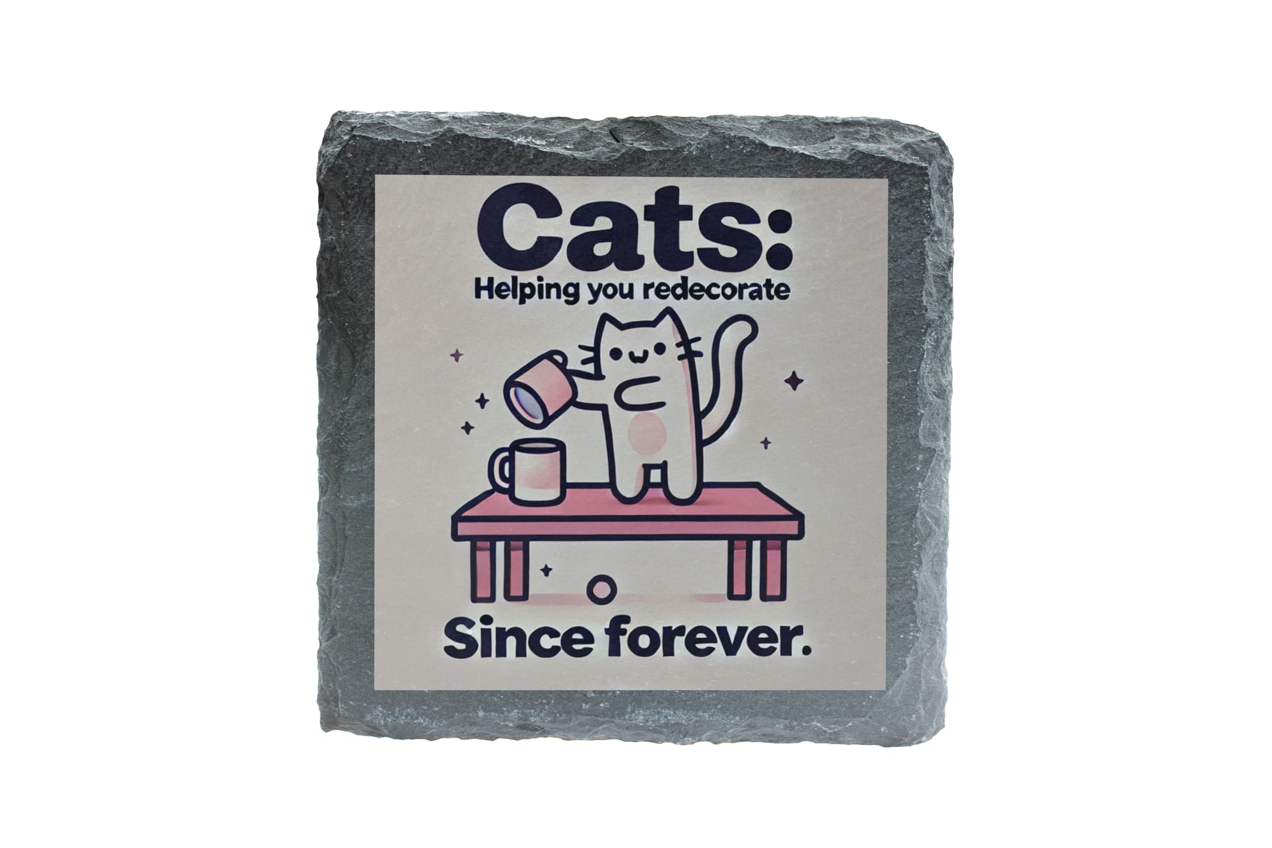 Celebrate the hilarious antics of cats with the "Helping You Redecorate" Slate Coaster. This adorable piece of homeware captures the playful essence of cats "redecorating" your home with their curious (and mischievous) nature. Crafted from durable natural slate, this coaster is as practical as it is stylish, ensuring your tables stay safe from spills while bringing a touch of humor to your d?cor. Whether you're a proud cat owner or searching for the perfect gift for a feline fan, this coaster is a delightful addition to any collection.