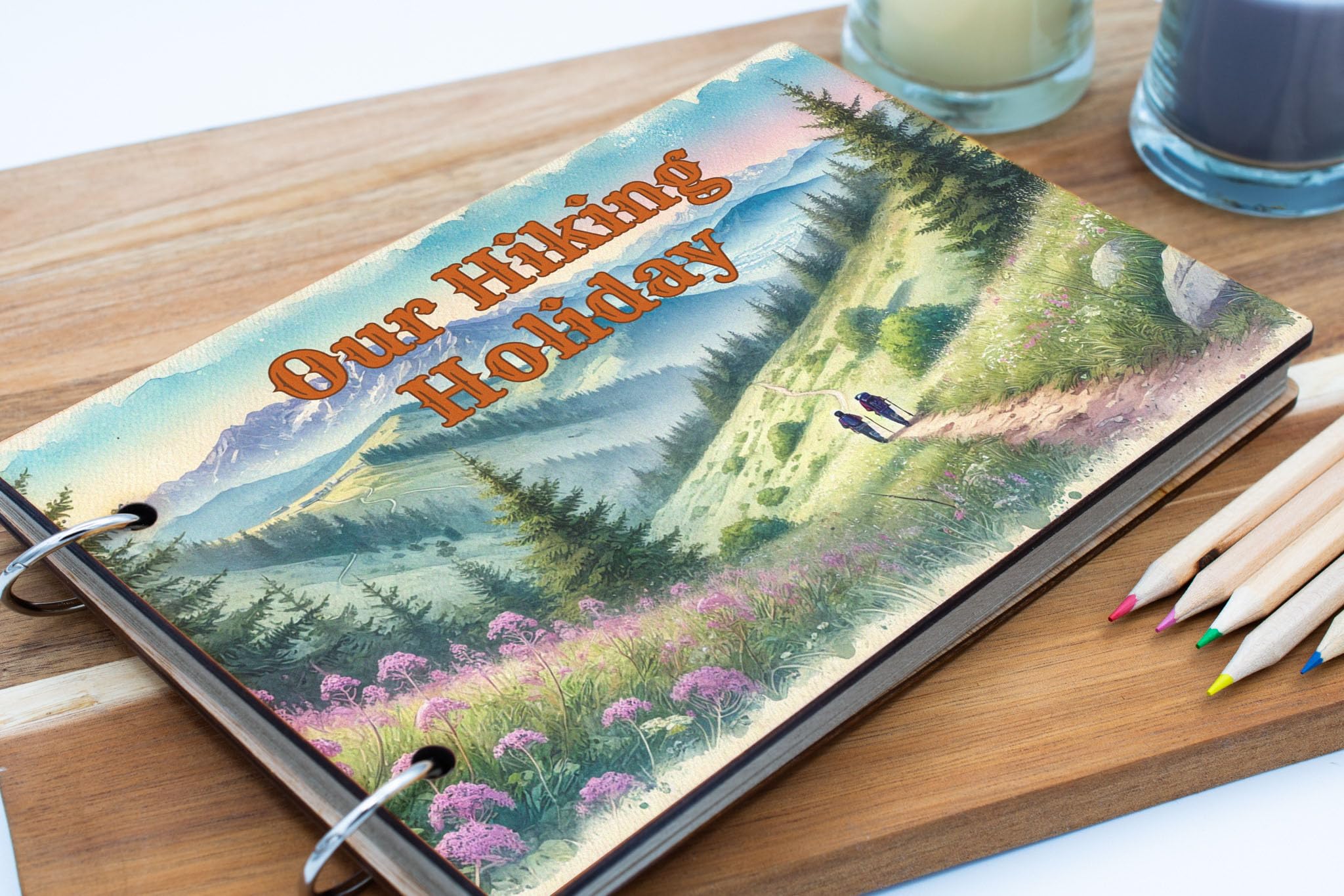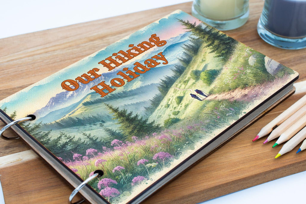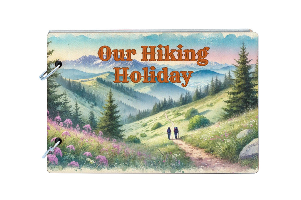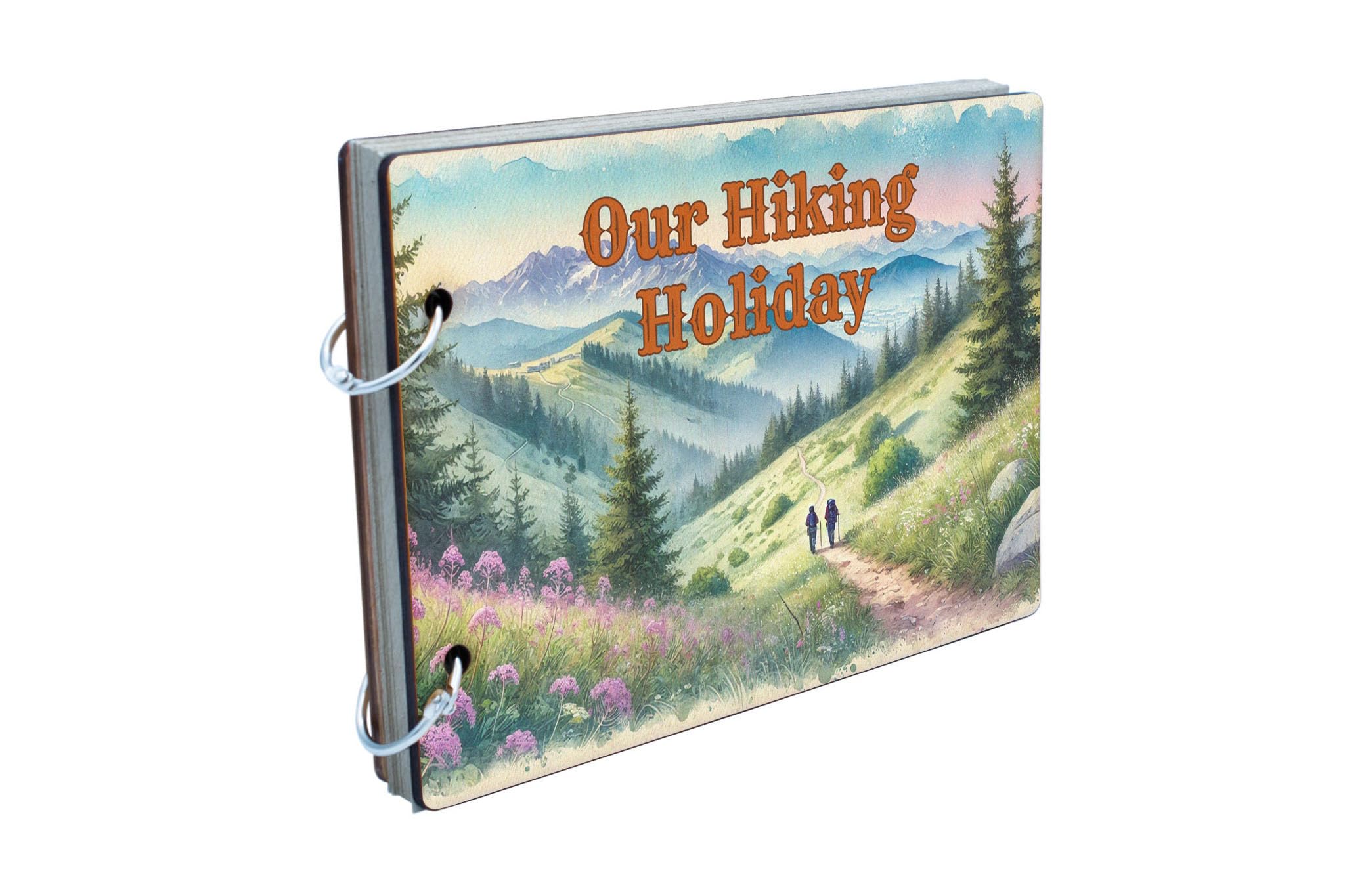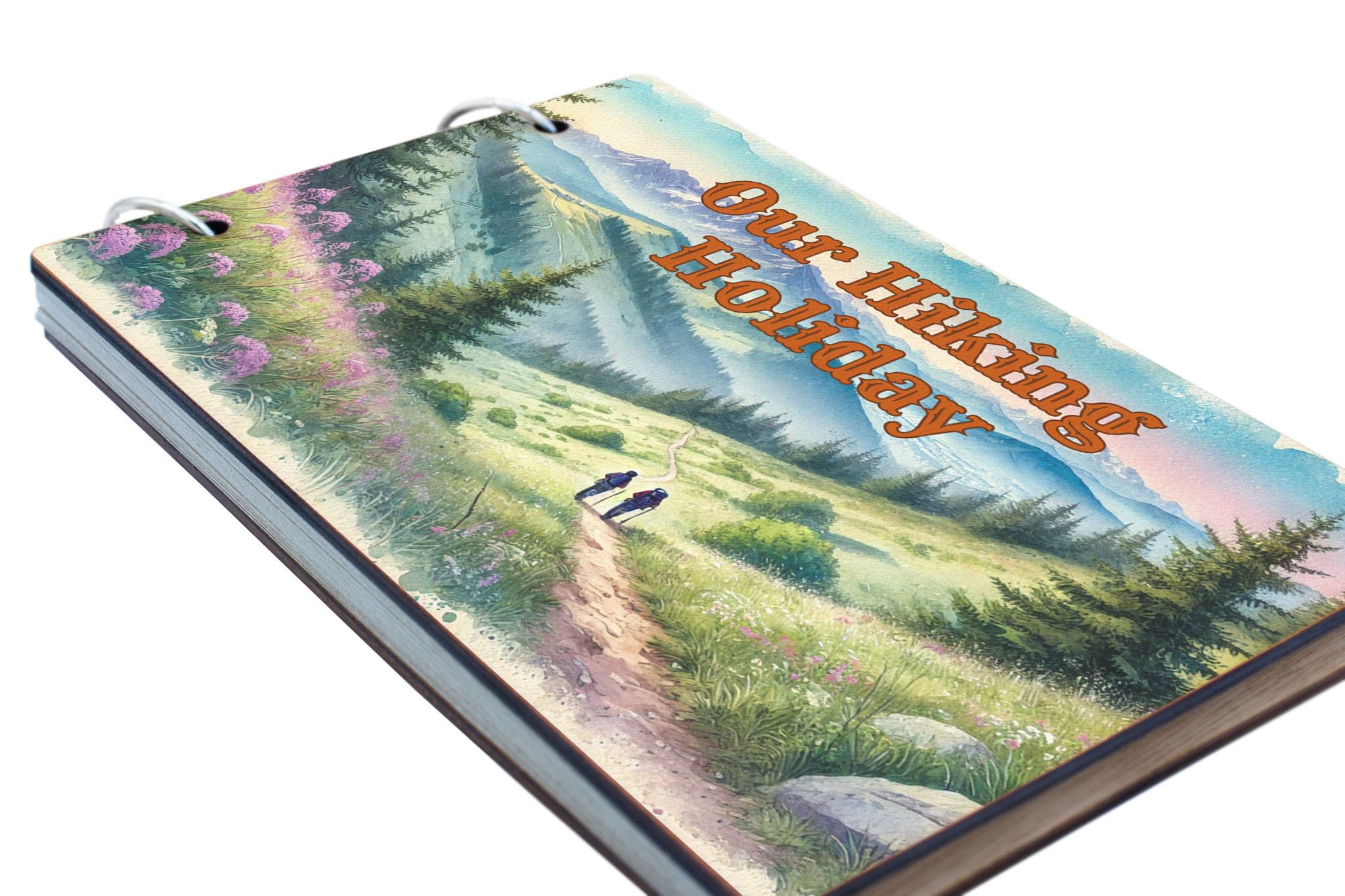 - Includes 25 recycled pages that read 'Our Hiking Holiday' on the artistic wooden cover