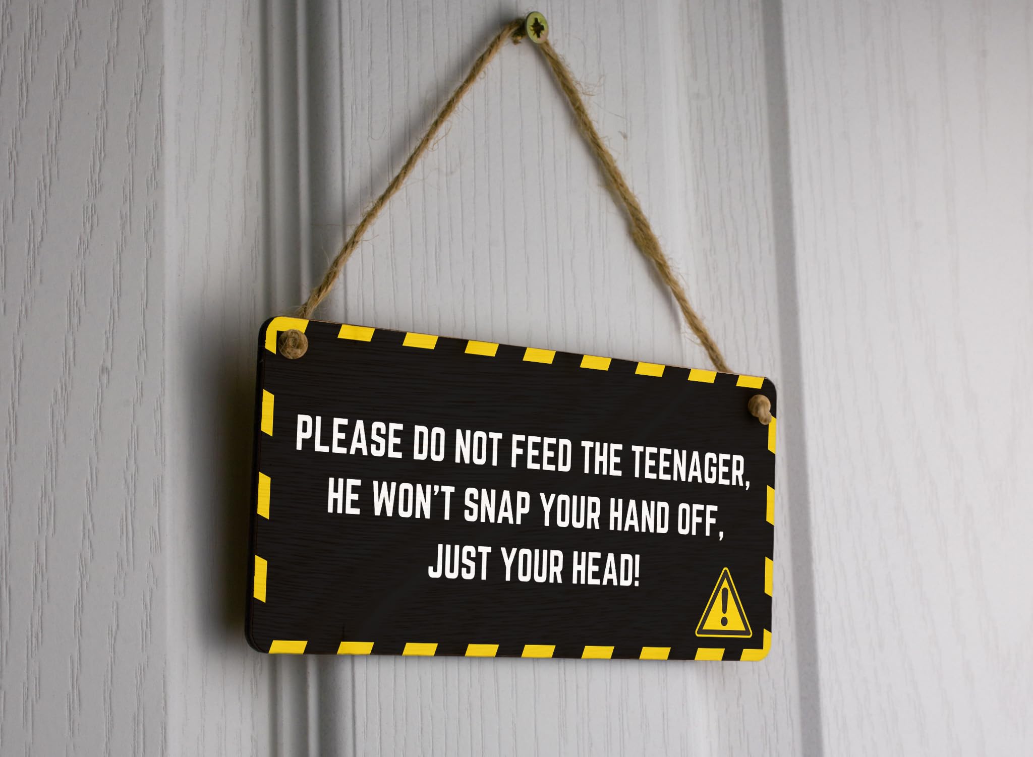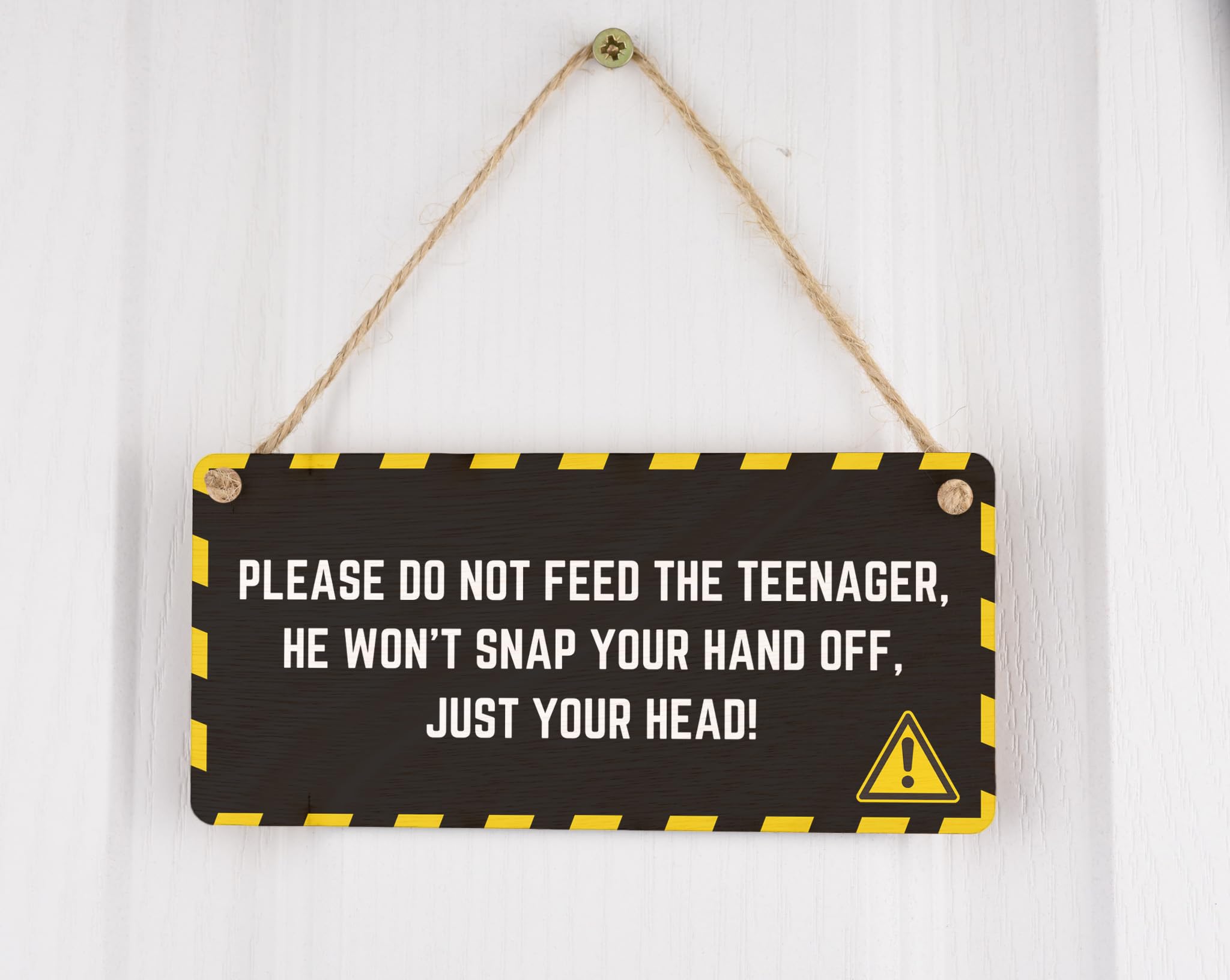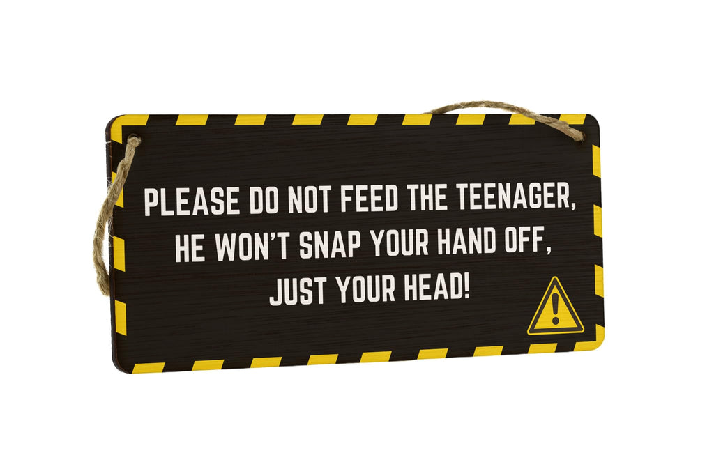 Hilarious Full Colour Plywood Hanging Sign for Home D?cor: 'Please Don't Feed the Teenager - He Won't Snap Your Hand off, Just Your Head!'