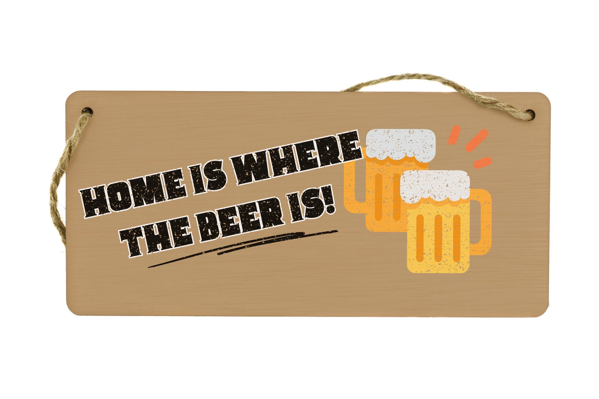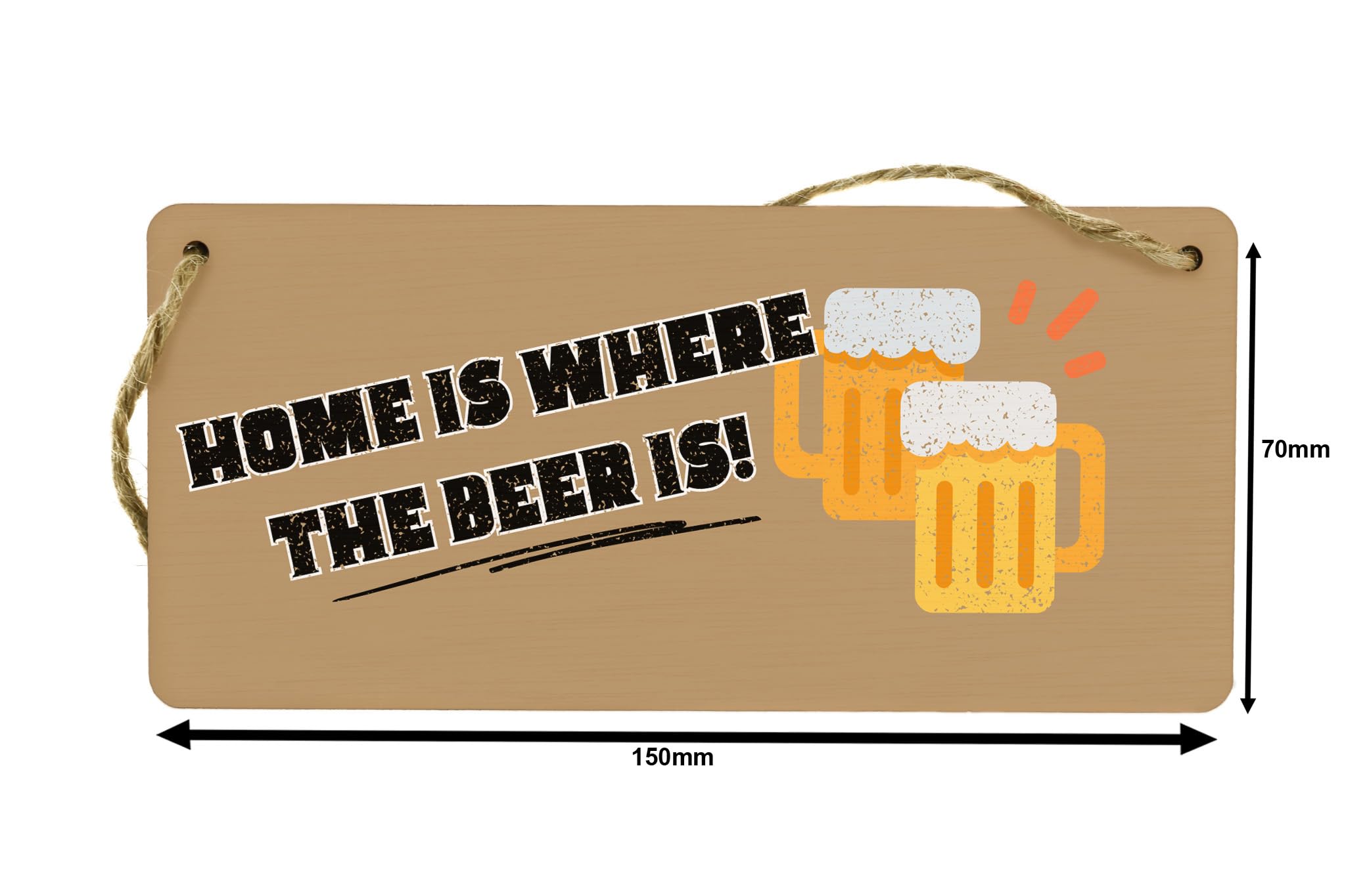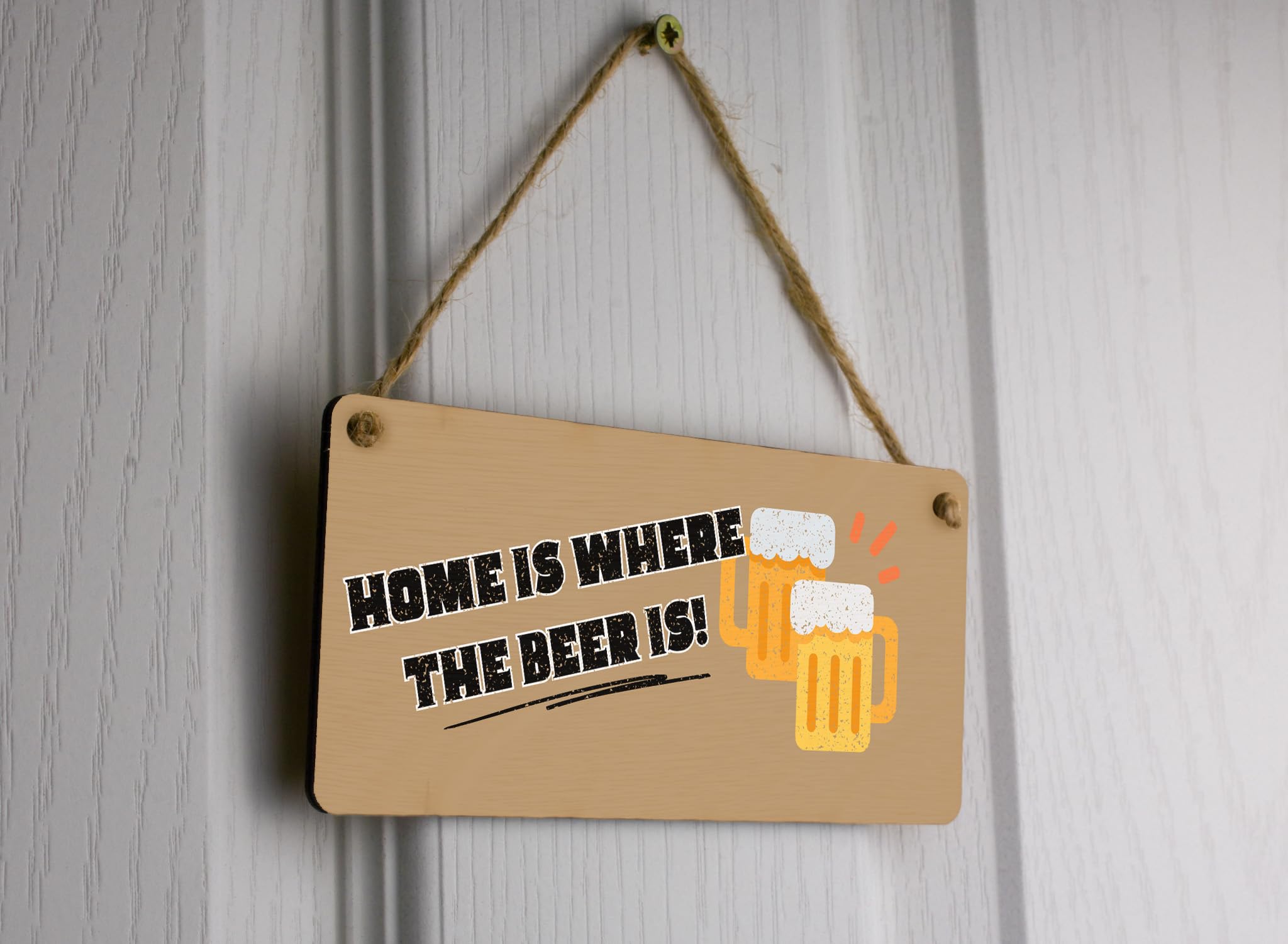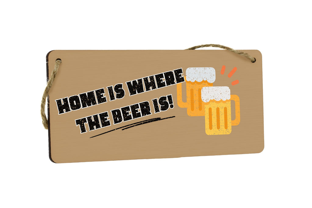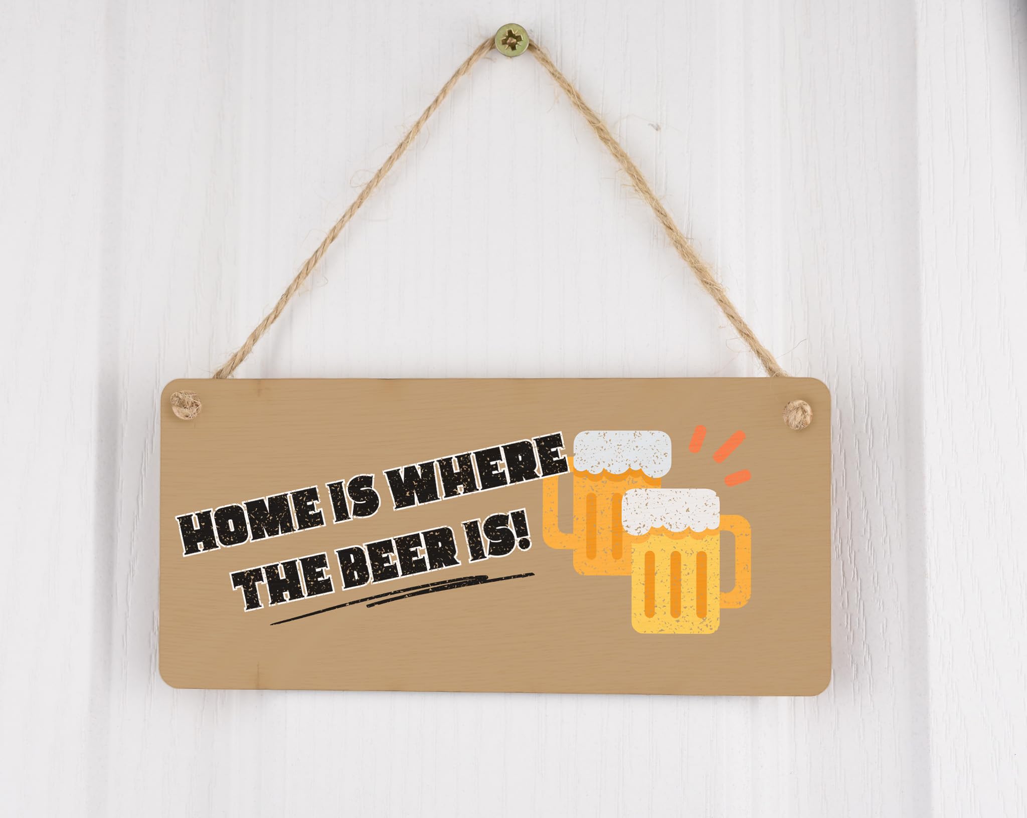 Add a touch of humor and personality to your home with this hilarious Plywood Hanging Sign - Home is Where the Beer Is! Designed especially for beer enthusiasts, this sign is the ultimate beer lover's gift for him. Made from high-quality plywood, the sign is sturdy and durable. Featuring bold and vibrant colors, the full-color design will instantly grab attention and brighten up any room. Hang it in the man cave, kitchen, or bar area to showcase your love for beer. This funny beer sign reads 'Home is Where the Beer Is' and will surely bring a smile to your face. Perfect as a gift for birthdays, anniversaries, or any special occasion, this sign is a great addition to any beer lover's collection. Get one for yourself or surprise a loved one with this unique and fun home wall sign. Cheers to good times and great beer!