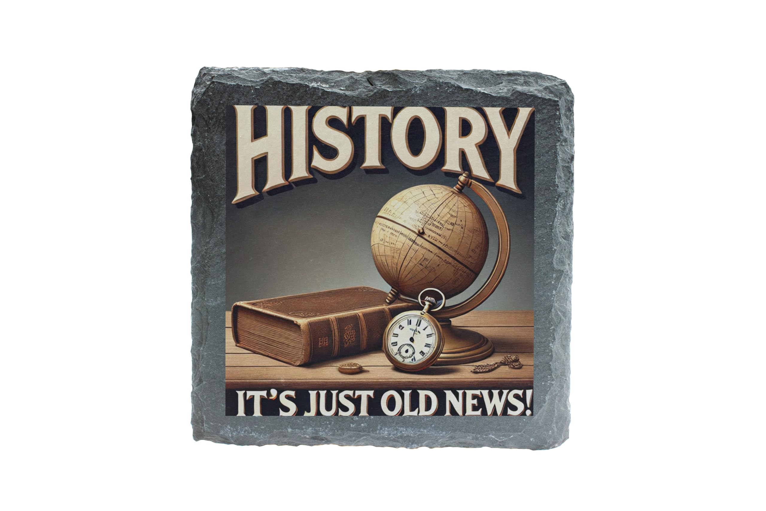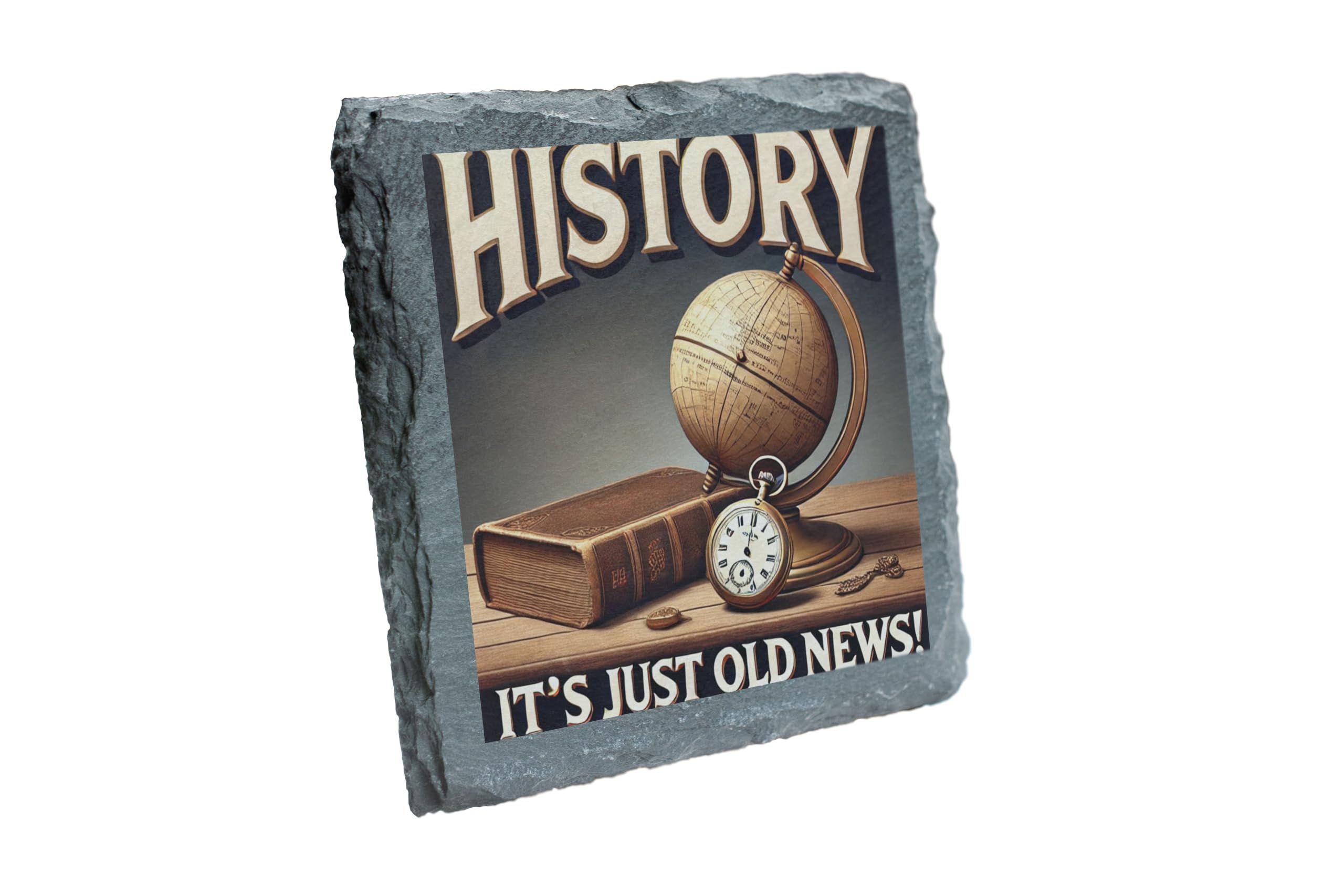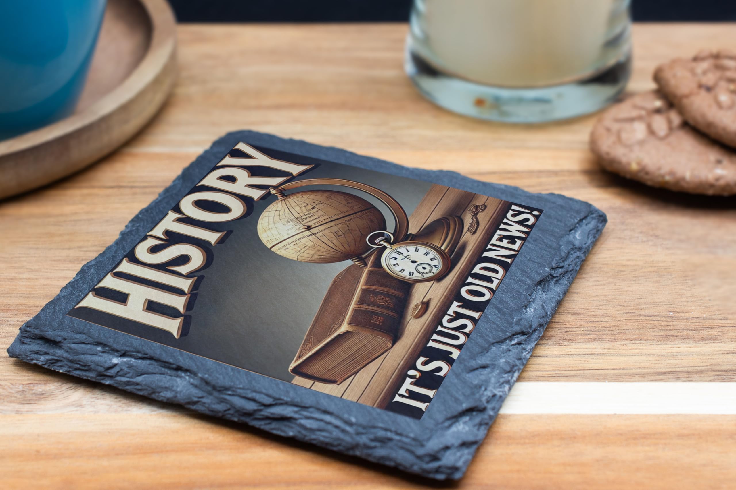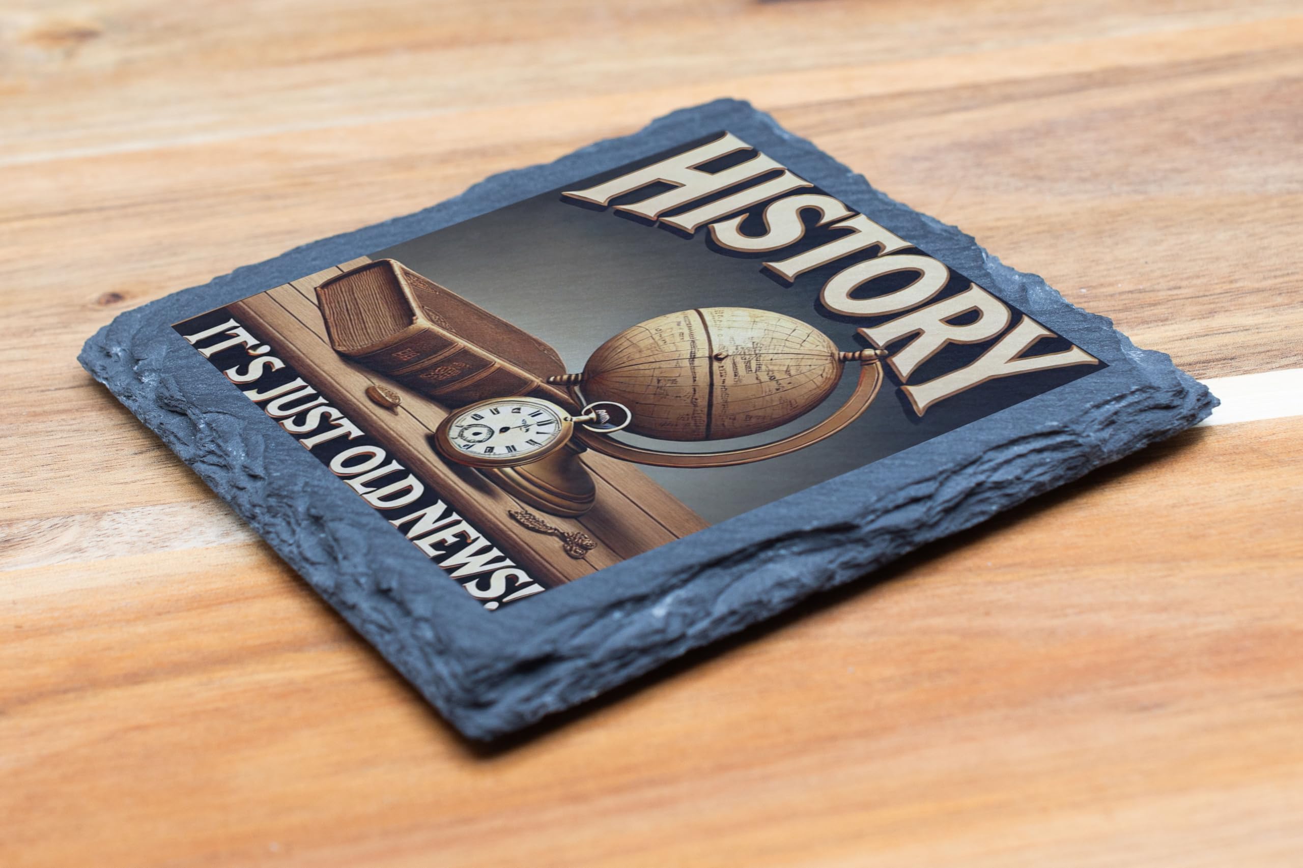 Celebrate history with a touch of humor with our "History: It's Just Old News!" Slate Coaster. This charming coaster showcases a vintage design featuring a globe, an old book, and a pocket watch, accompanied by a witty caption that's sure to bring a smile to any history enthusiast. Crafted from premium natural slate, this durable coaster not only adds a unique aesthetic to your space but also offers excellent functionality by protecting your surfaces from drink stains, spills, and heat. The vivid print is built to last, ensuring the design remains a centerpiece for years to come. Whether you're shopping for a teacher, a history lover, or just someone with a penchant for quirky decor, this coaster makes an excellent gift for birthdays, housewarmings, or any special occasion. Add a dash of vintage charm and wit to your home or workspace today!