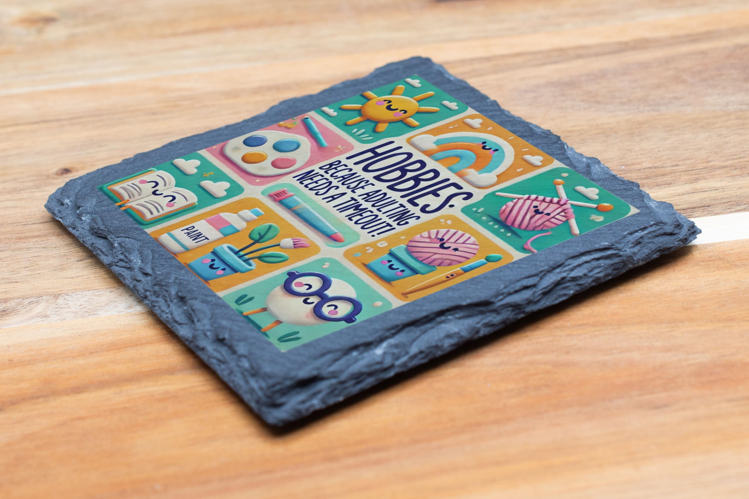 Hobbies Slate Coaster - 'Because Adulting Needs a Timeout' Fun Design (slco-kf25-timeouthg)