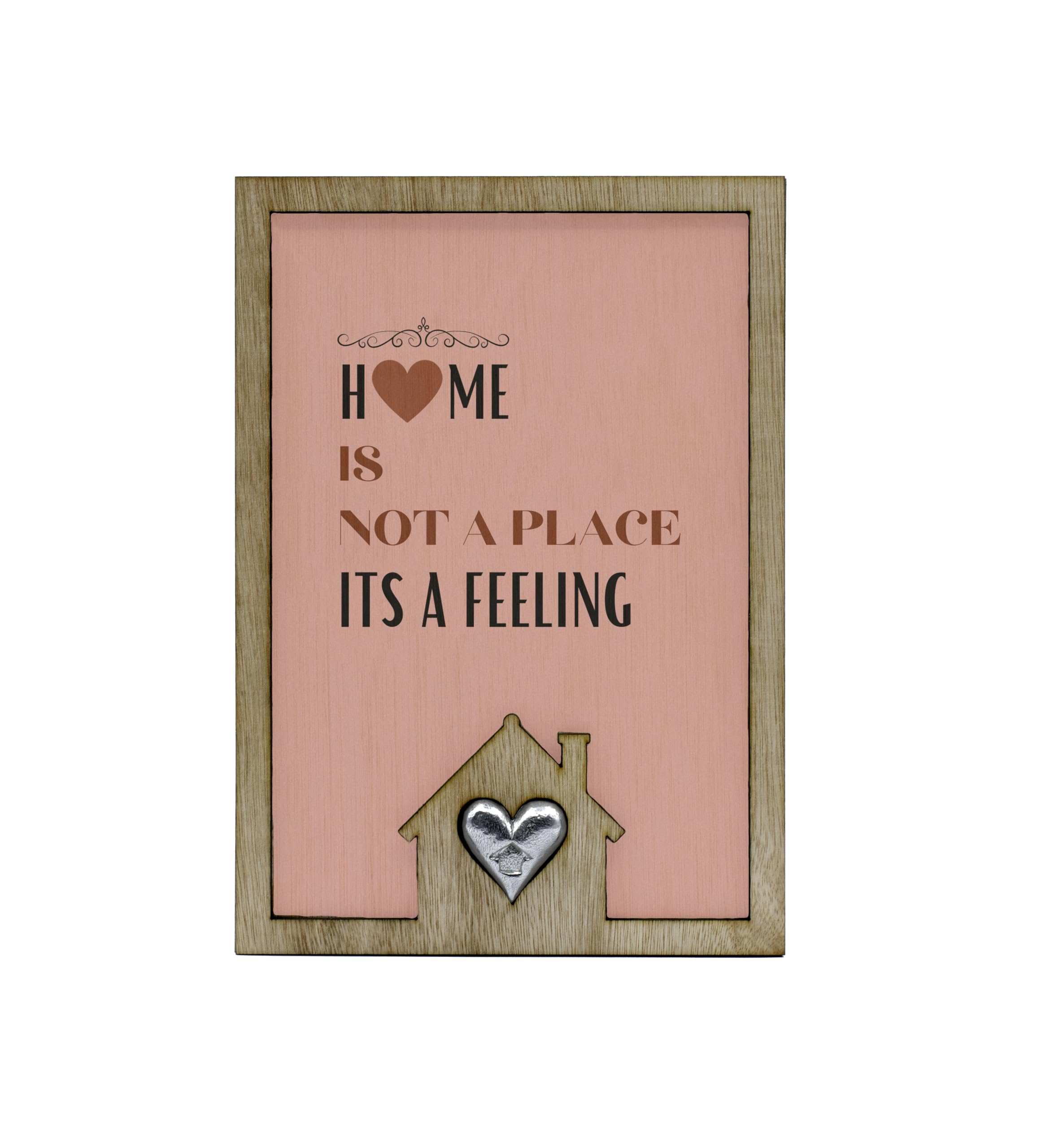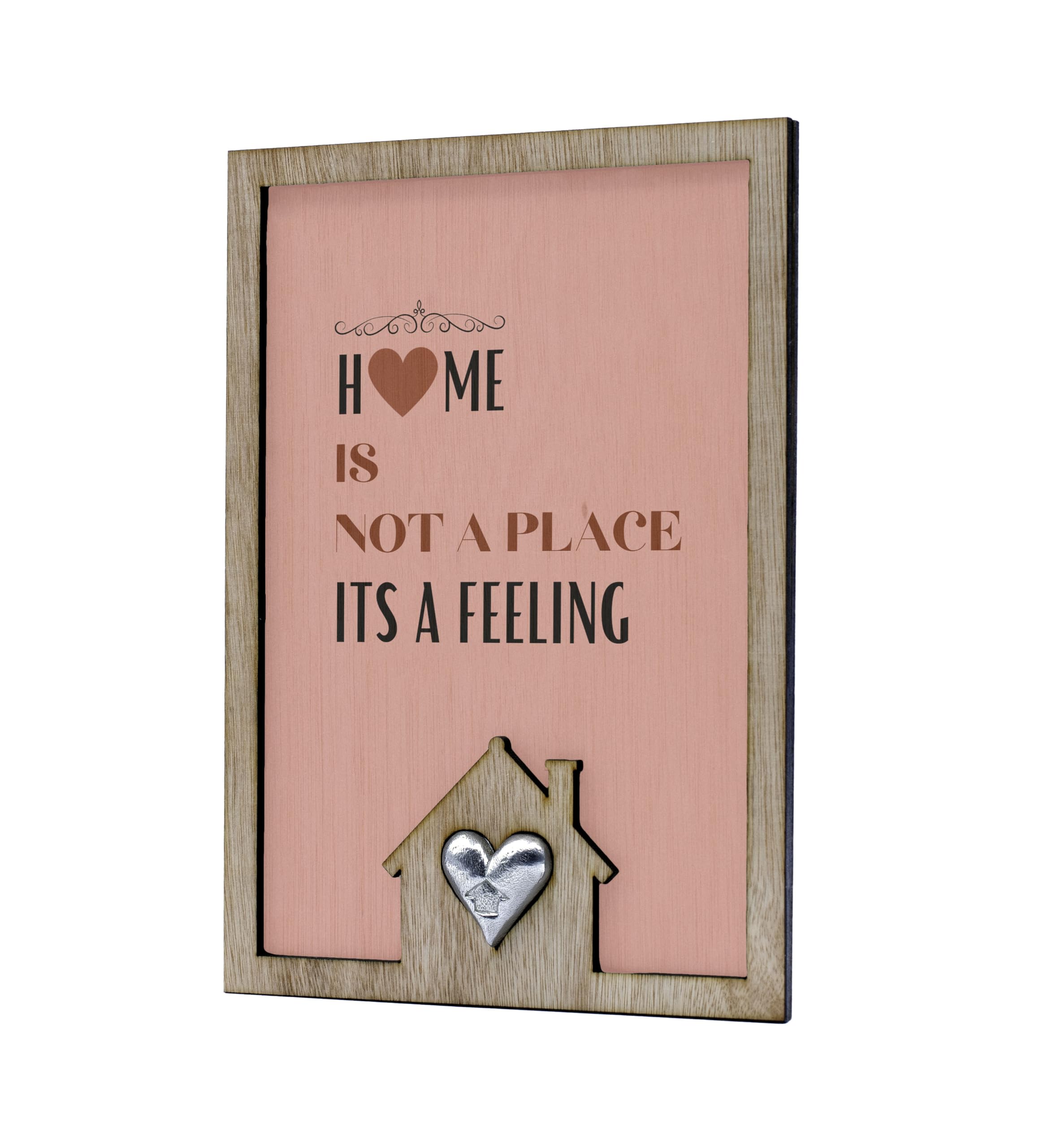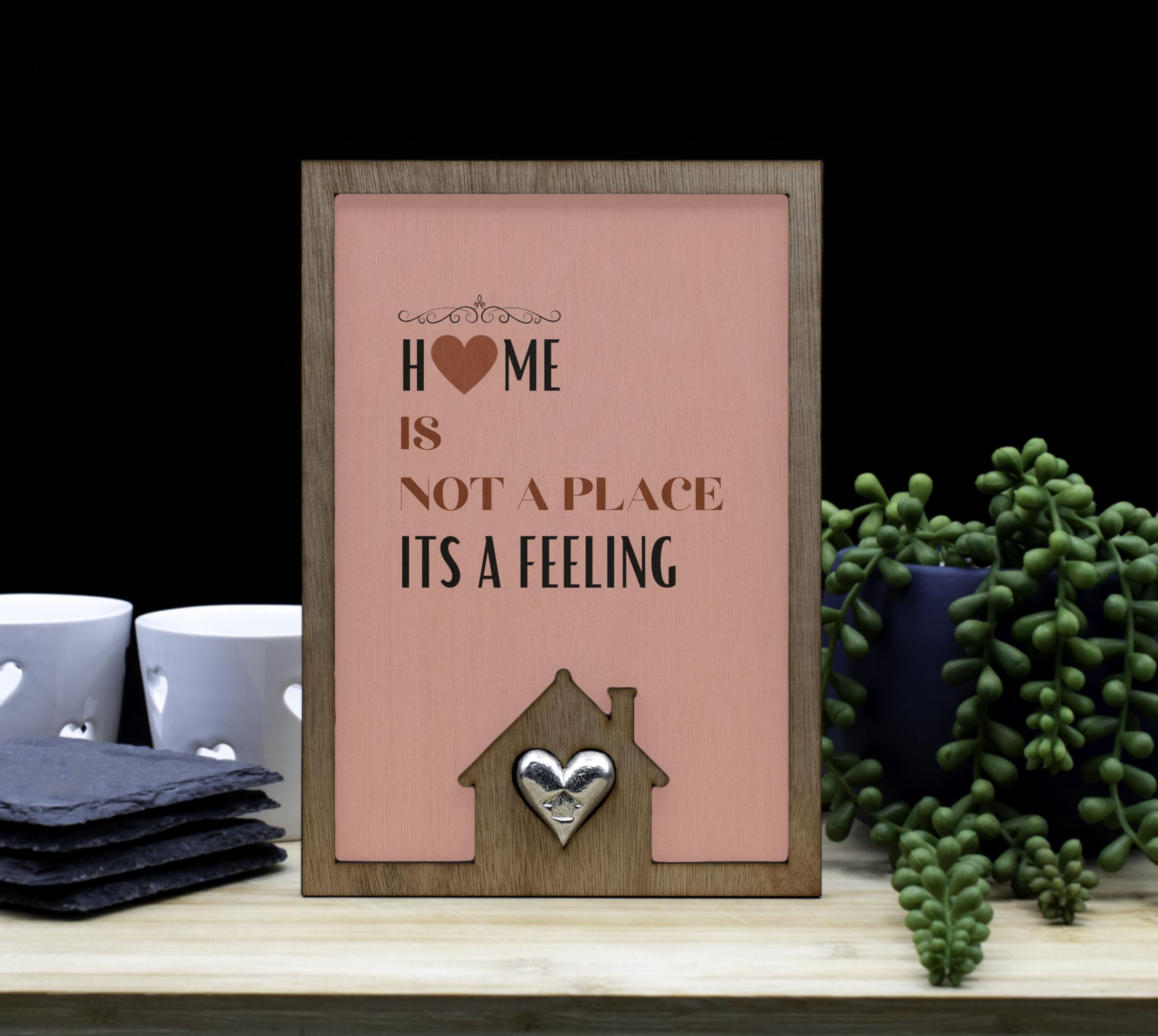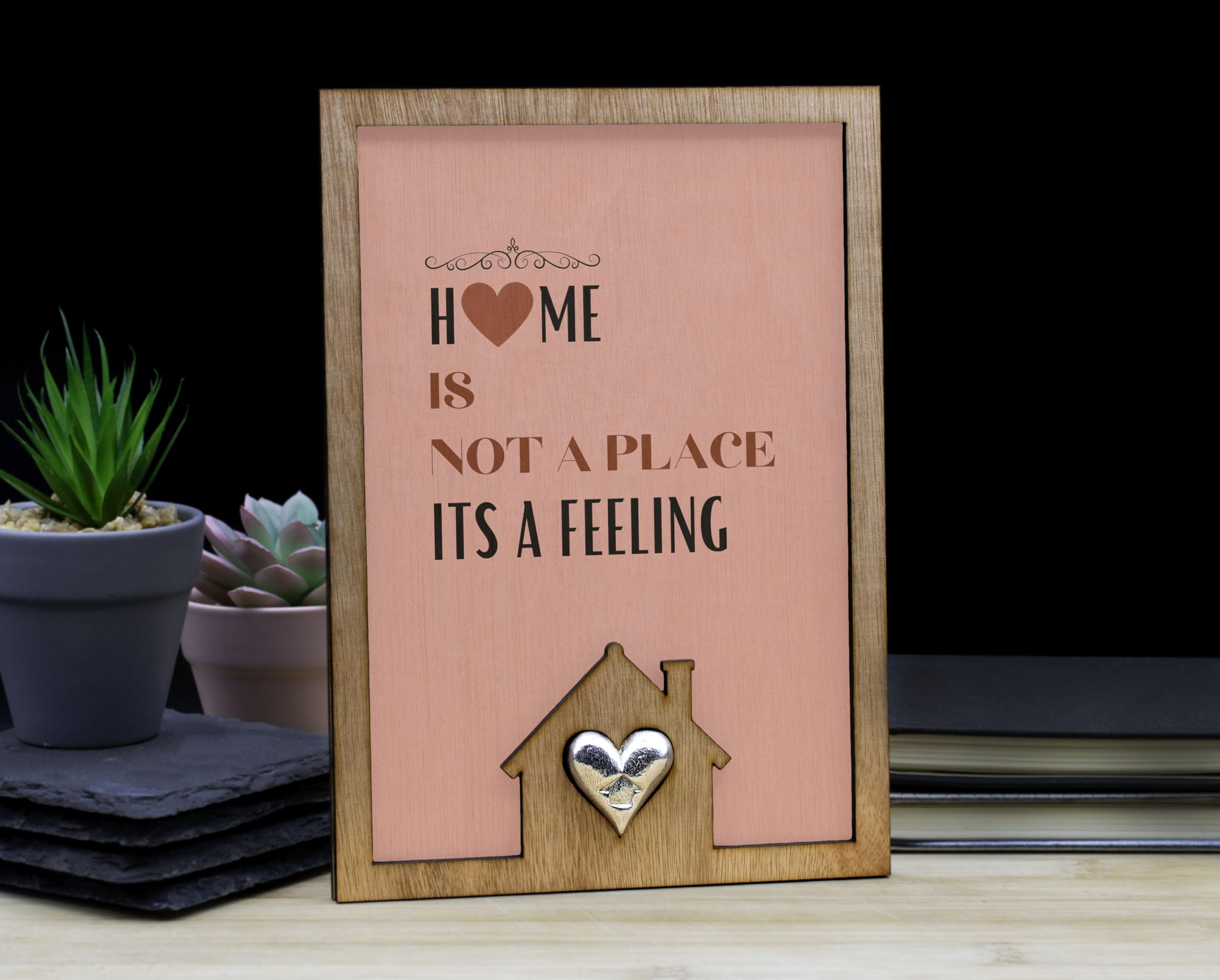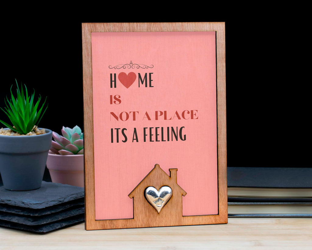 Home is Not a Place Its a Feeling - Tin Heart in Plywood House Ornament - Family Home Decor (hearthse-ha23-homefeel)