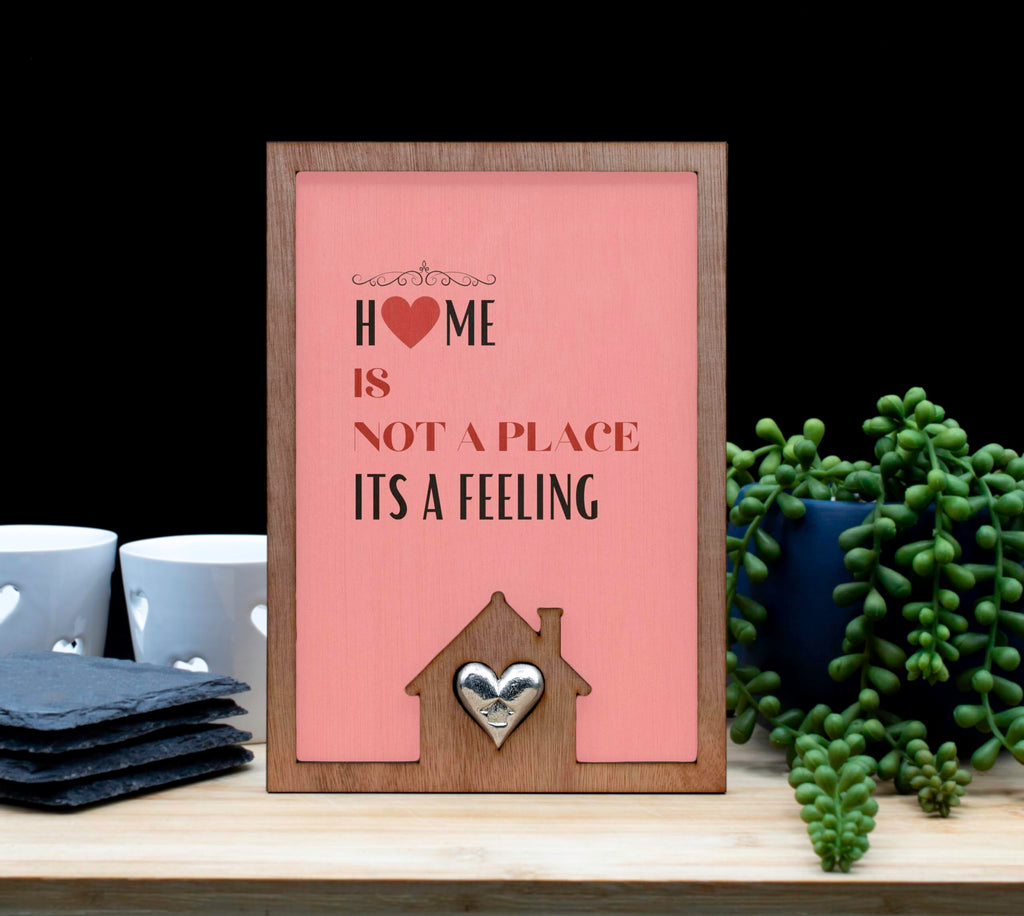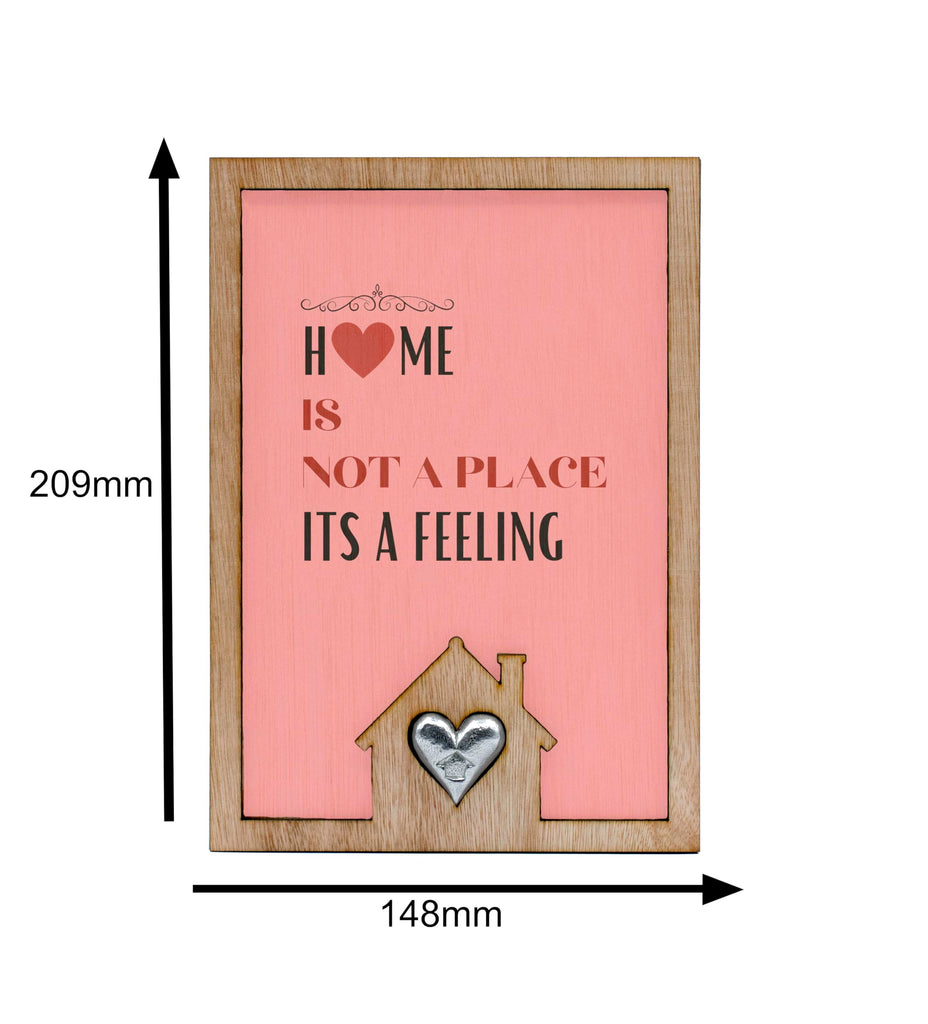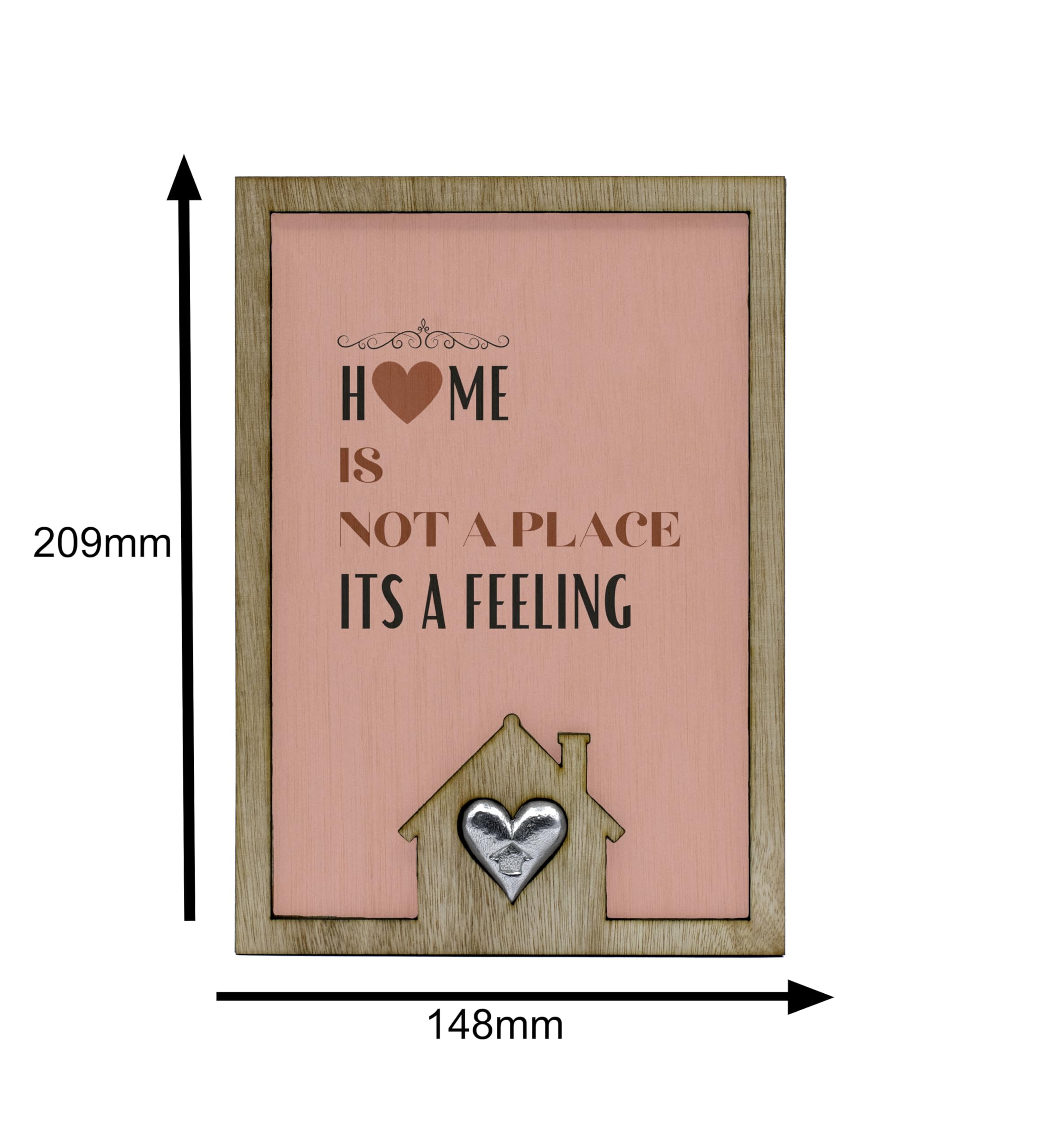 Enhance the warmth and love of your home with our exquisite Home is Not a Place Its a Feeling - Tin Heart in Plywood House Ornament. Crafted with attention to detail, this tin heart fits perfectly in a frame and serves as a charming home decor gift for couples. The unique novelty design, printed in full colour on a quality plywood frame, adds a touch of elegance to any space. With a pink background, black and red writing, and an image of a red love heart, this ornament is sure to catch everyone's attention. Embrace the true essence of home and family with this beautiful piece.