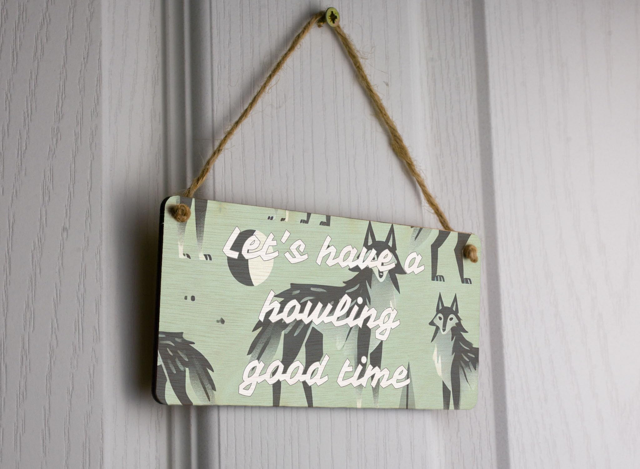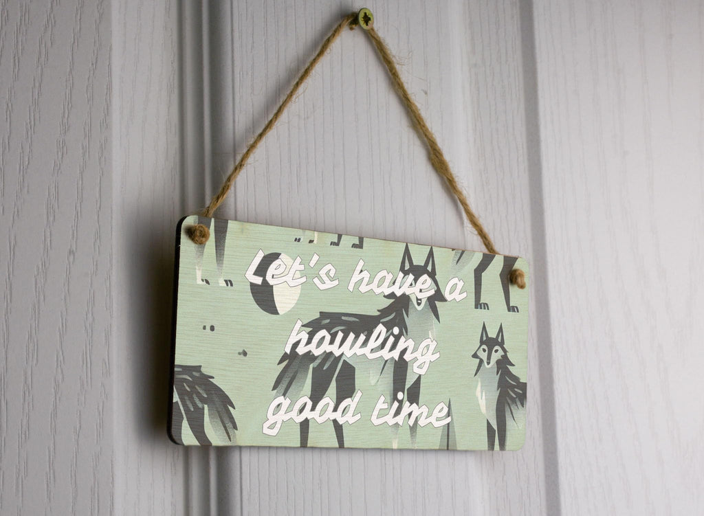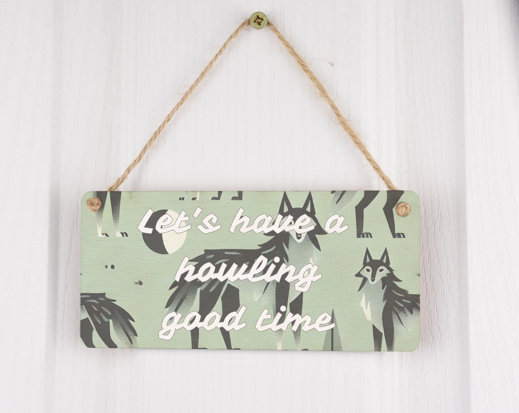 - Spread a lighthearted message with the fun 'Let's have a howling good time' quote
