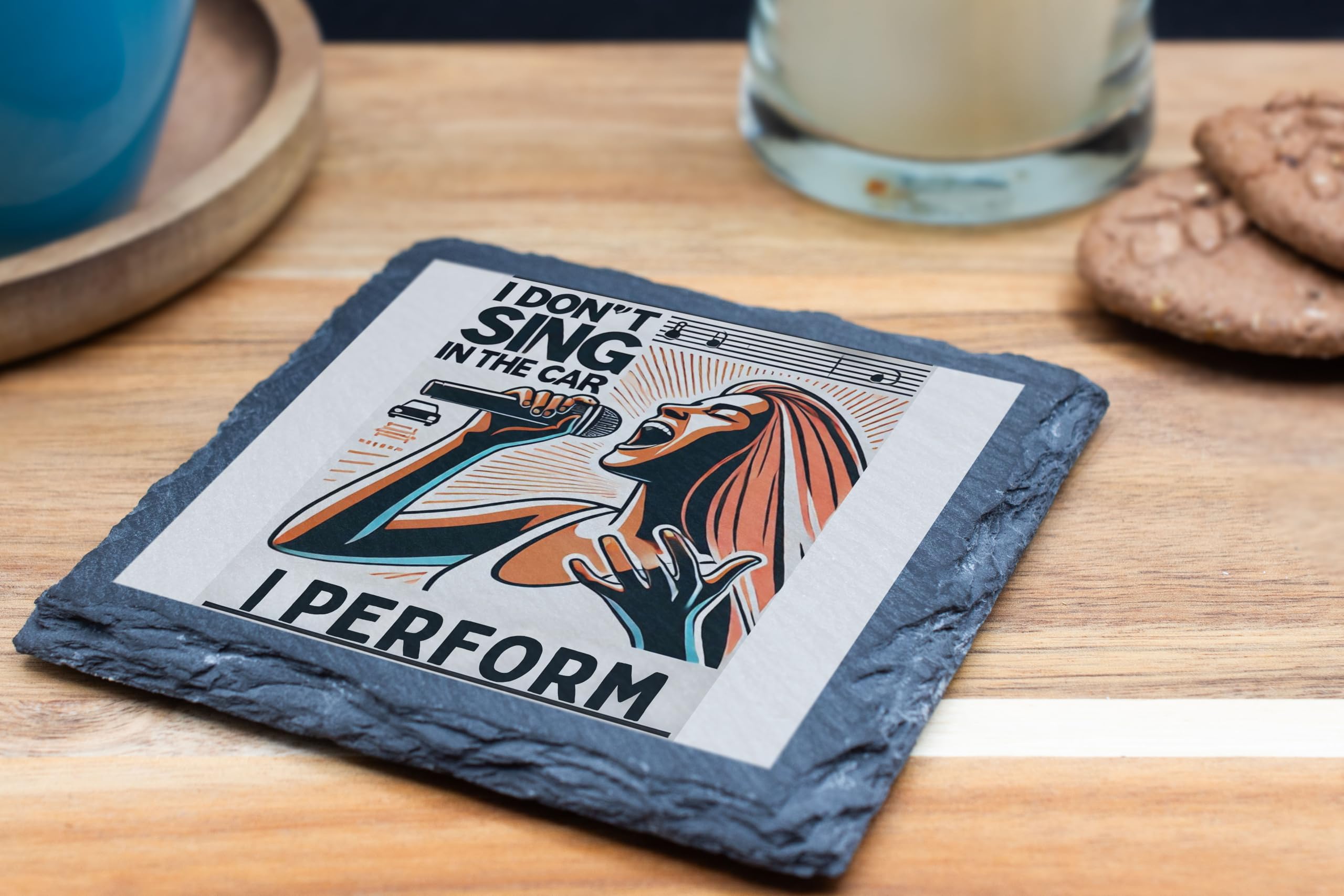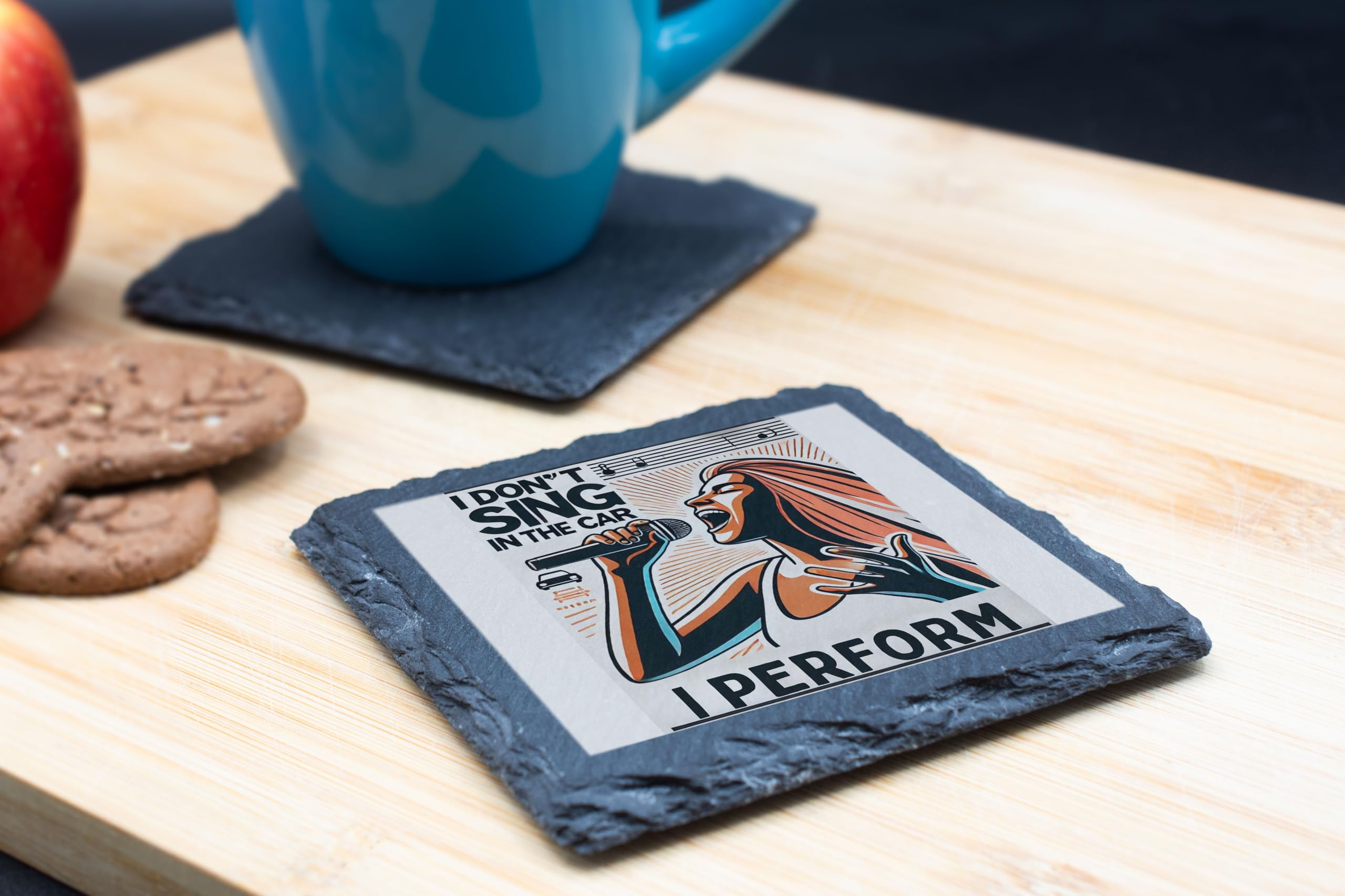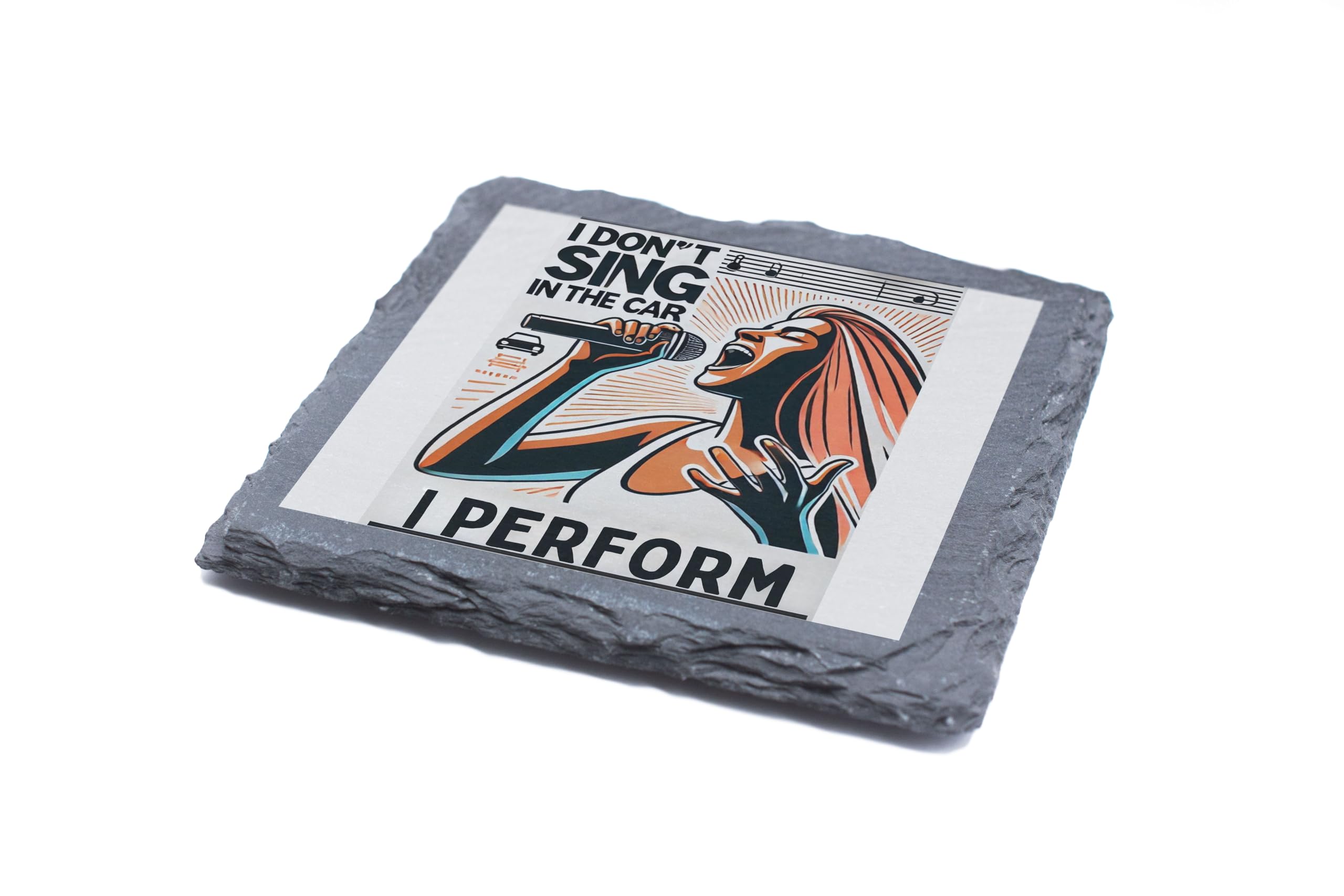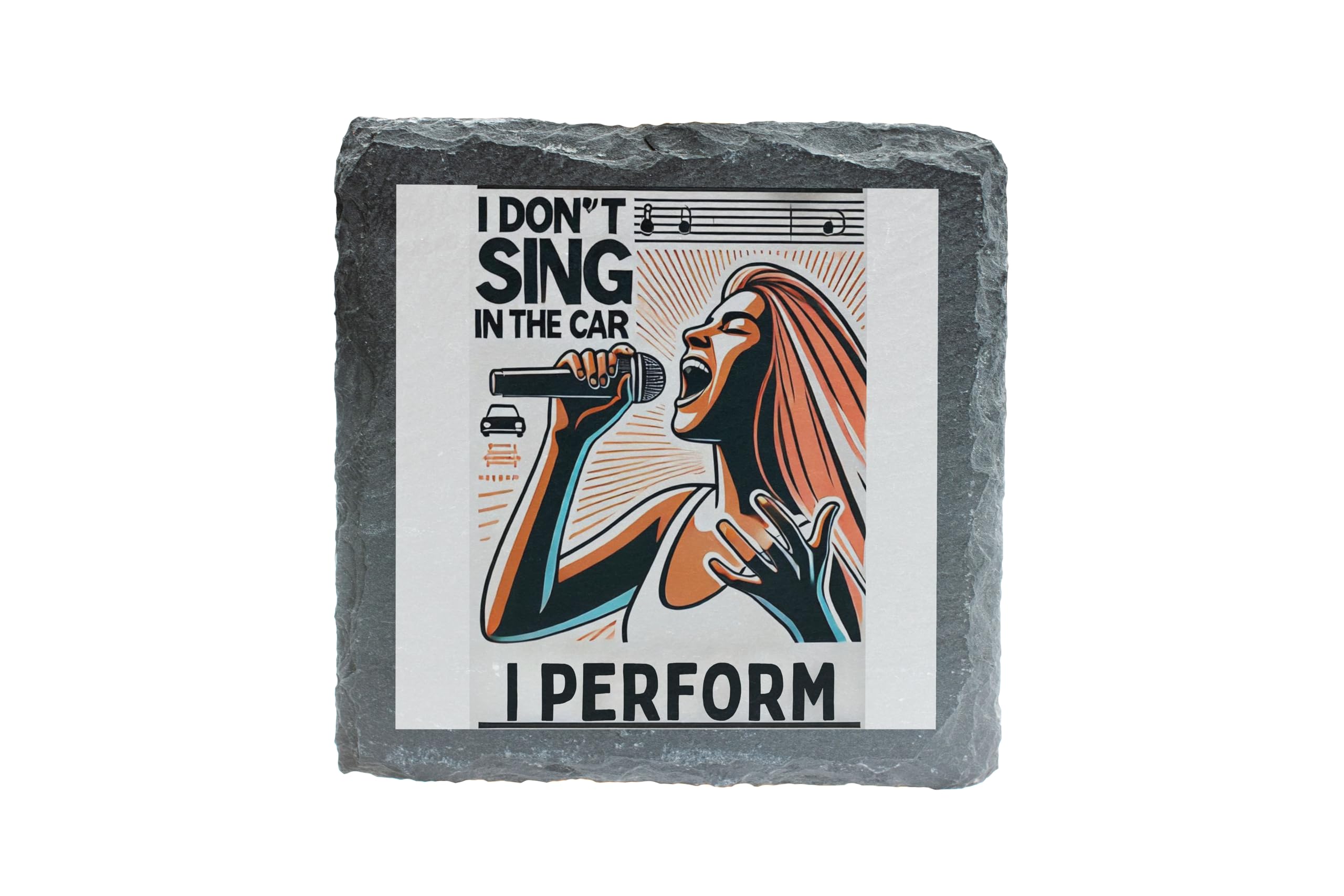 Showcase your inner performer with the "I Don?t Sing in the Car, I Perform" Decorative Slate Coaster. This eye-catching piece combines humor and art, featuring a bold design that resonates with music enthusiasts and car karaoke stars alike. Whether you?re belting out tunes on the road or enjoying a cup of coffee at home, this coaster is the perfect way to express your love for music. Crafted from durable, natural slate, this coaster is as functional as it is stylish. It protects your tables from spills and scratches while offering heat resistance for hot beverages. The rustic edges and smooth design make it a standout addition to any room. Gift this unique coaster to your favorite performer or keep it as a quirky addition to your decor. It's more than just a coaster?it's a celebration of your personality and passion for music!