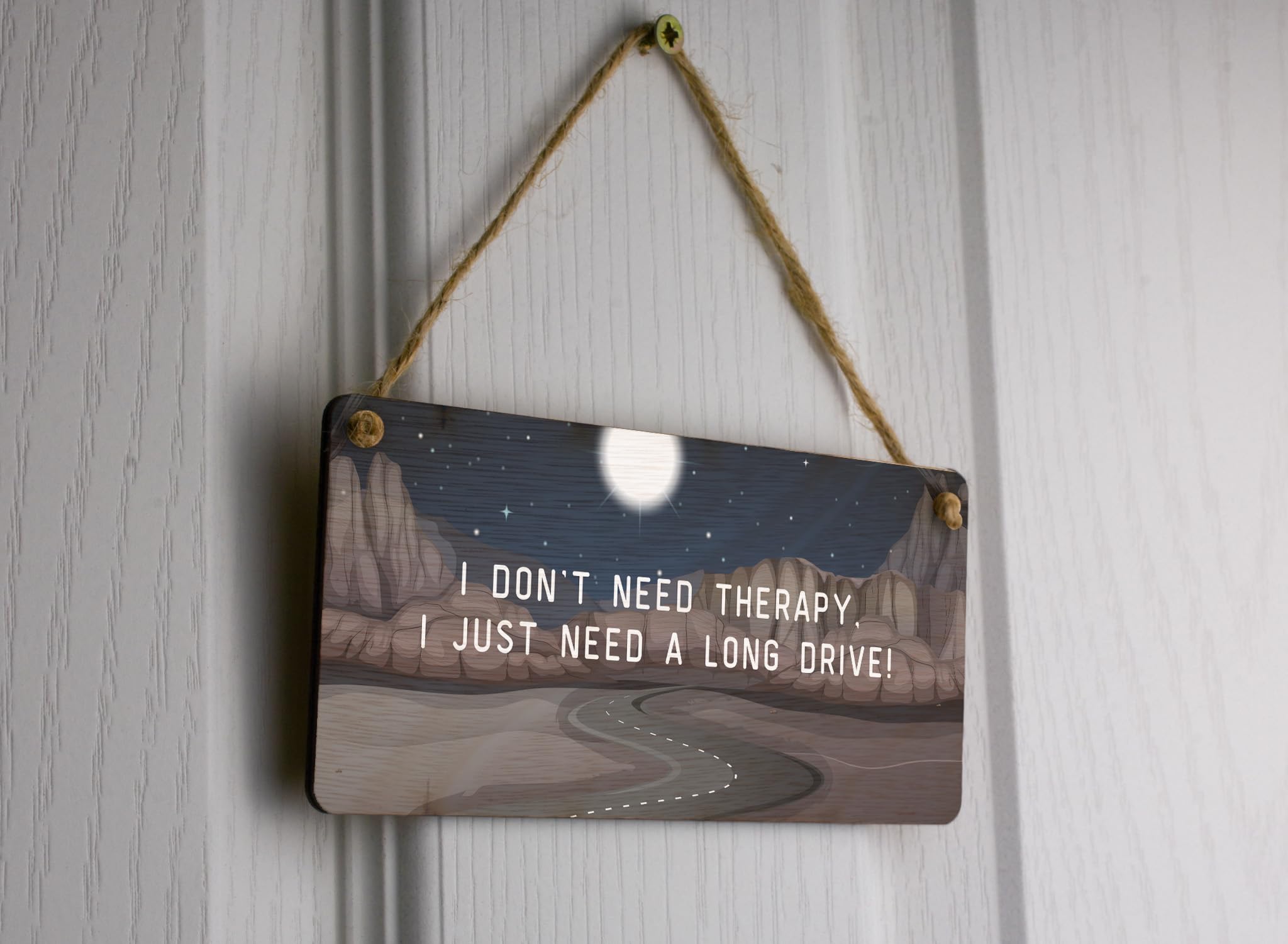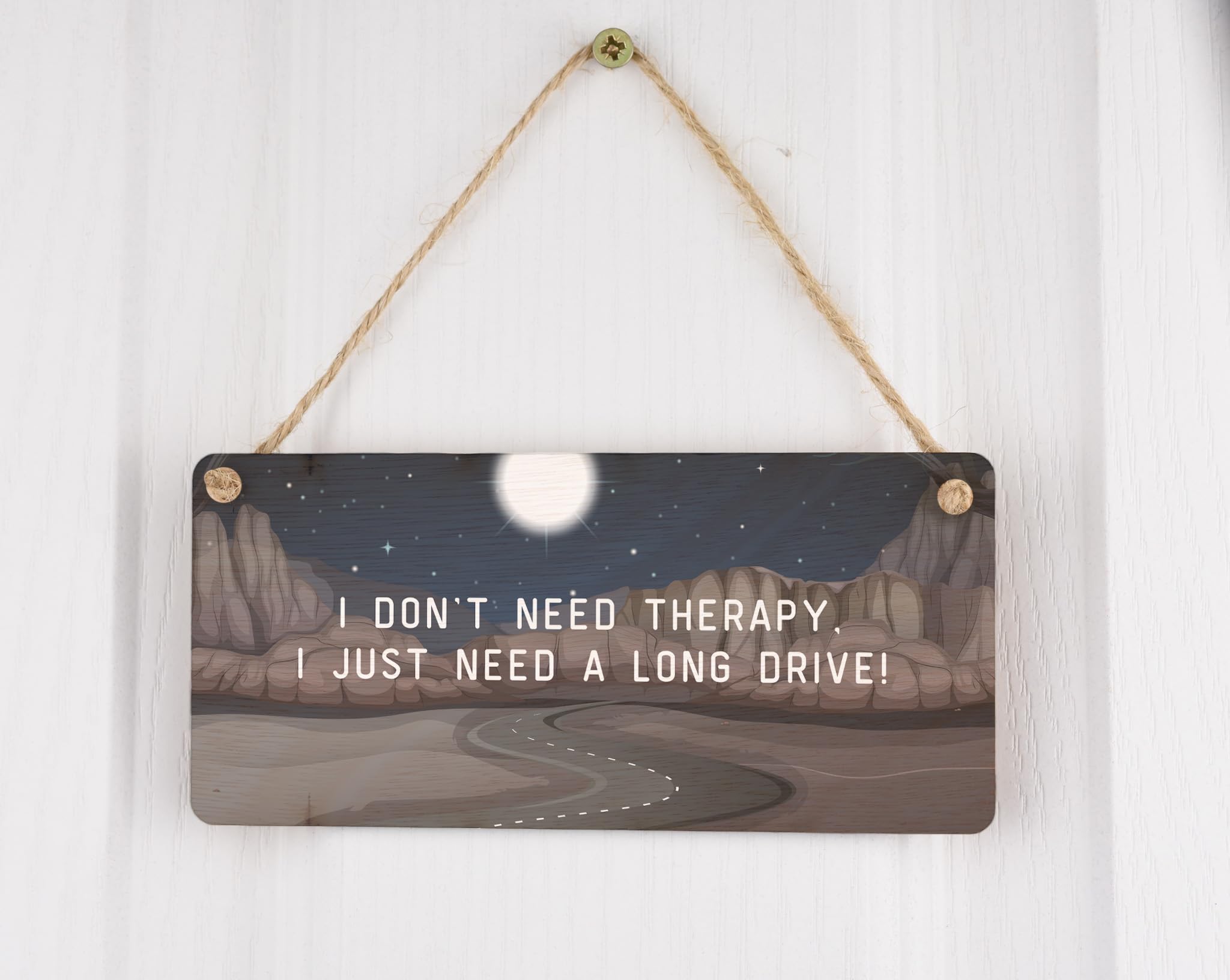 This I Just Need a Long Drive Hanging Plywood Sign is the perfect addition to your home decor, office, or kitchen. With its modern road design, it adds a touch of style and uniqueness to any space. The sign reads 'I Don't Need Therapy, I Just Need a Long Drive', emphasizing the importance of mental health and the healing power of hitting the open road. Made from quality plywood, this hanging sign is durable and long-lasting. Hang it on your wall to create a focal point that promotes a positive mindset and prioritises mental well-being. Whether you're a road enthusiast or simply appreciate the symbolism of the open road, this sign is sure to make a statement in any room.