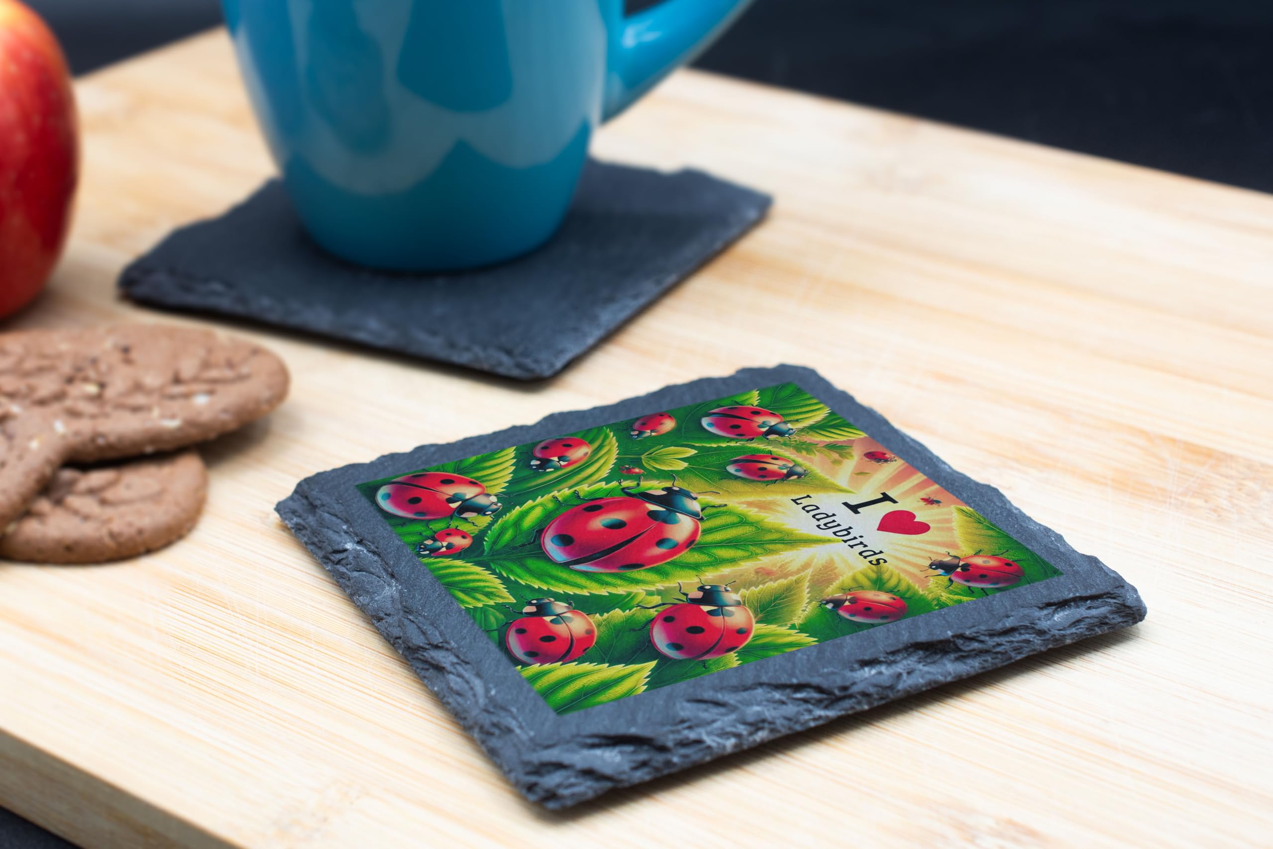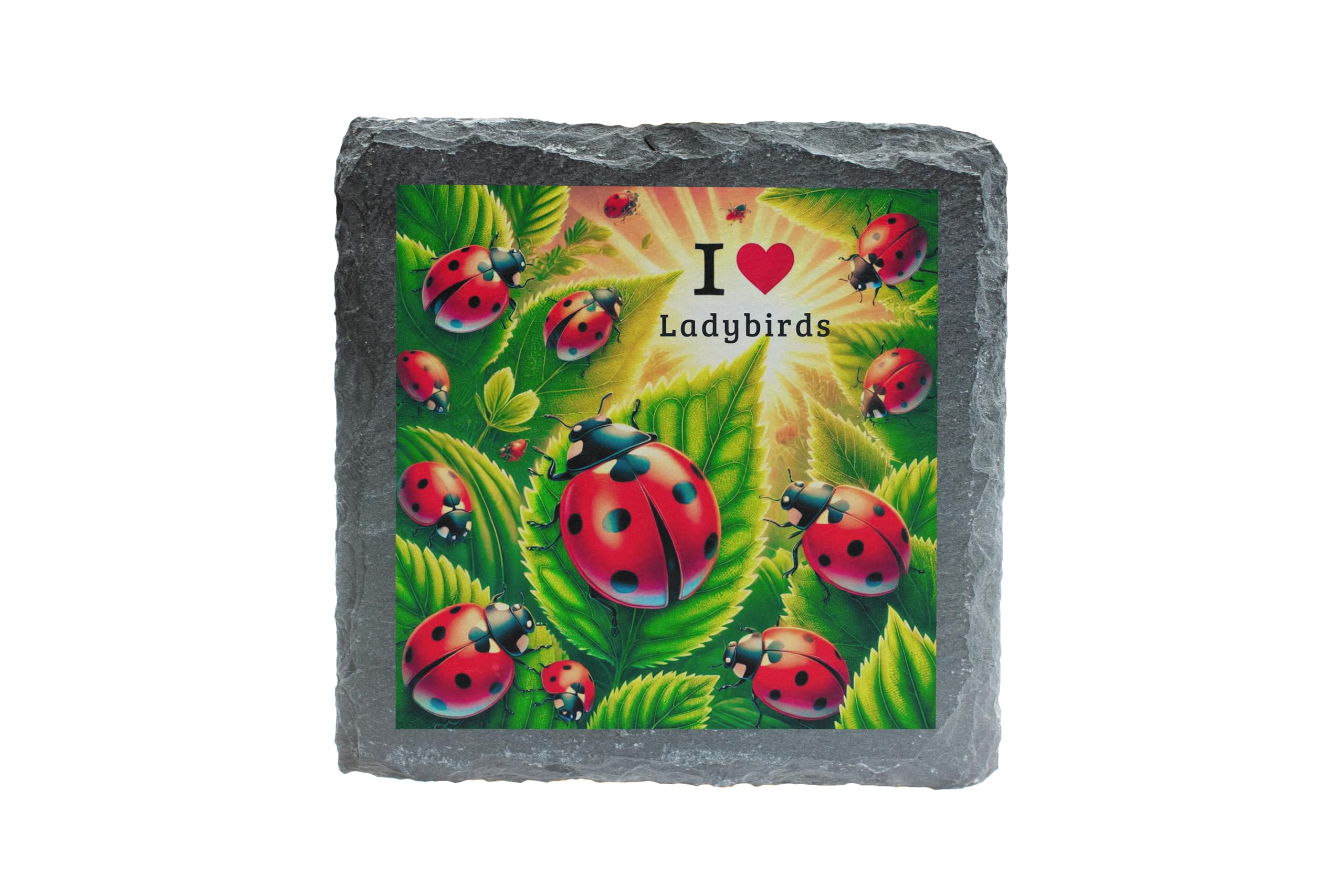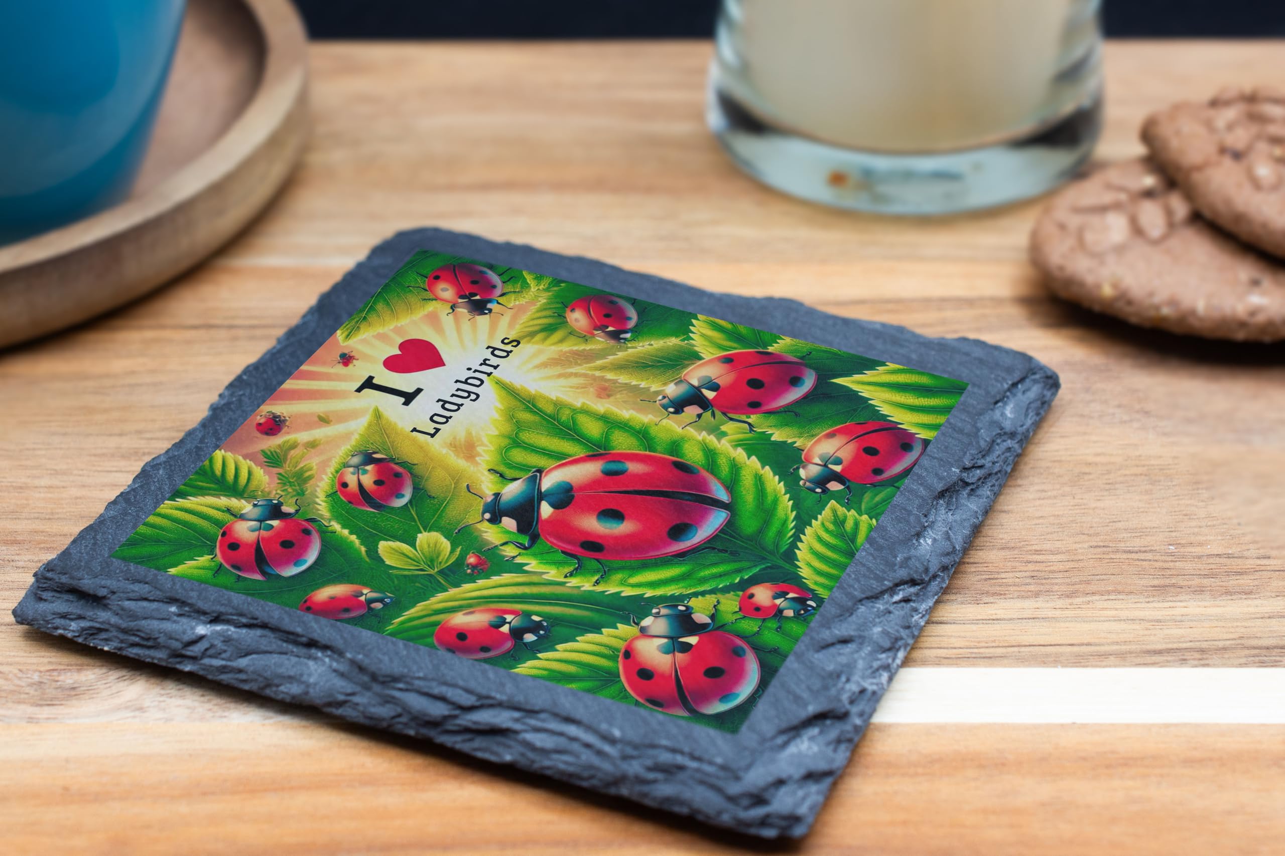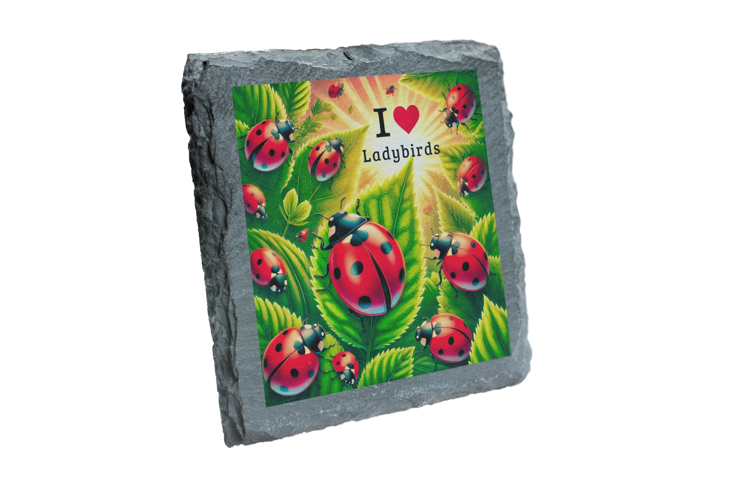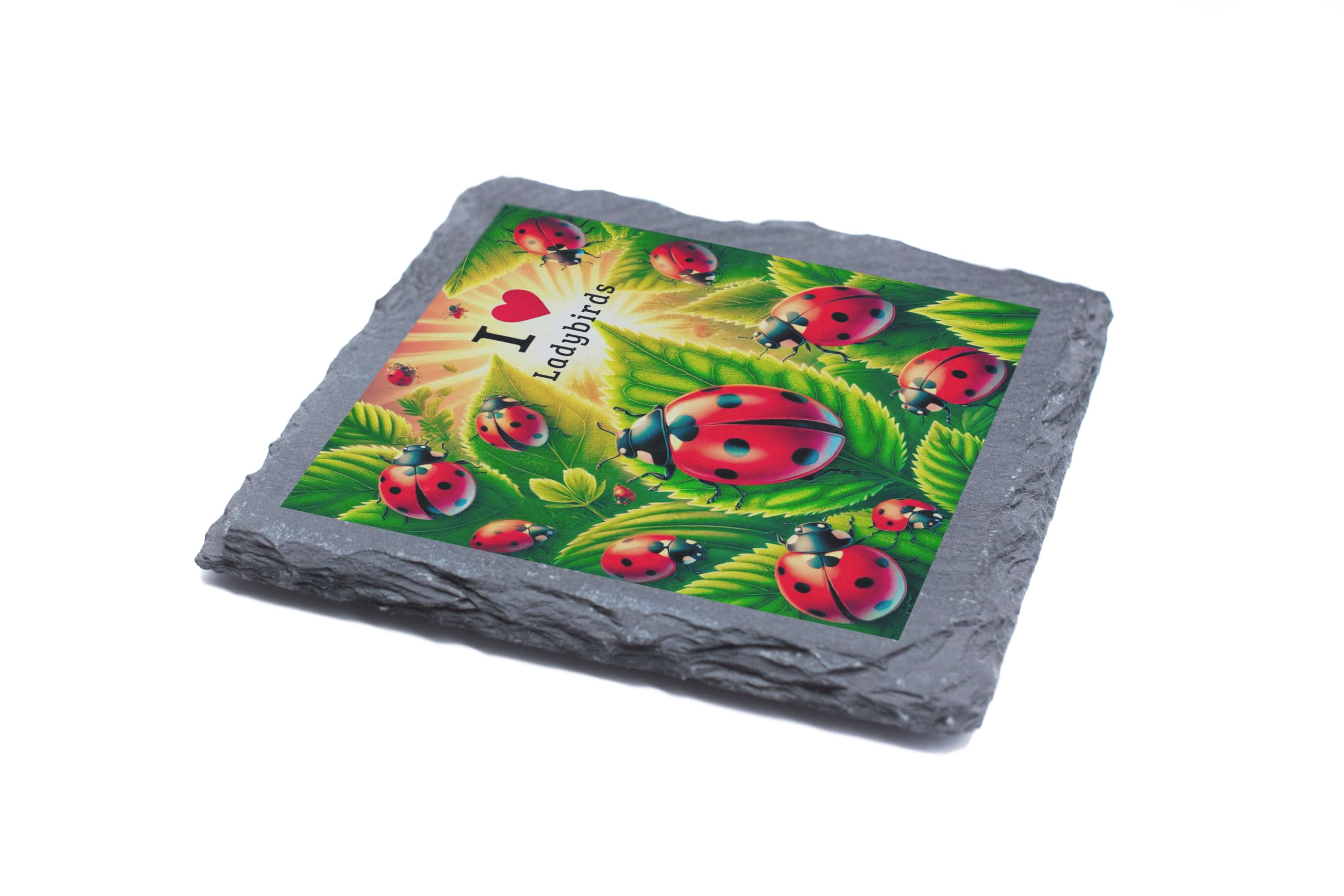I Love Ladybirds Vibrant Slate Coaster with Beautiful Nature-Inspired Design (slco-kf25-ladybirdlovekvd)