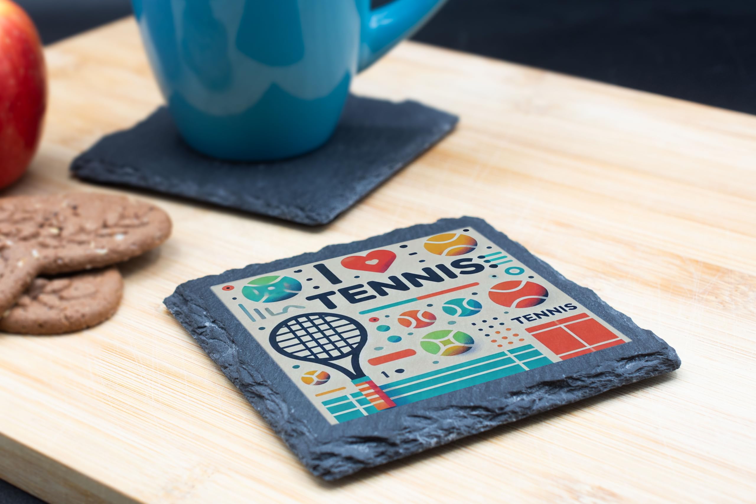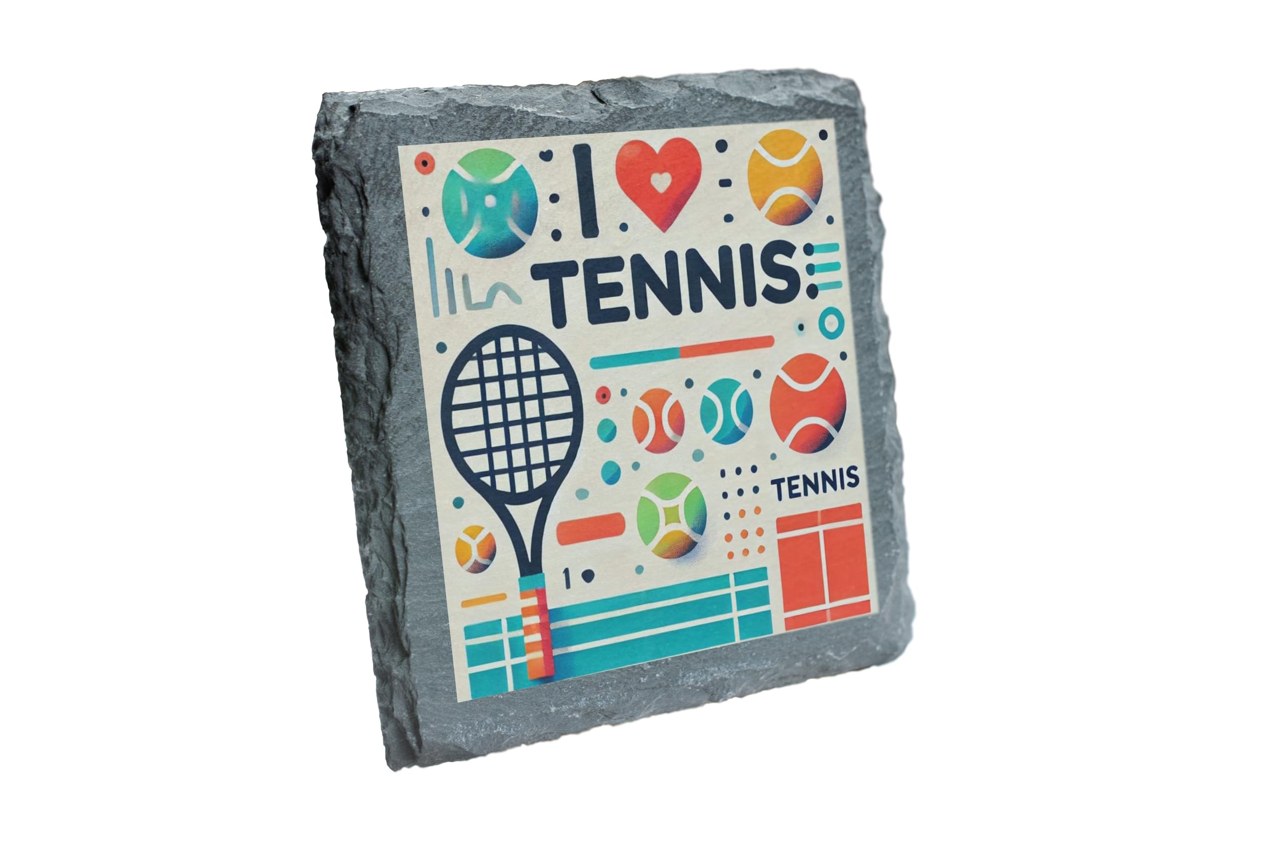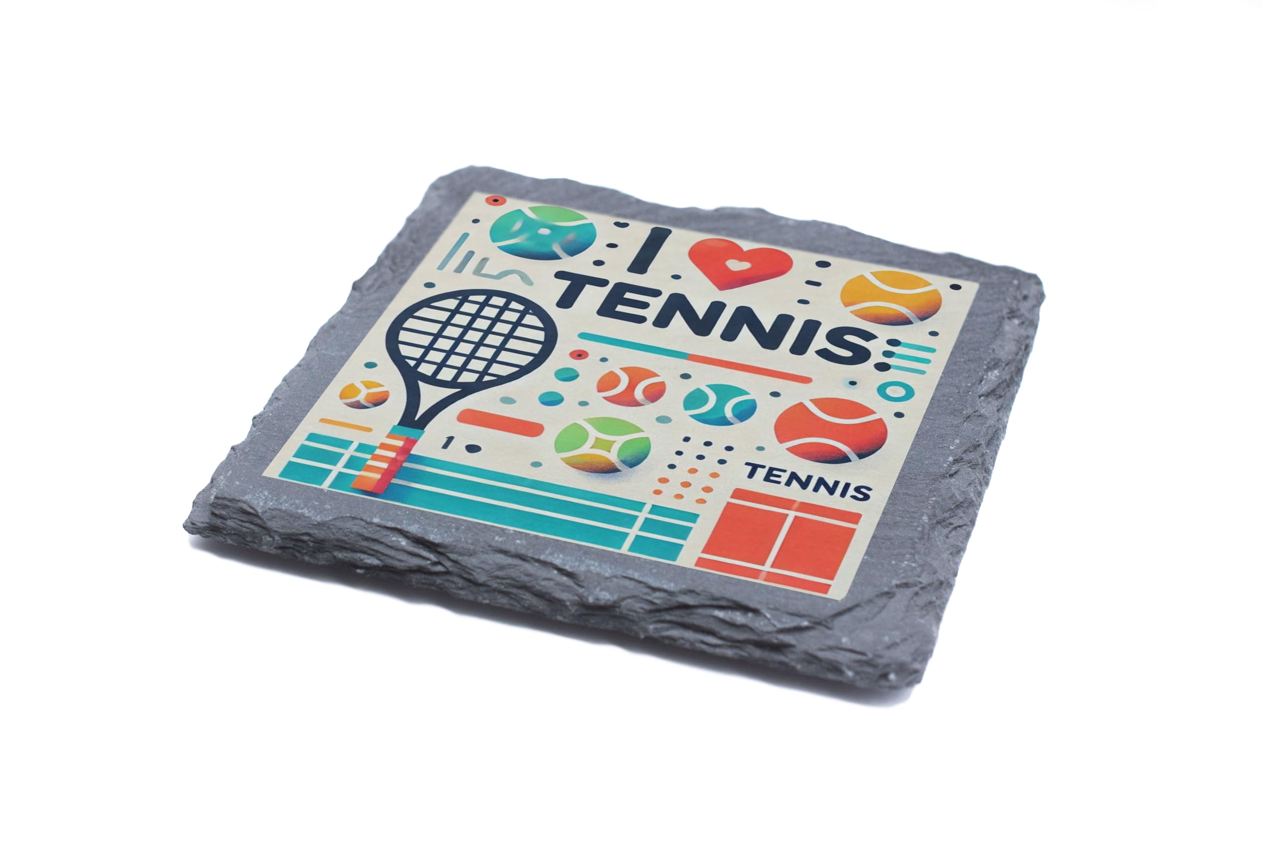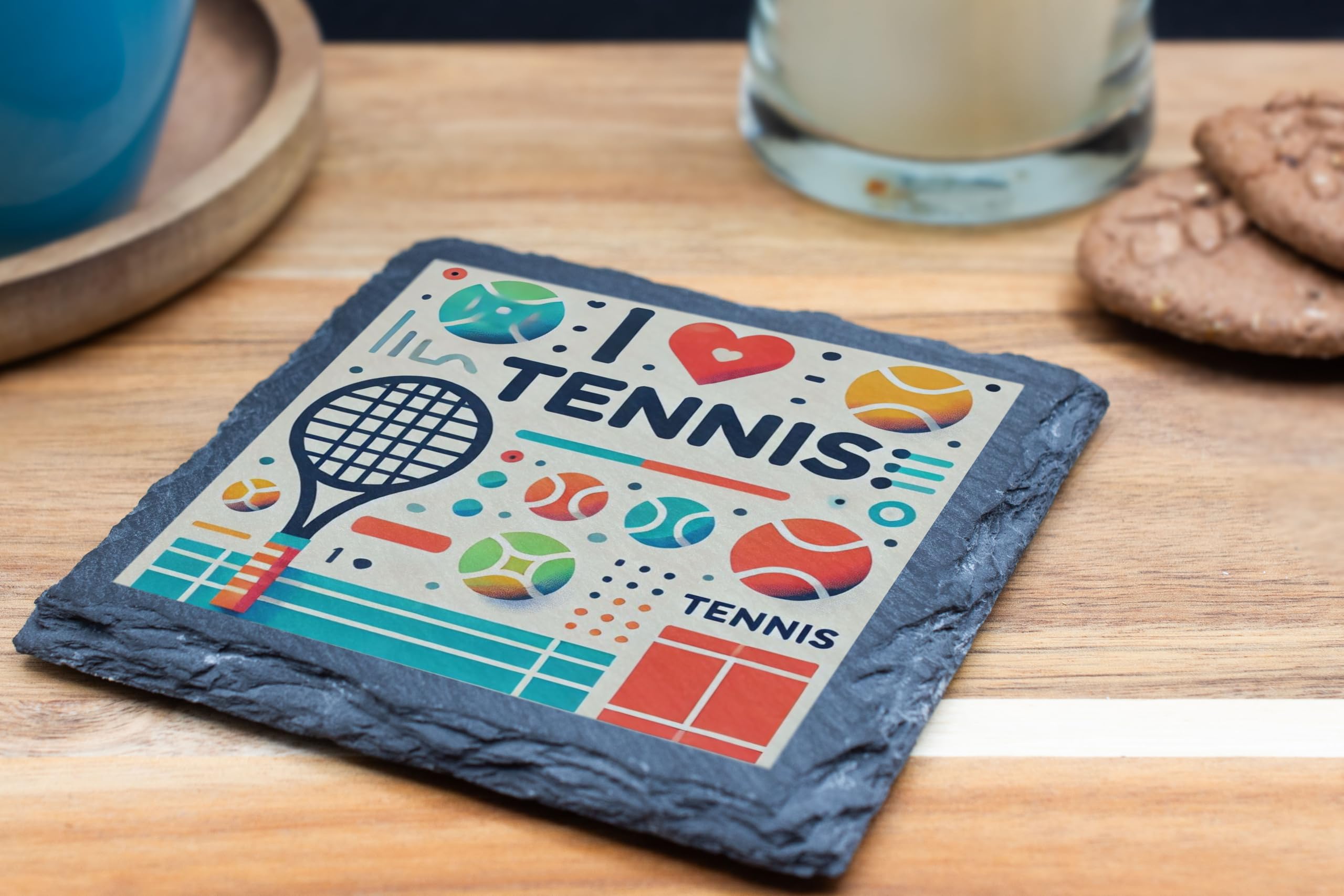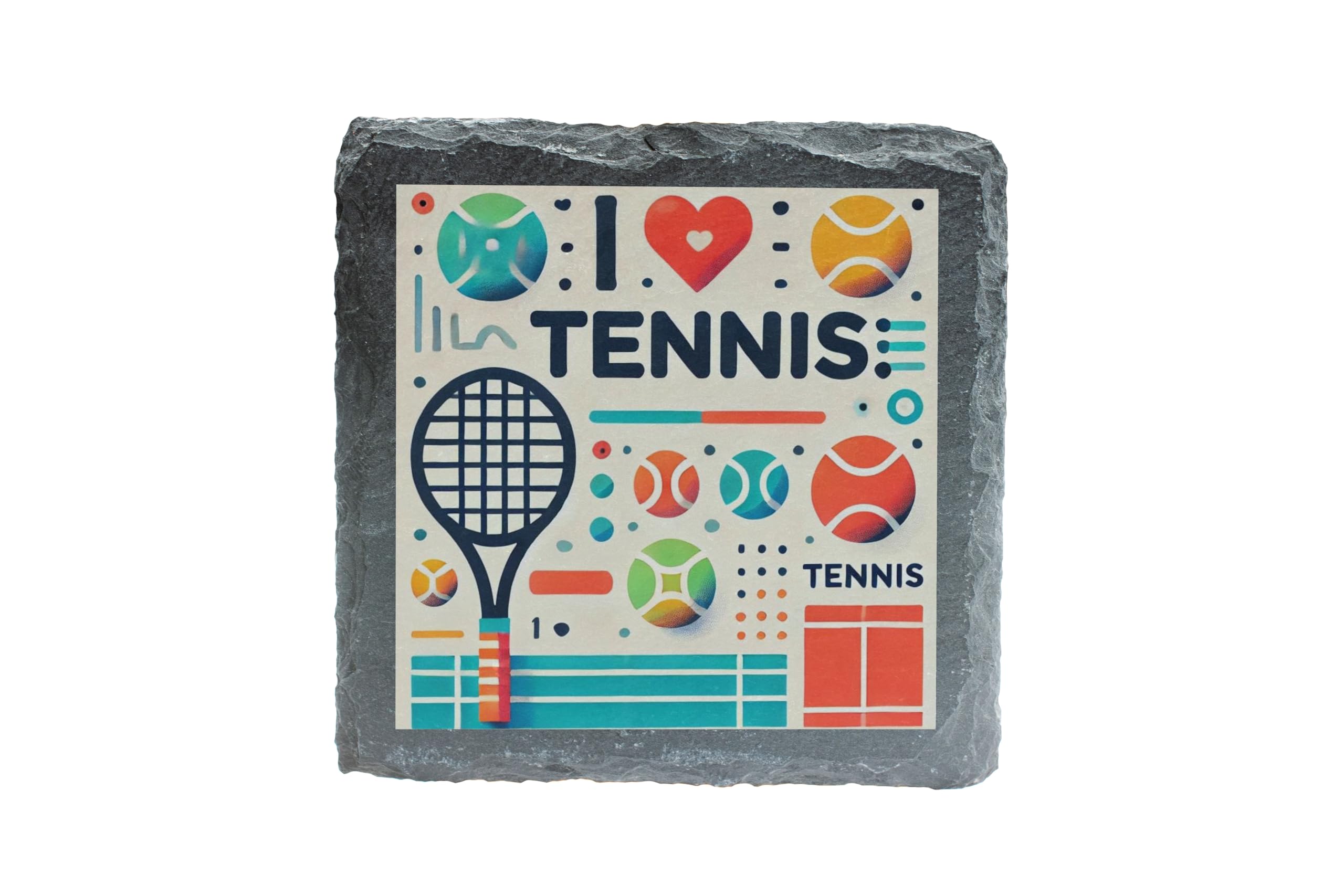 Celebrate your passion for tennis with this charming "I Love Tennis" Slate Coaster. Featuring a dynamic design of vibrant tennis balls, rackets, and courts, this coaster adds a sporty flair to your space. Made from premium natural slate with a rustic edge, it?s both functional and decorative, protecting your surfaces while serving as a conversation starter. Whether you're enjoying a post-match drink or looking for the perfect gift for a tennis aficionado, this coaster makes a delightful addition to any collection. Stylish, durable, and fun, it?s a must-have for any tennis lover!