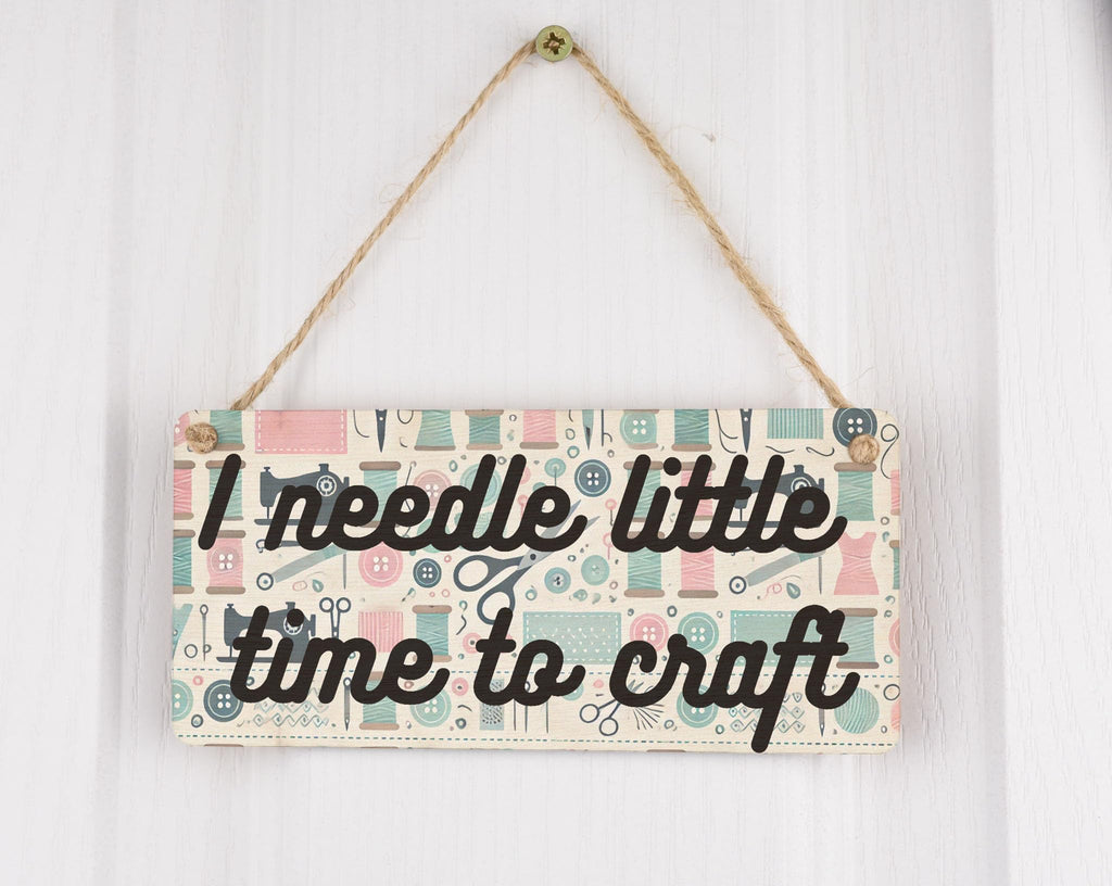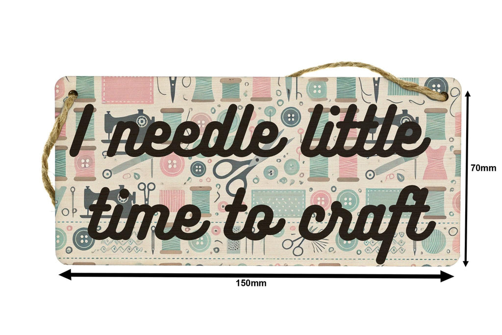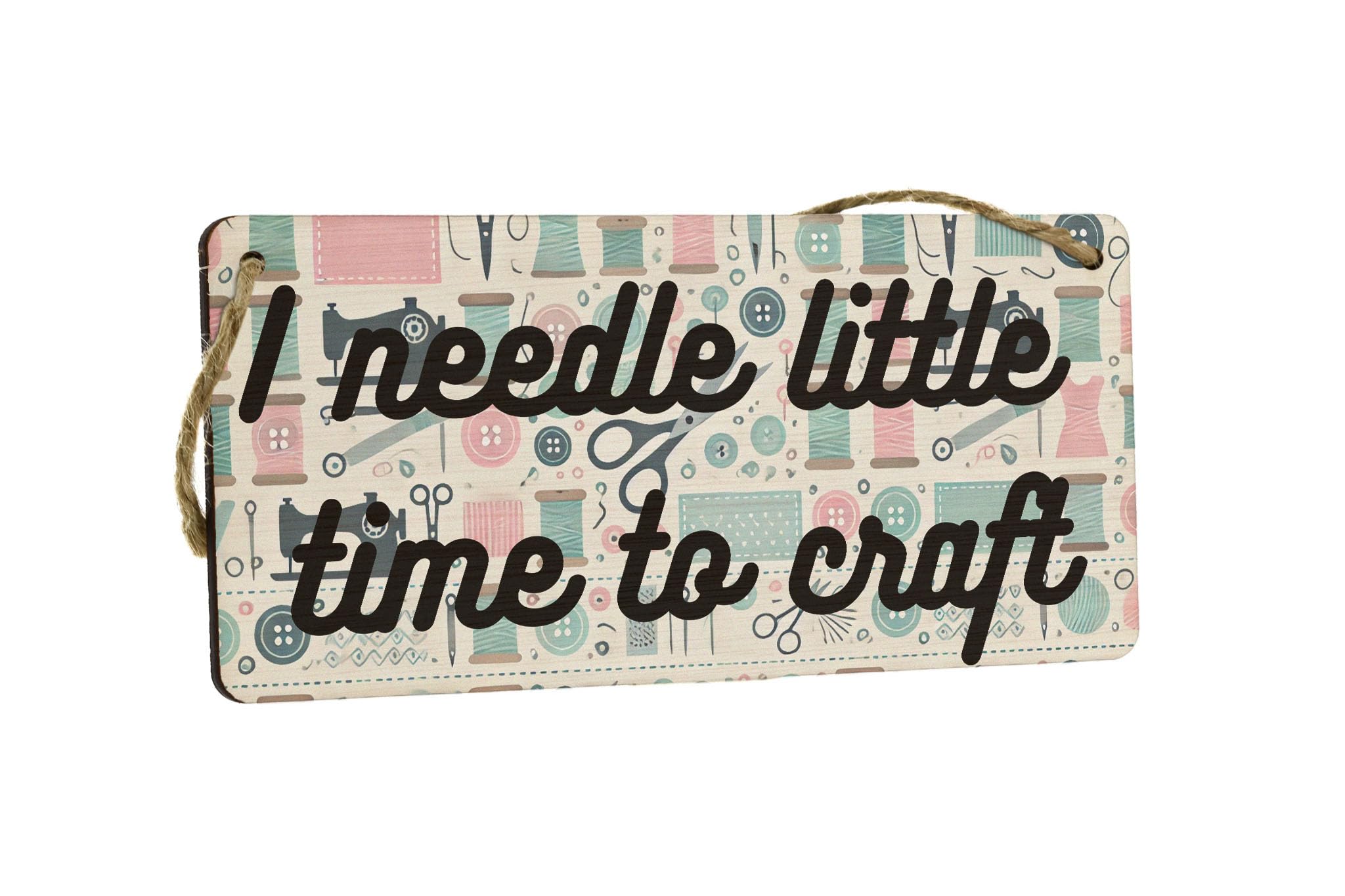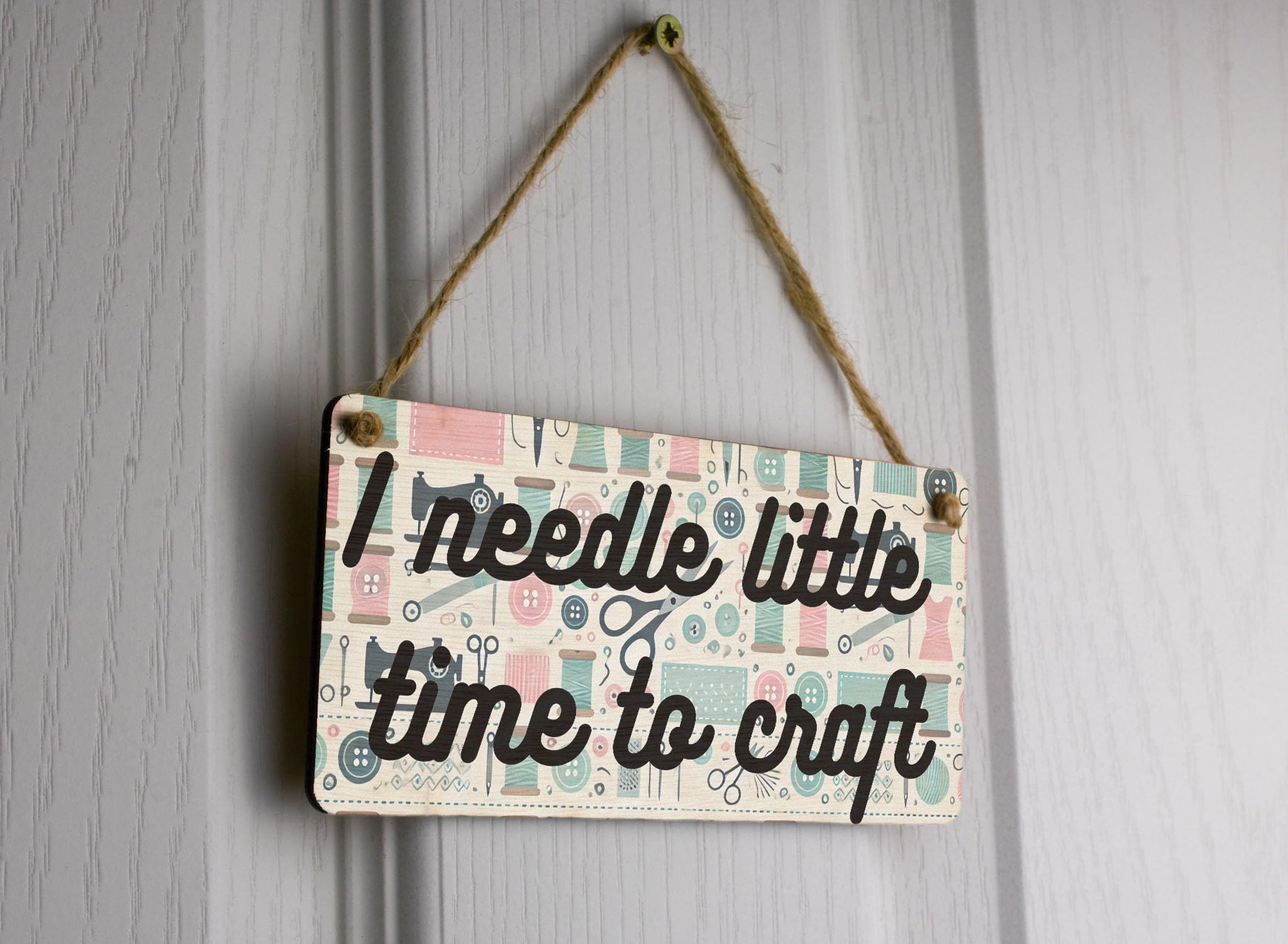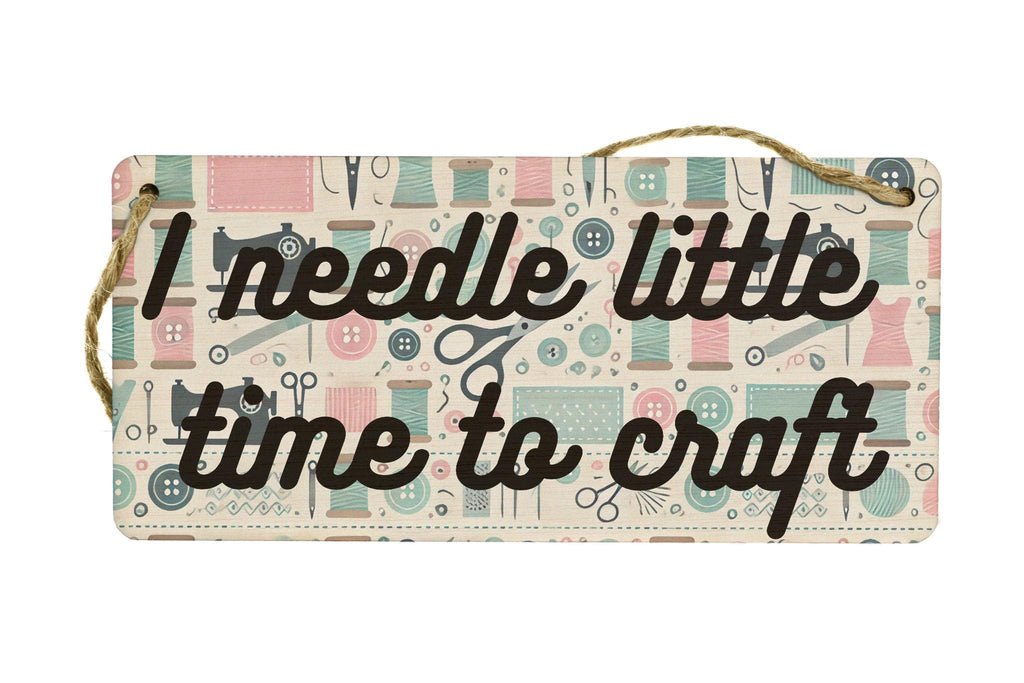 Get inspired to create with our 'I Needle Little Time to Craft' plywood hanging sign. This artistic piece of wall art is perfect for any craft room decor. The full-colour design features pastel sewing images that are sure to bring a smile to your face. Made using AI-generated art and UV printed for quality clarity, this sign is a must-have for any stitching enthusiast. The sign reads 'I needle little time to craft' in a playful and humorous tone, making it a great addition to your DIY space. Each sign is handcrafted from laser-cut plywood and comes with twine for easy hanging. Whether you love sewing, crafting, or needlework, this sign is sure to inspire your next creative project.