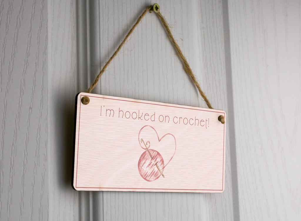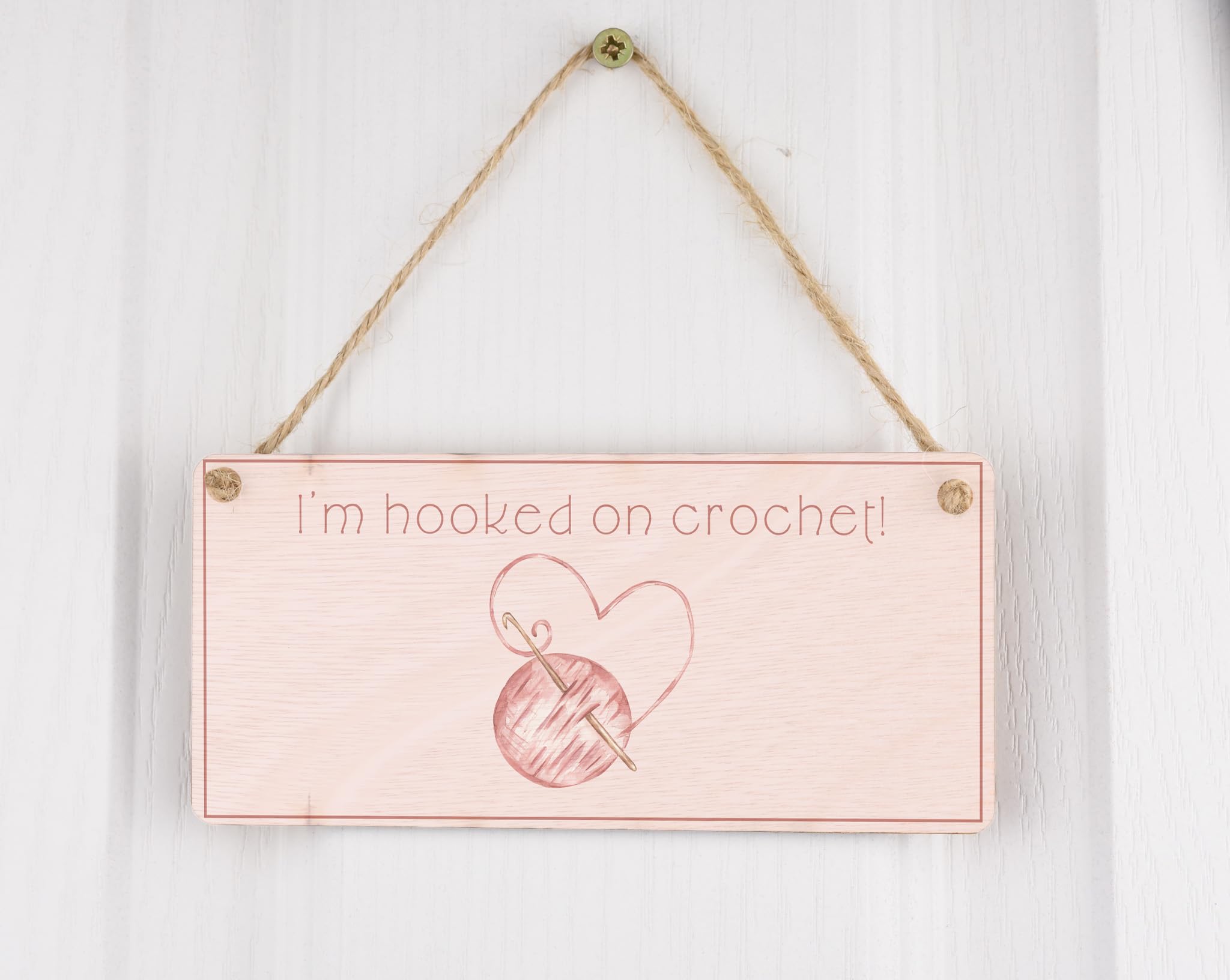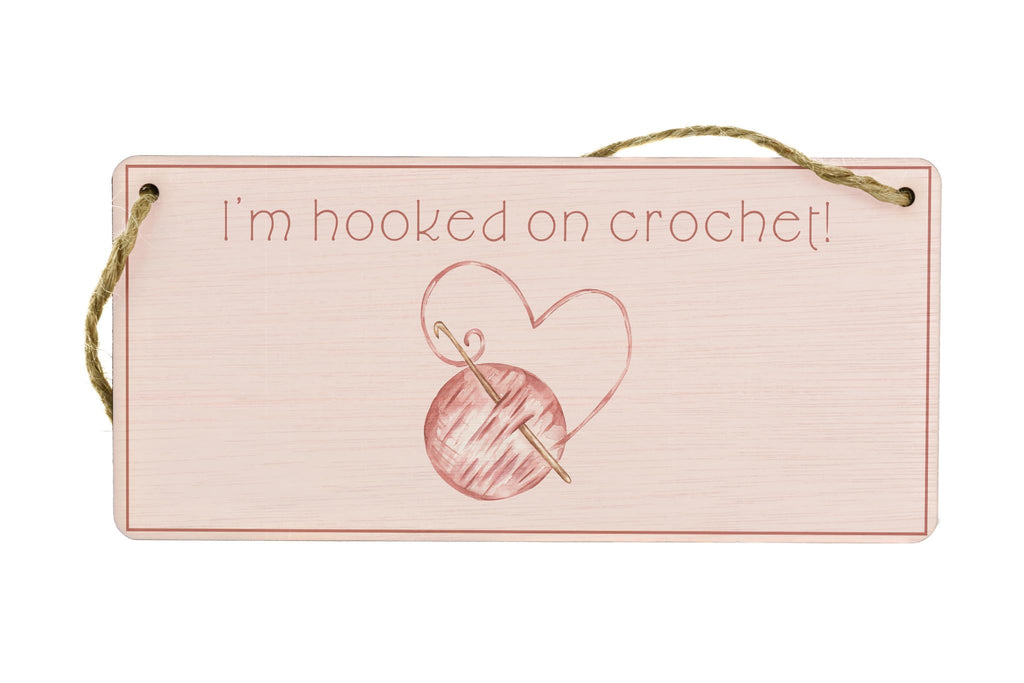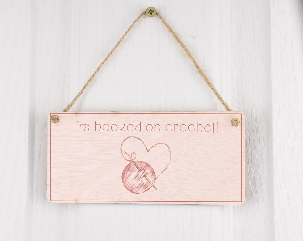 Add a touch of charm to your living space or craft room with this Plywood Hanging Sign. Designed especially for crochet lovers, this sign is the perfect gift for your mum or grandmother who enjoys the craft. The sign features a full colour design that reads 'I'm Hooked on Crochet' along with an image of a ball of wool, showcasing your love for the craft. Made from quality plywood, this sign is durable and long-lasting. Hang it in your living room, bedroom, or craft room to make a statement and add a personal touch to your home decor. Prioritise your love for crochet with this perfect craft gift!
