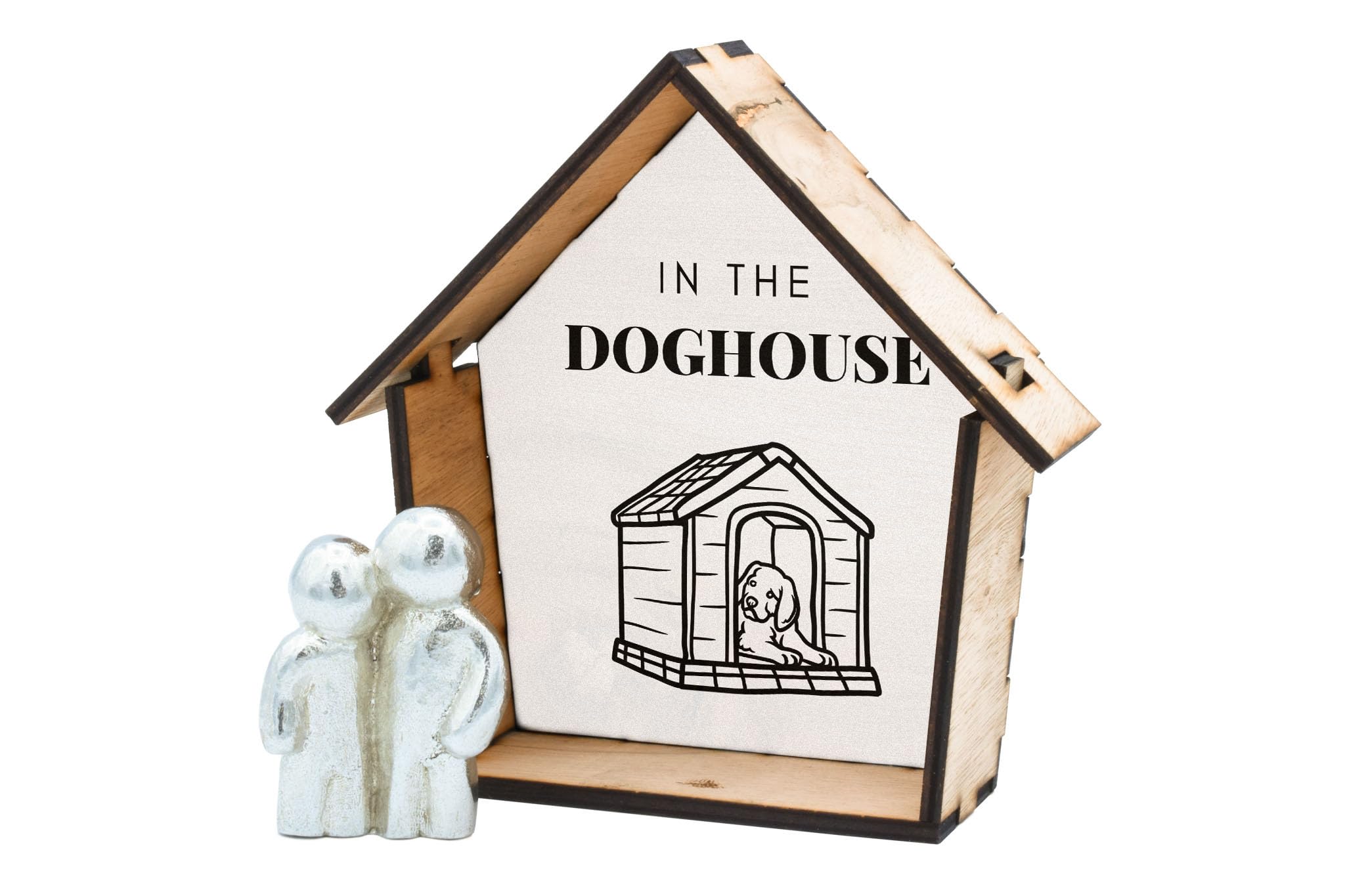 - Charming wooden ornament that reads 'In the Doghouse' brings humour and warmth to your home decor