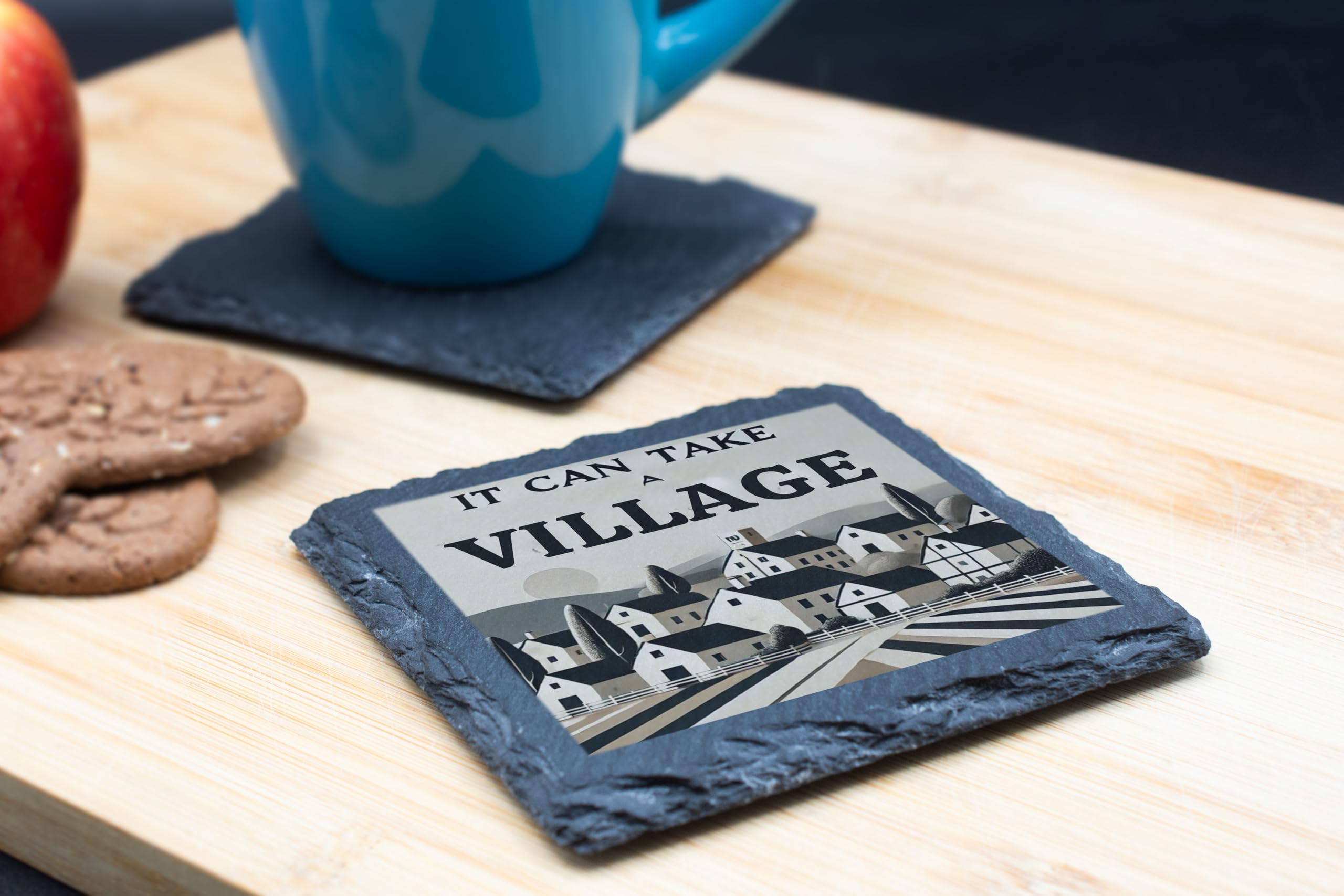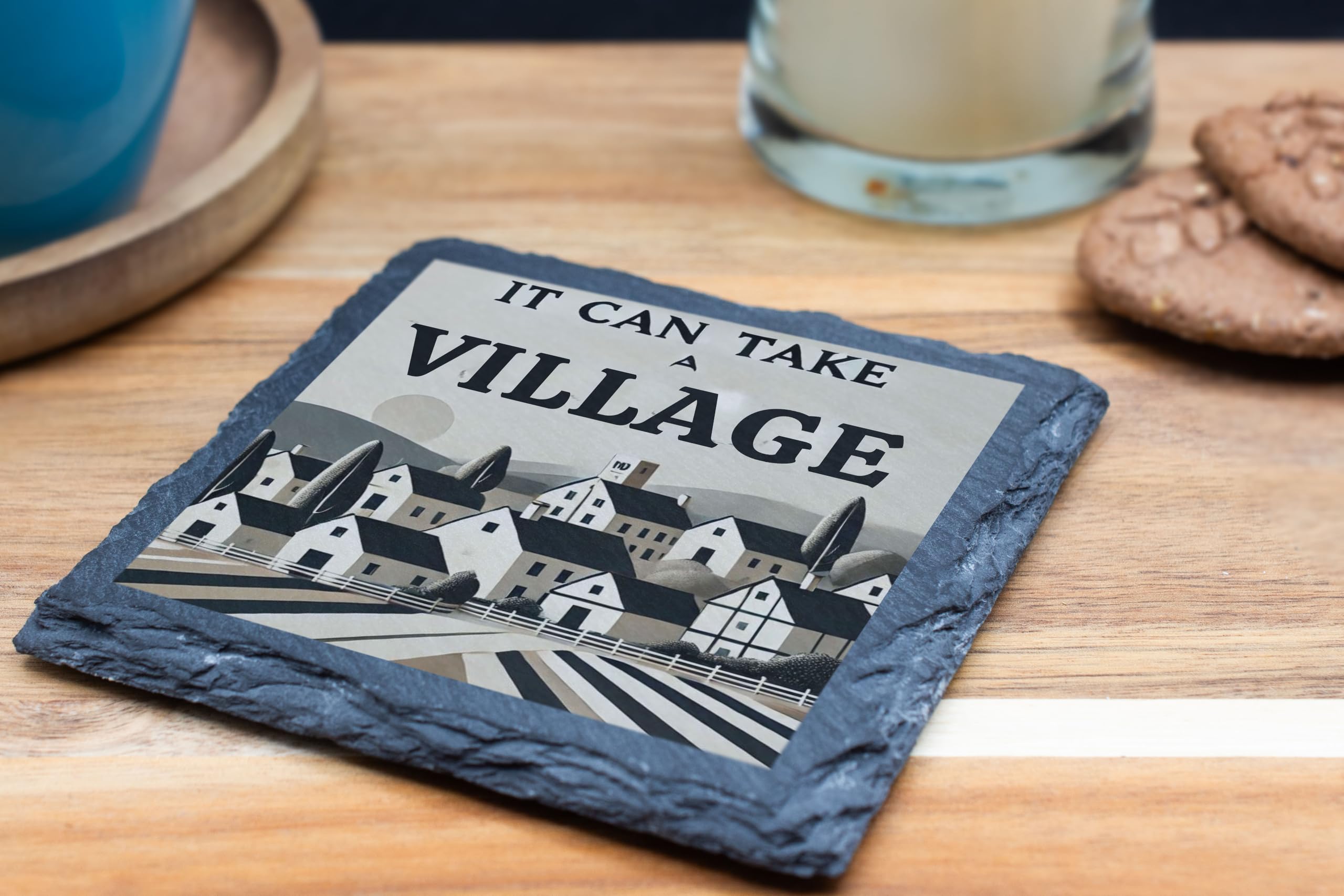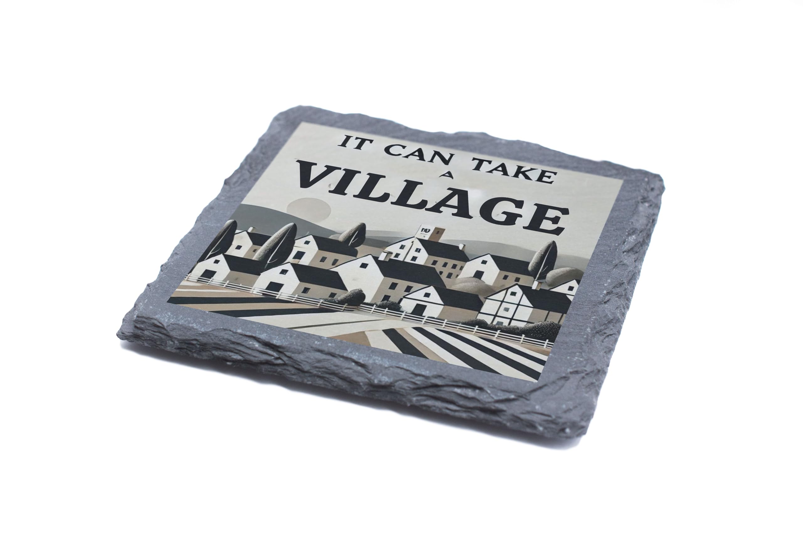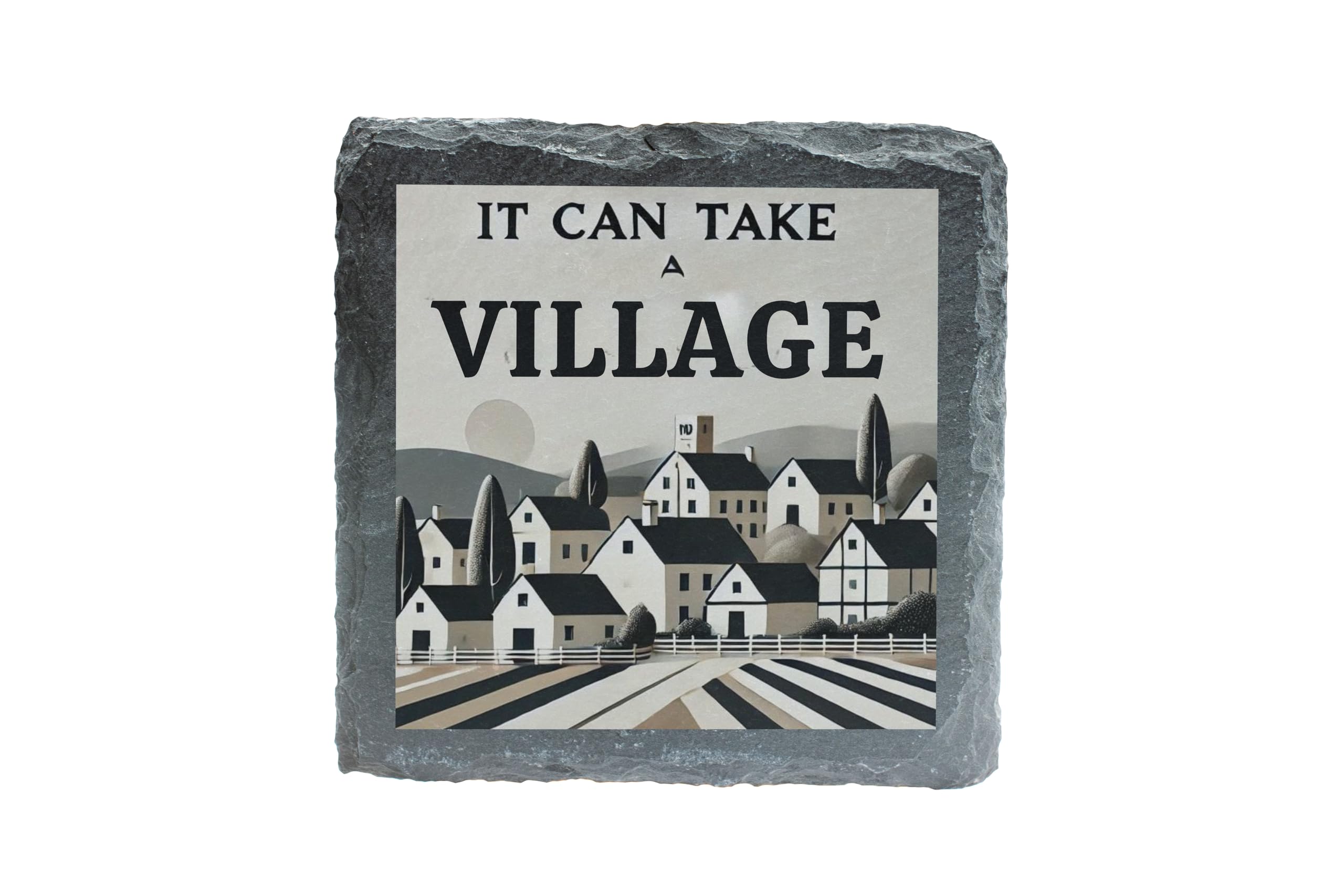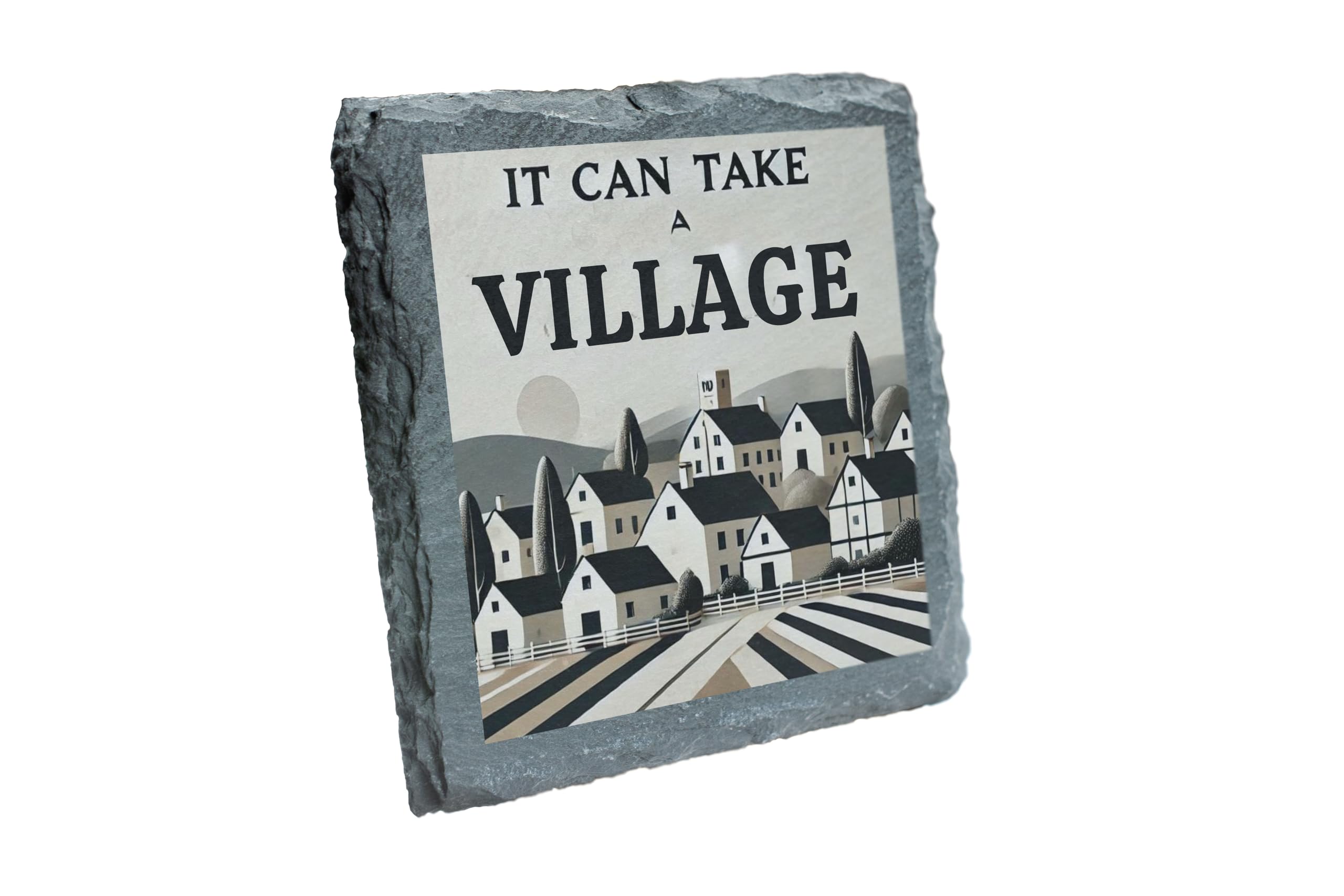 Celebrate the beauty of togetherness with the "It Can Take a Village" Slate Coaster. Featuring a peaceful village landscape and a message of community, this coaster adds a touch of rustic charm to any space. Made from durable, natural slate, it not only protects surfaces but also serves as a decorative accent for your home. Perfect for family occasions, thoughtful gifts, or everyday use, this coaster is a reminder of the power of unity and support in every gathering.