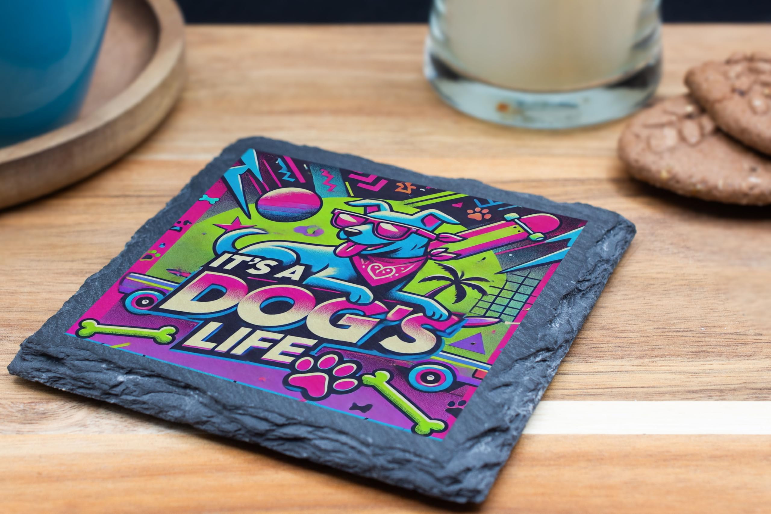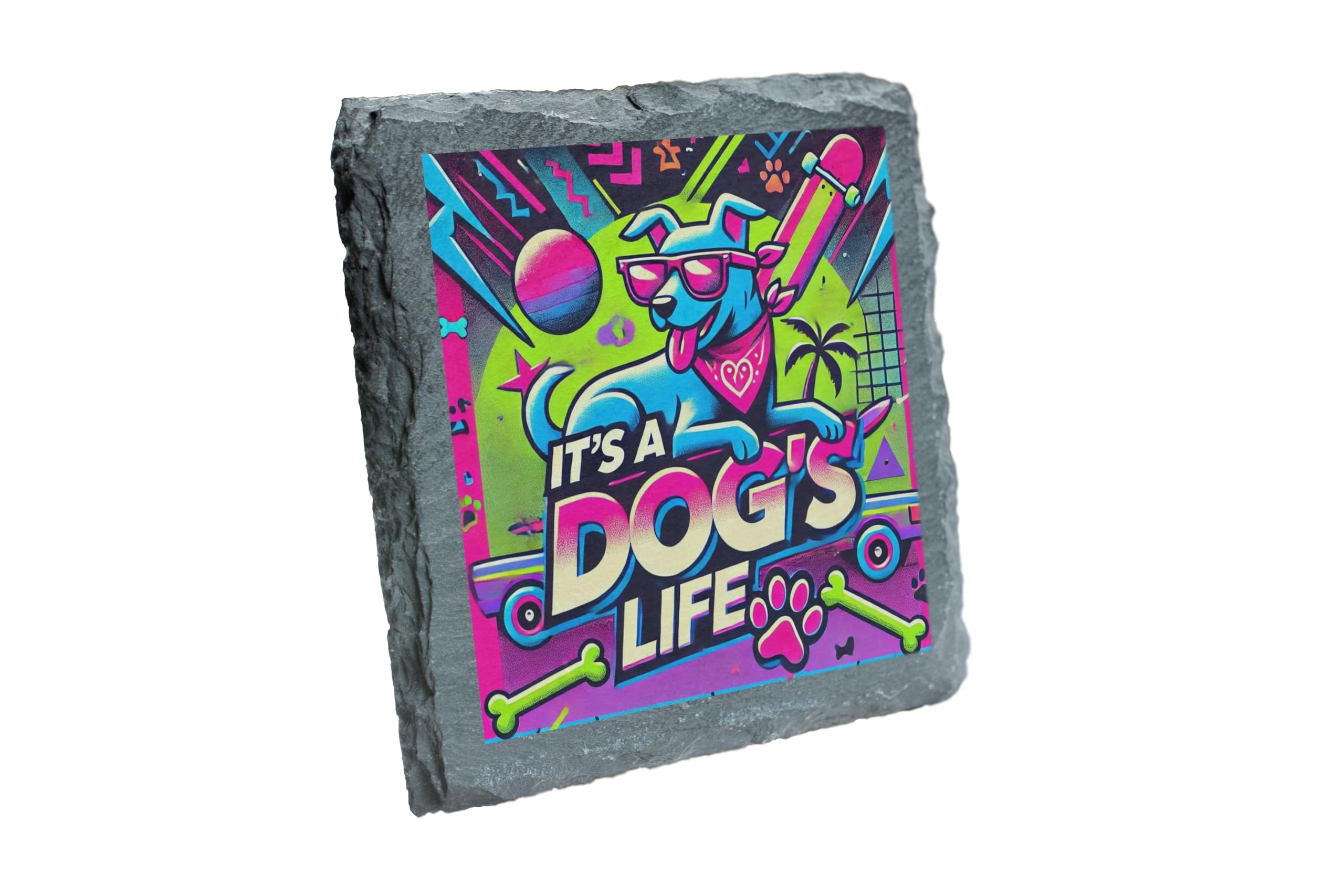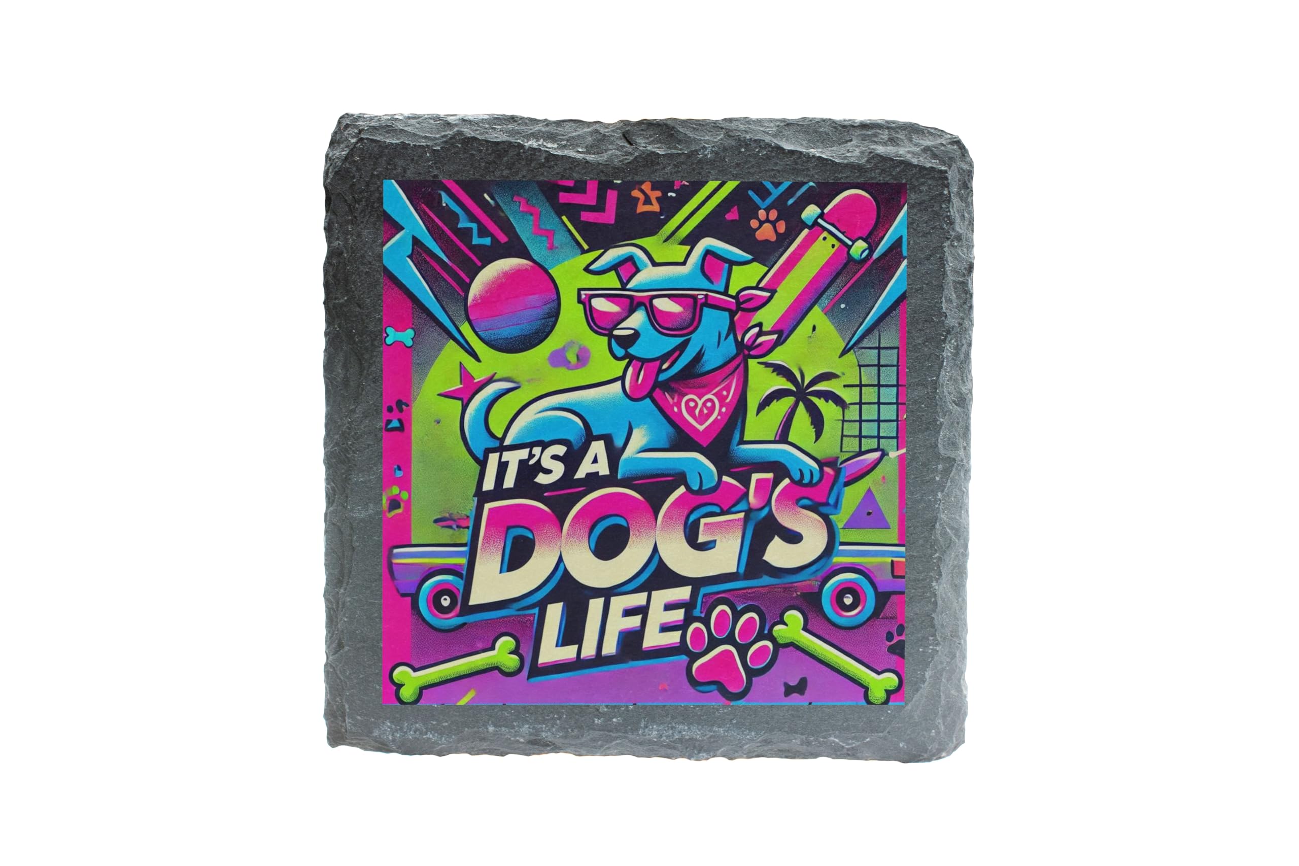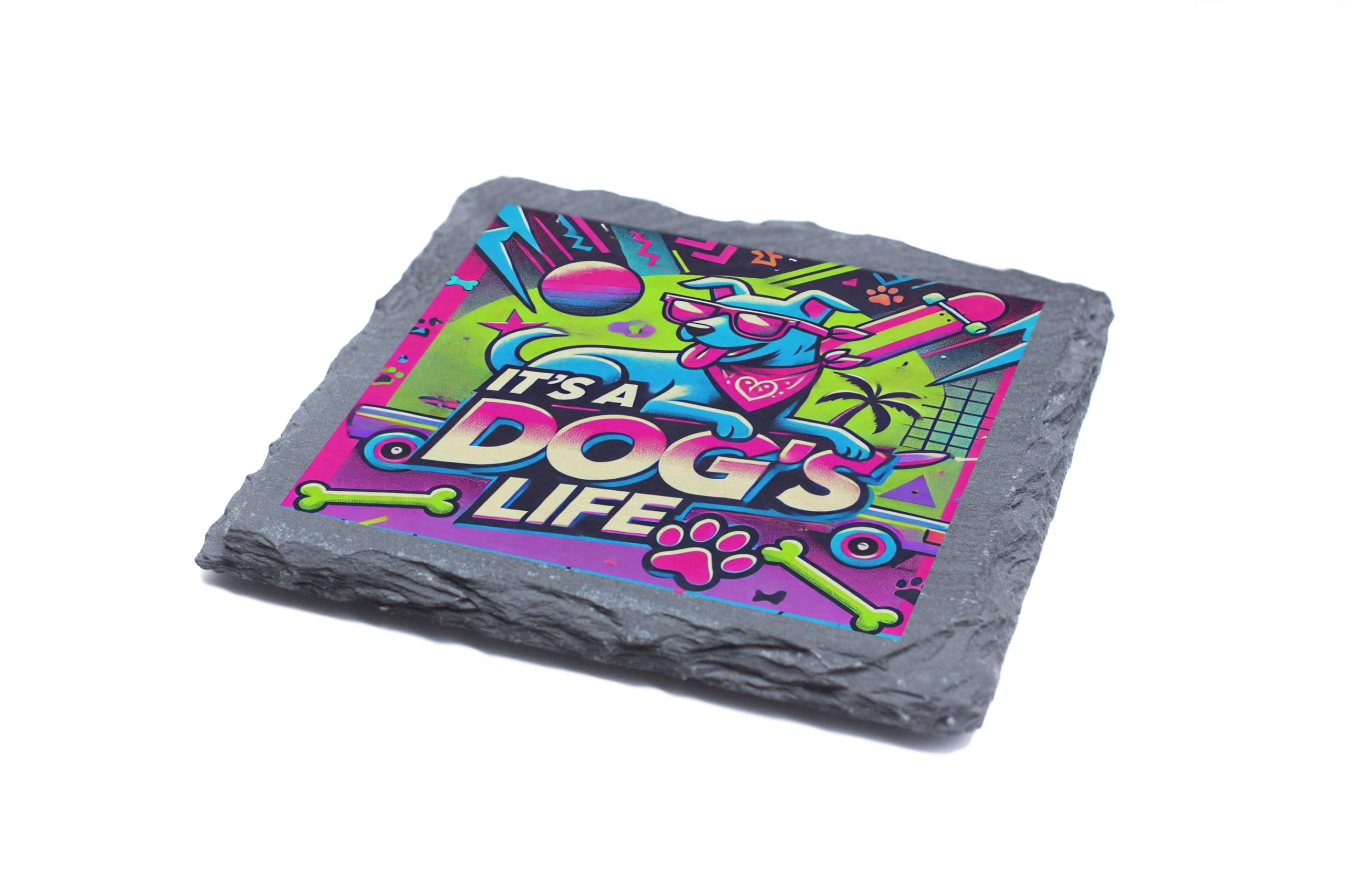 Unleash the fun with this vibrant "It's a Dog's Life" slate coaster! Featuring a playful and colorful design, this coaster celebrates the joy and energy of our furry friends. Whether you're a dog lover yourself or looking for the perfect gift for a friend, this coaster is a paw-sitive addition to any space. Crafted from durable natural slate with a cork backing, it combines style with practicality. Use it to protect your surfaces while showing off your love for dogs in a bold and colorful way!