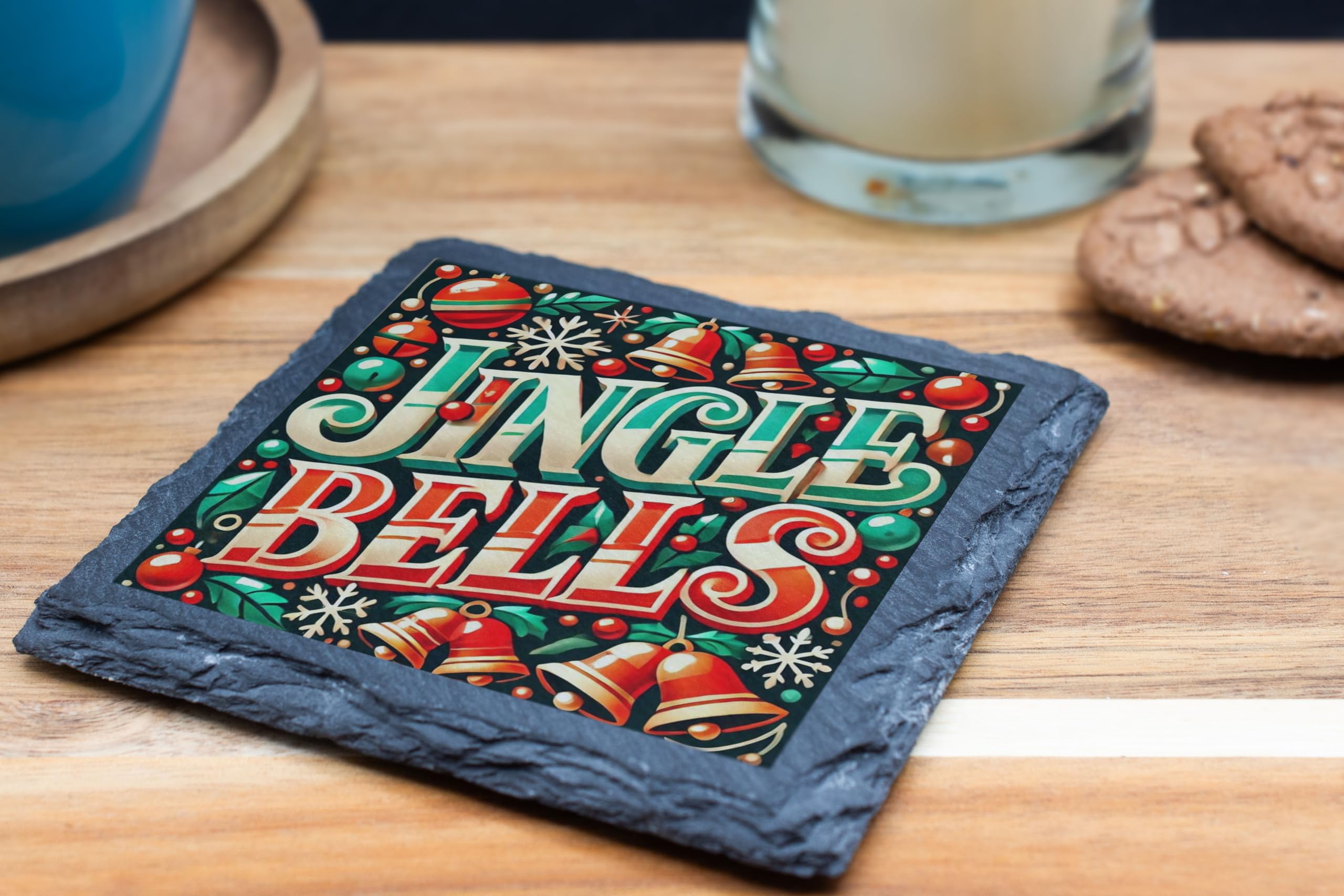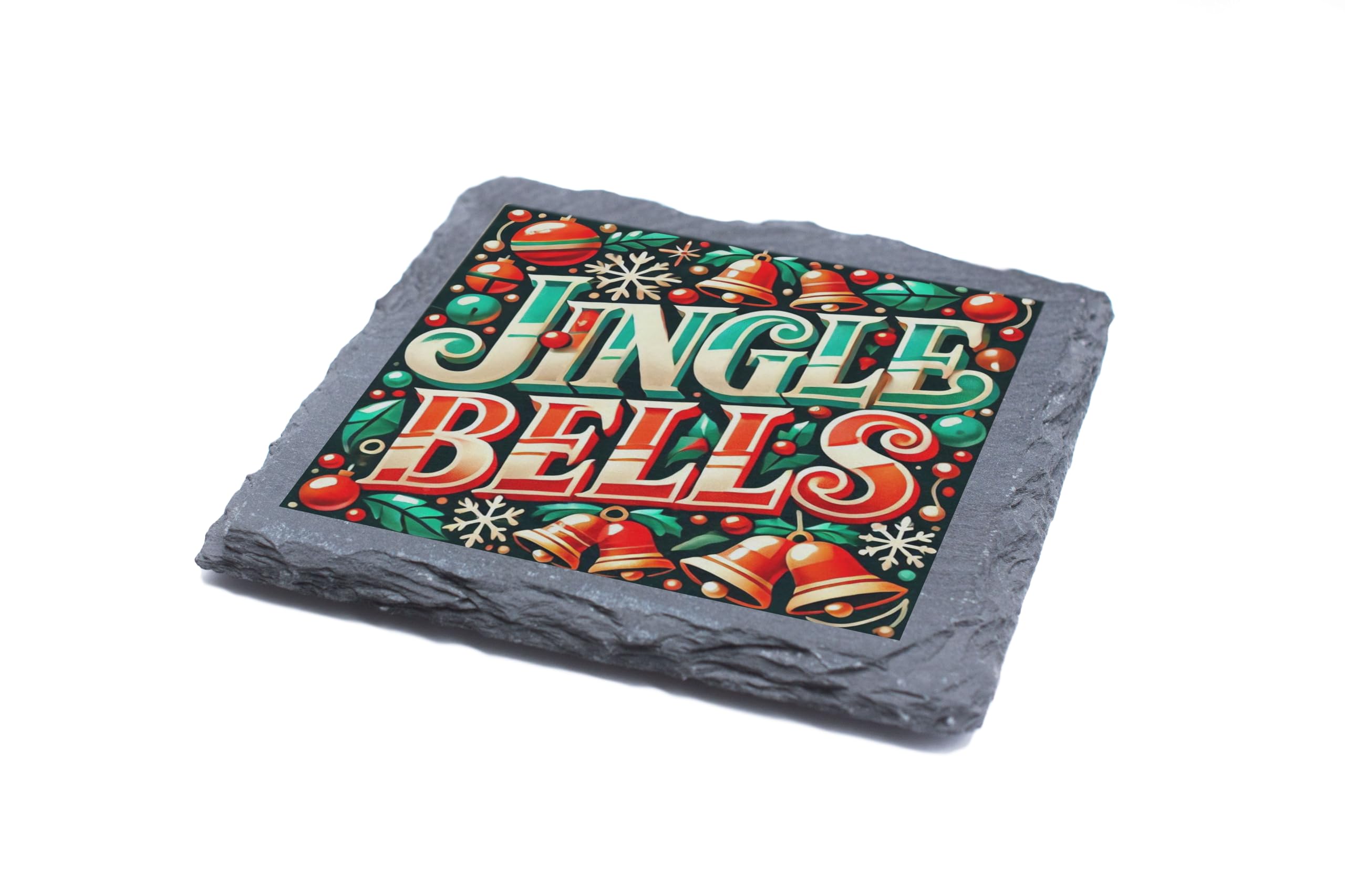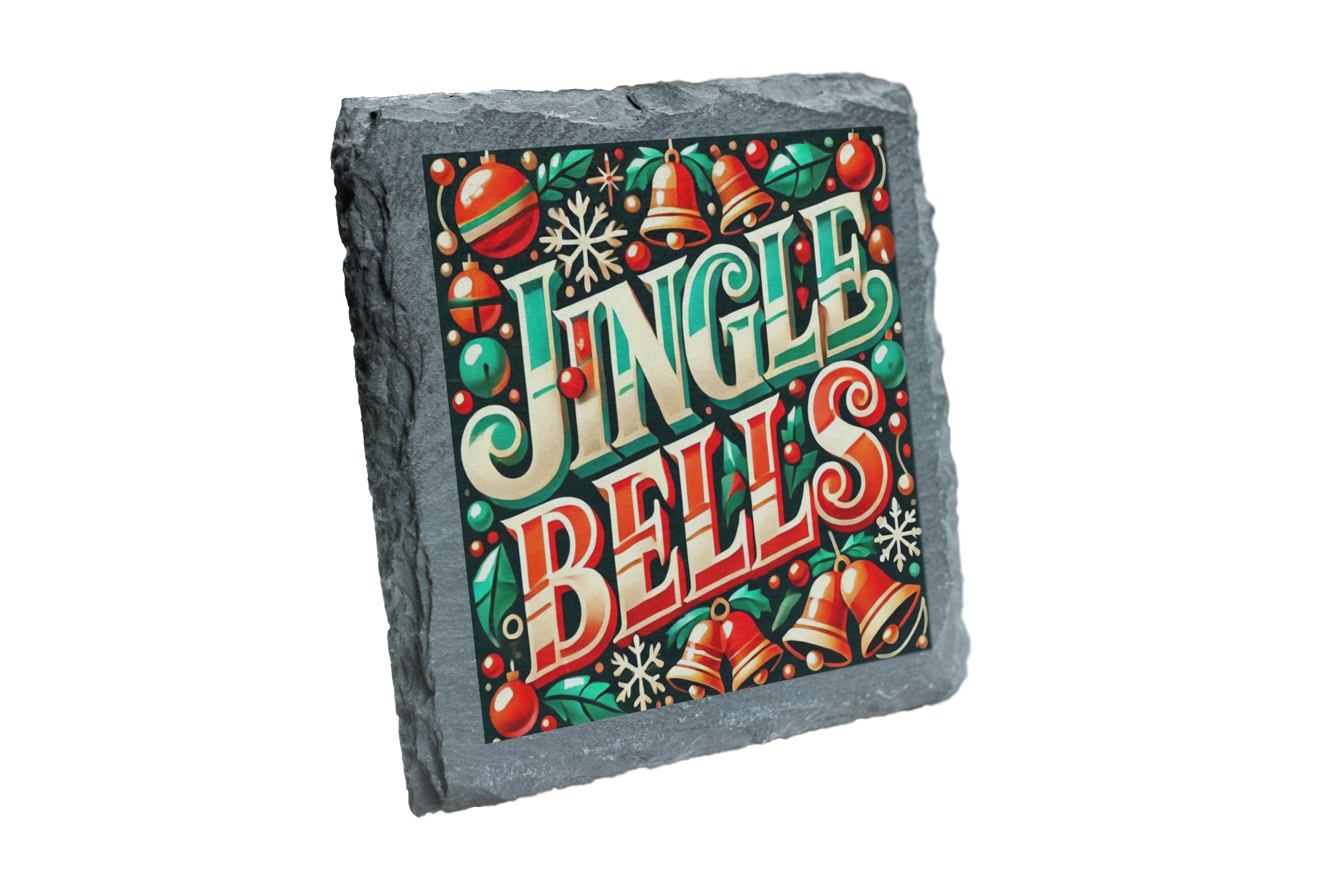 Celebrate the holiday season with this charming "Jingle Bells" slate coaster. The vibrant design captures the joy and magic of Christmas with its festive ornaments and bold lettering. Perfect for protecting your tables during holiday feasts and gatherings, this coaster also doubles as a delightful piece of decor. Crafted from high-quality natural slate, it offers durability and a touch of rustic charm. Whether you're hosting a Christmas party, looking for a unique gift, or simply want to add some holiday flair to your home, this coaster is the perfect choice. Spread cheer and protect your surfaces in style!