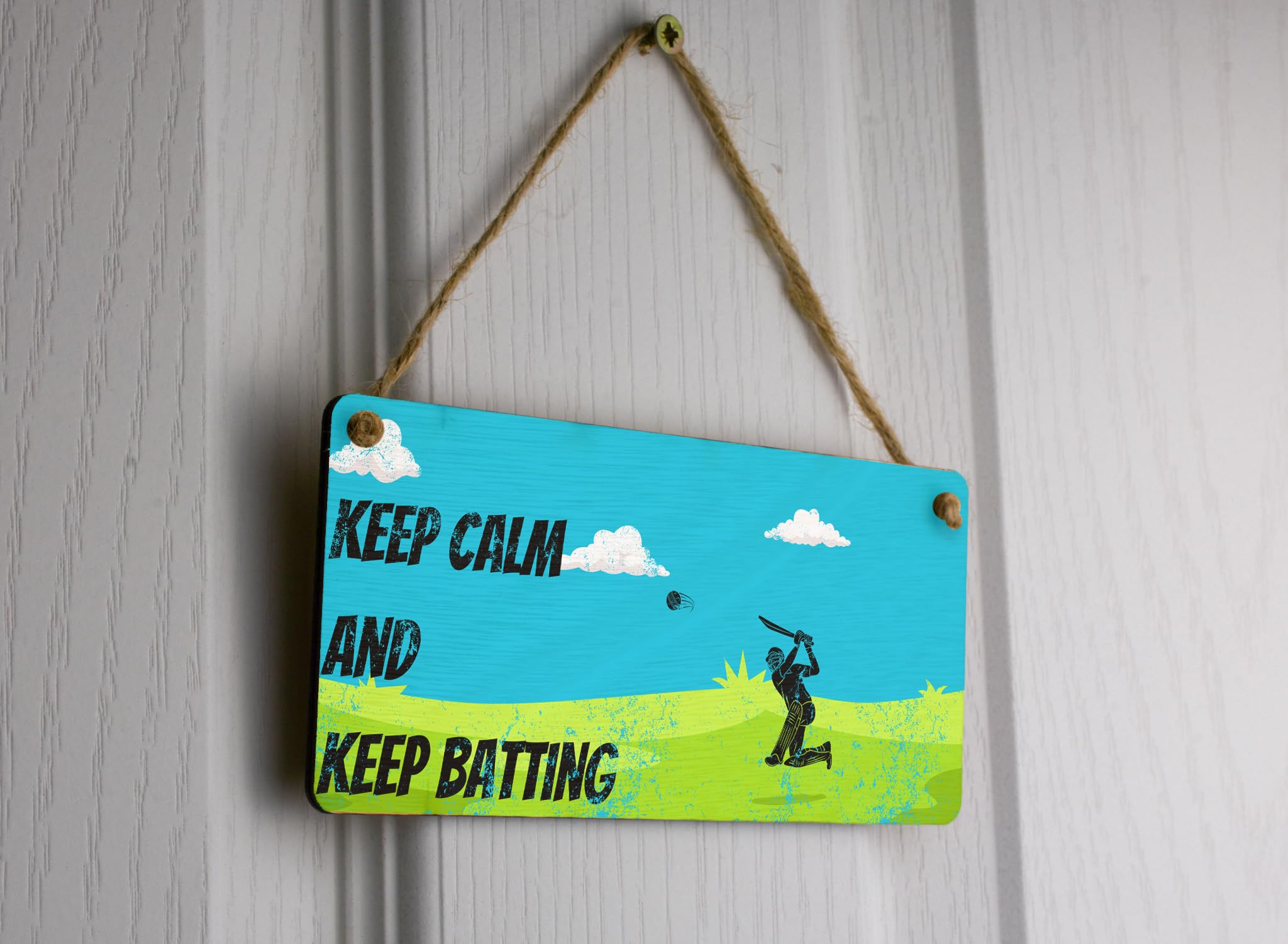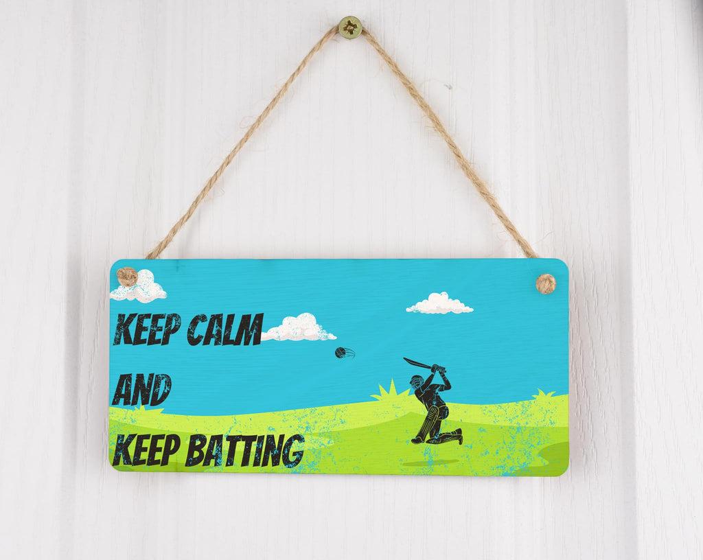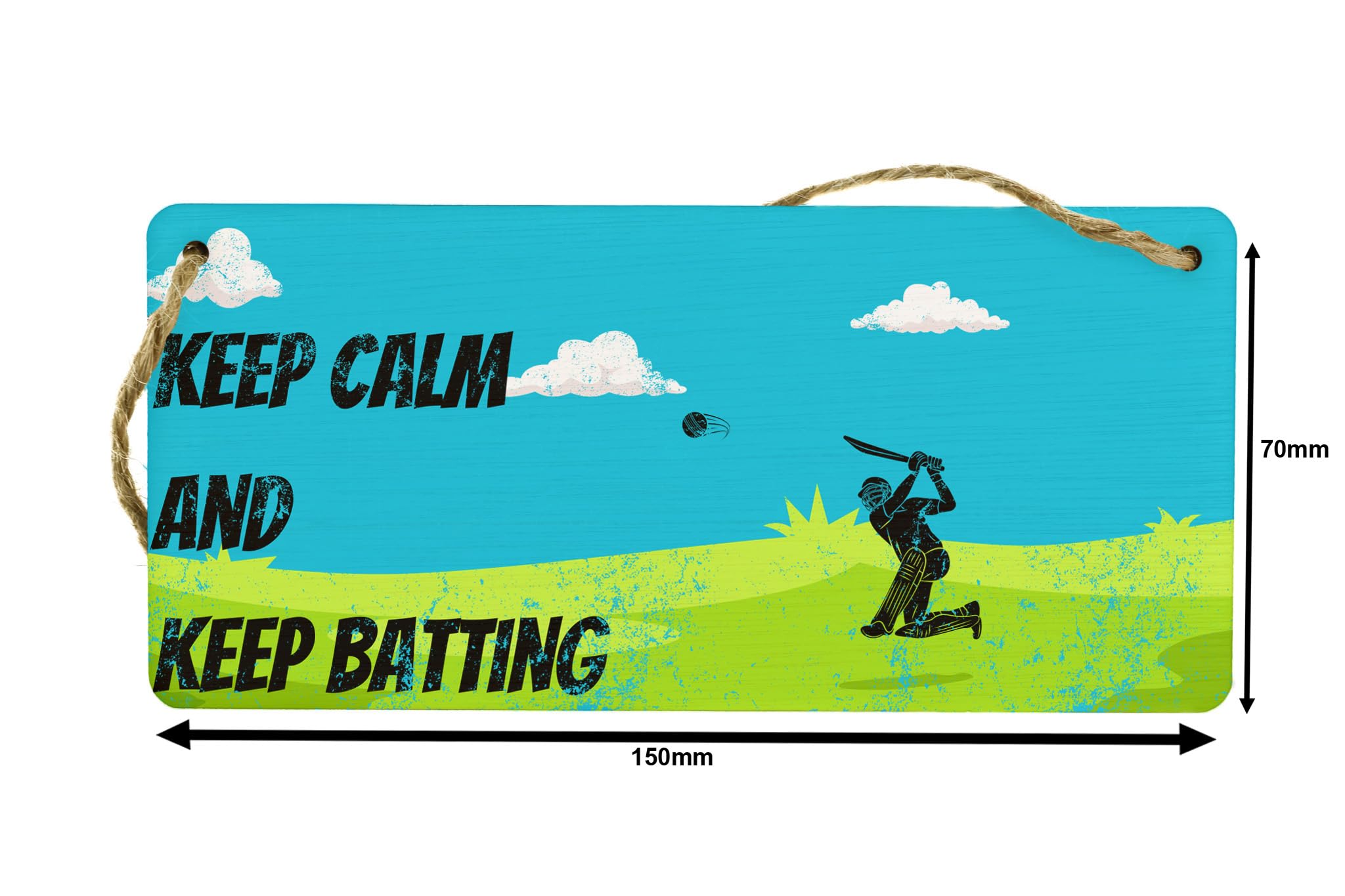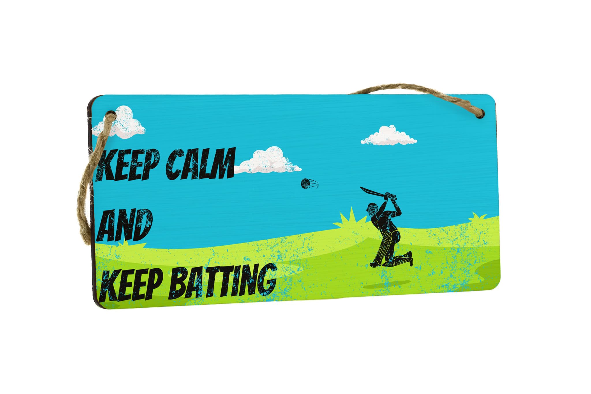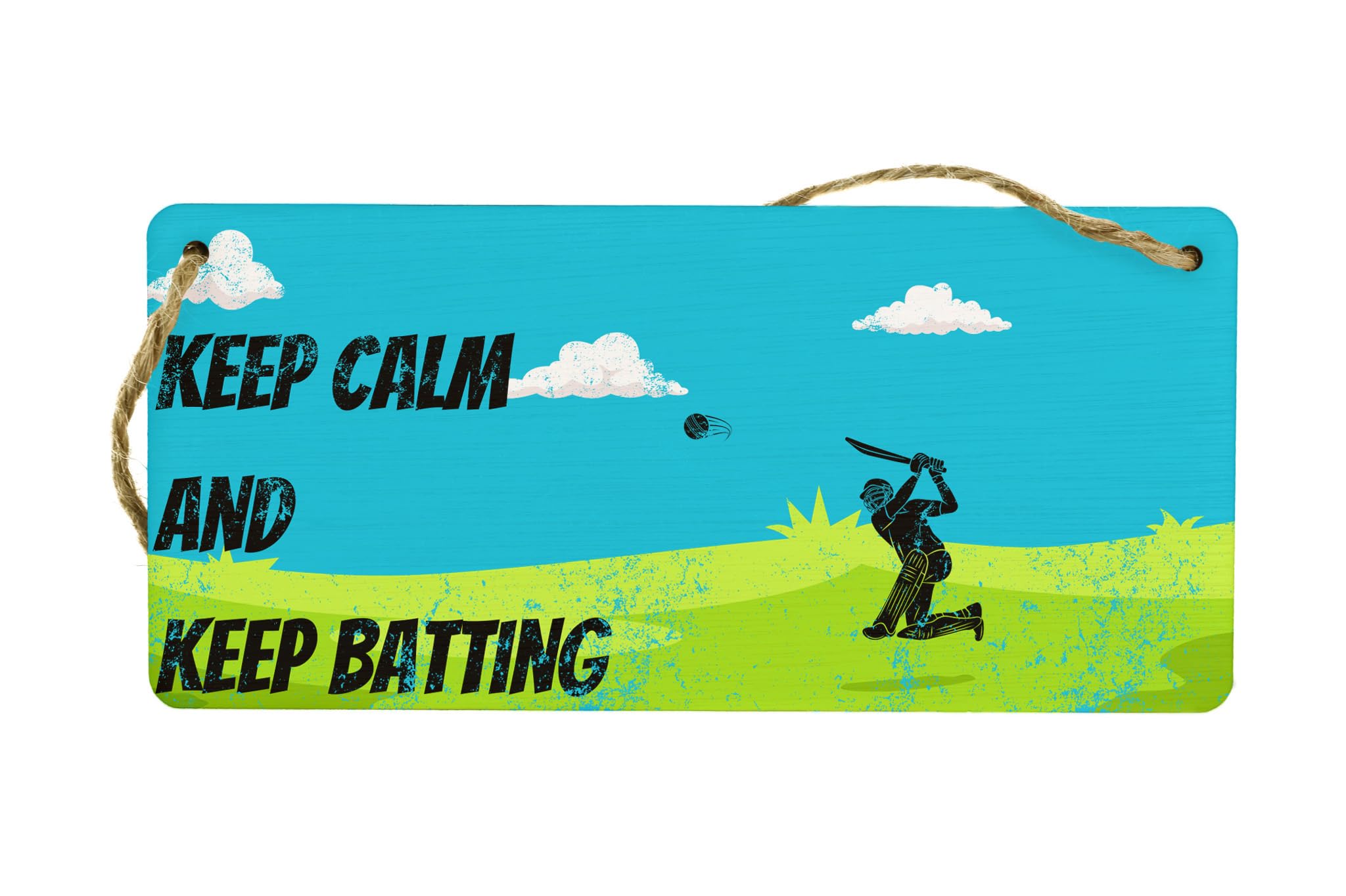 Add a stylish and cricket-themed touch to your little boy's room with this Keep Calm and Keep Batting Cricket Plywood Hanging Sign. Made from durable plywood, this vibrant and full-colour hanging sign is the perfect addition to any cricket lover's home decor. With its eye-catching design featuring the phrase 'Keep Calm and Keep Batting', this wall sign will inspire your child to stay focused on their cricket goals. Hang it on the wall or door of your boy's room for a cool and sporty touch. The cricket theme of this sign makes it a great gift for young cricket enthusiasts or a fantastic addition to any sports-themed room decor. Don't miss out on this unique and captivating cricket hanging sign!