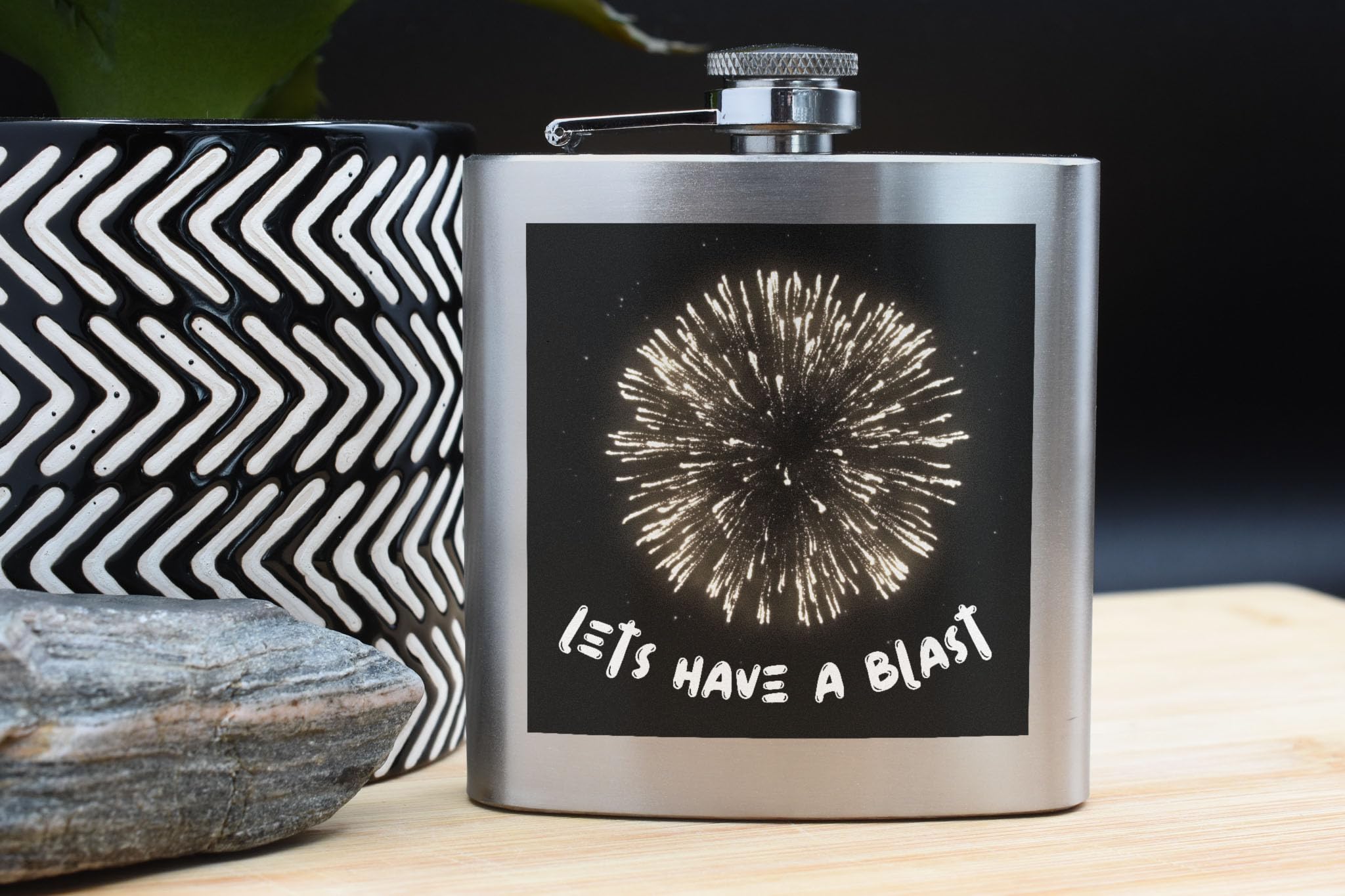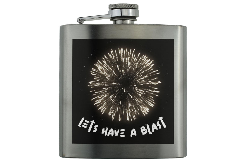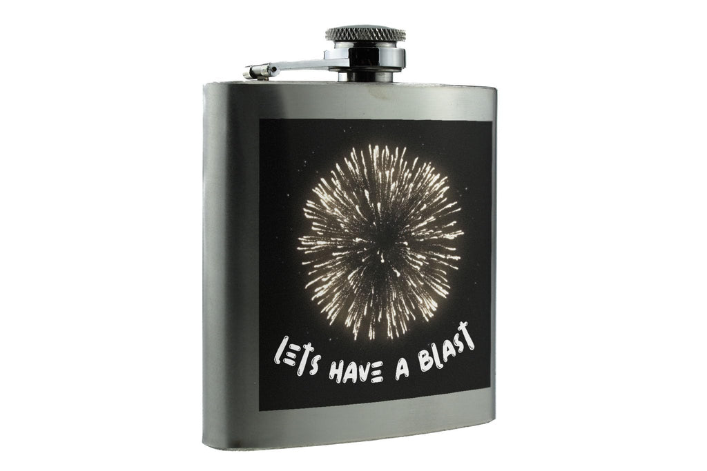 Get ready to let the sparks fly with our Let's Have a Blast Fireworks Celebration Flask! This party time flask is the perfect accessory for any festive occasion, whether you're celebrating New Year's Eve, a birthday, or just looking to add a touch of fun to your night out. Crafted from quality stainless steel, this explosion of fun flask features a vibrant night sky design that will have you toasting to good times all night long. The full colour printed flask showcases a fireworks inspired design, adding a touch of sparkling fun to your drinkware collection. With its bold 'let's have a blast' message, this black and white flask is a must-have party favor for anyone looking to add a bit of flair to their celebrations. So grab your drink, raise a glass, and get ready to have a blast with our Let's Have a Blast Fireworks Celebration Flask!