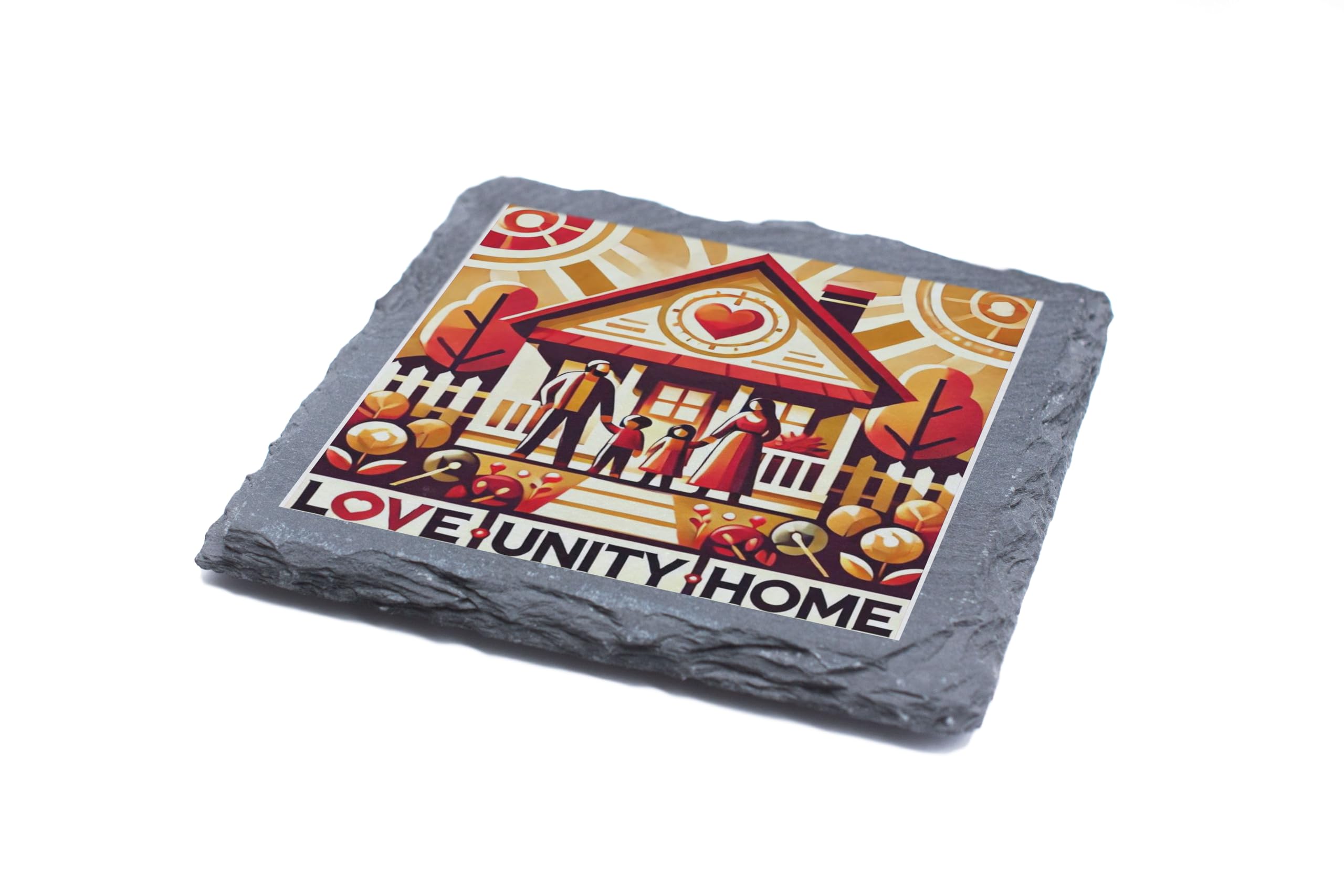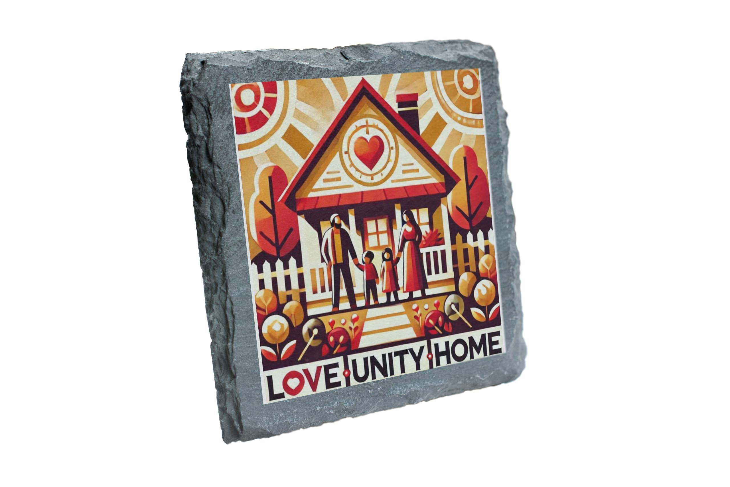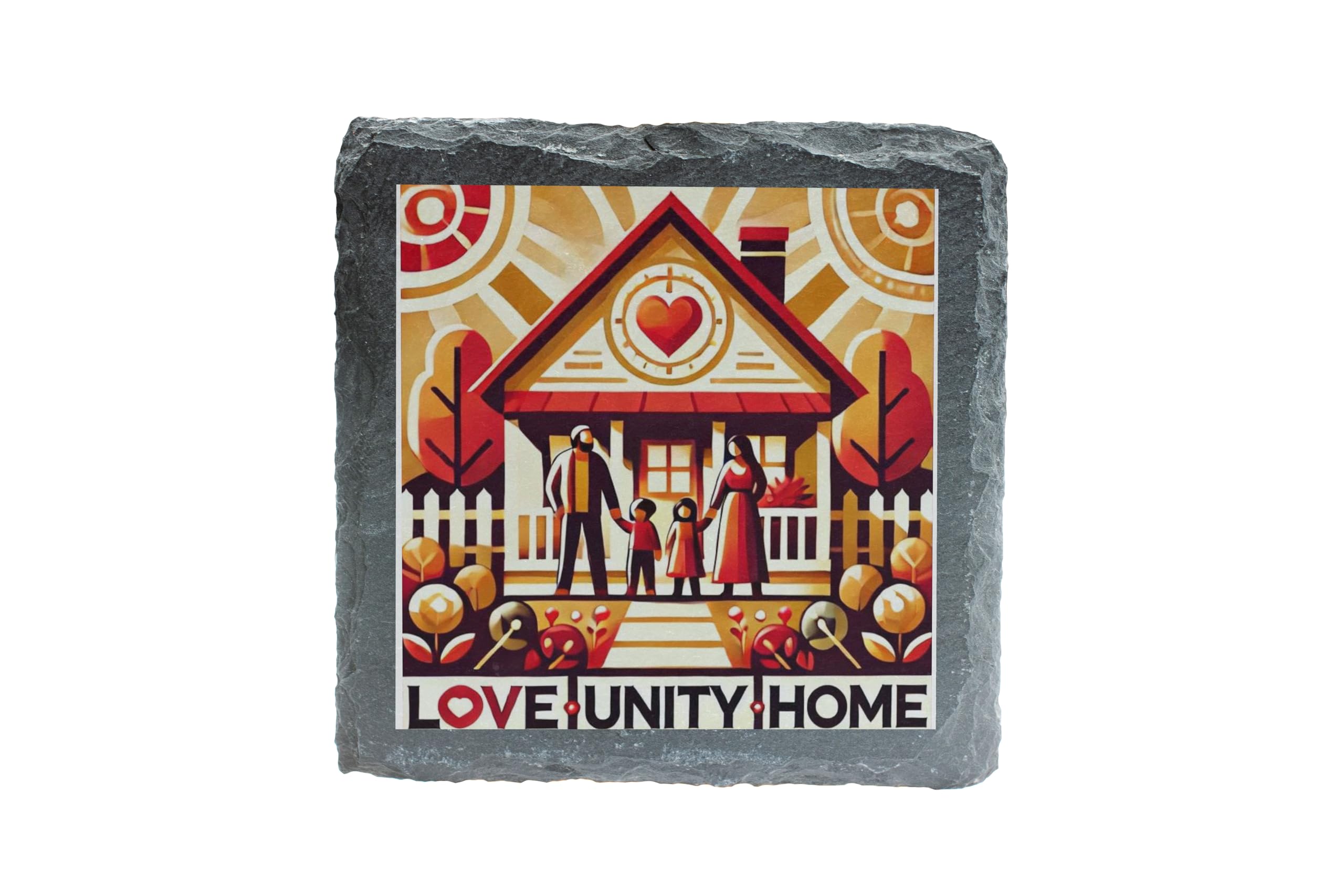 Love, Unity, Home Slate Coaster ? Warm Family Design for Housewarming & Gift Giving (slco-ds24-unityrg)