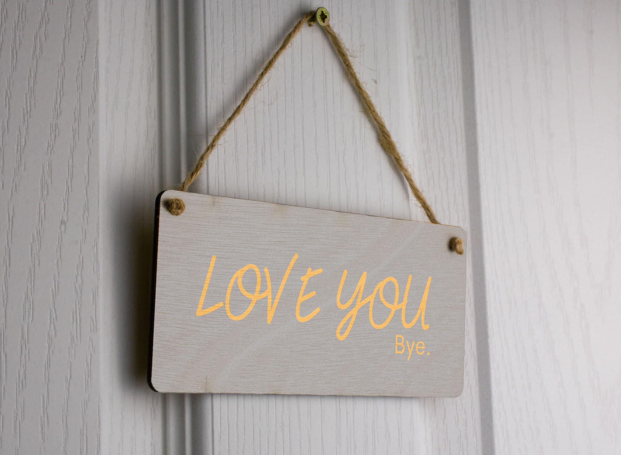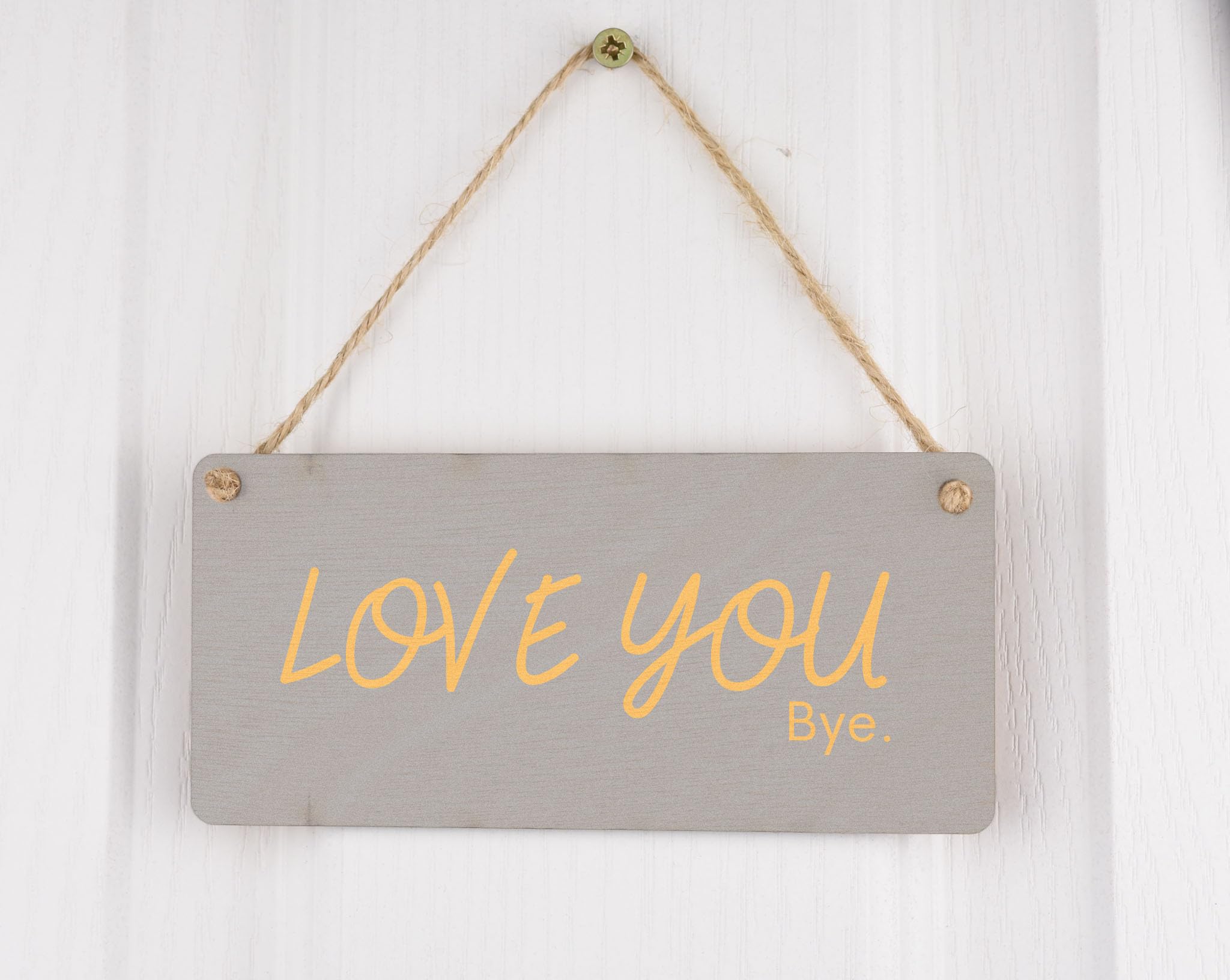 Love You Bye - Plywood Hanging Sign - Novelty Funny Romantic Sign for Couples (smlsgn-ds23-loveyoubye)