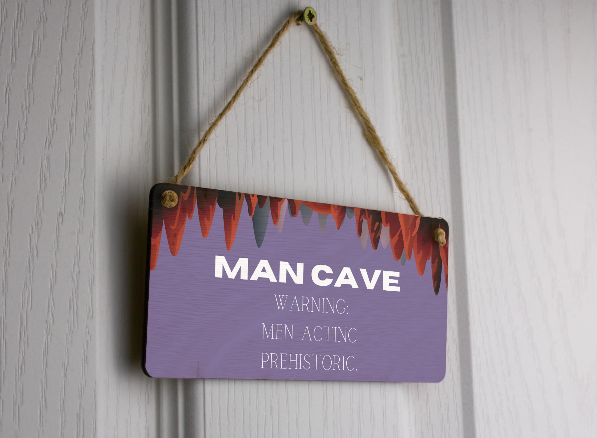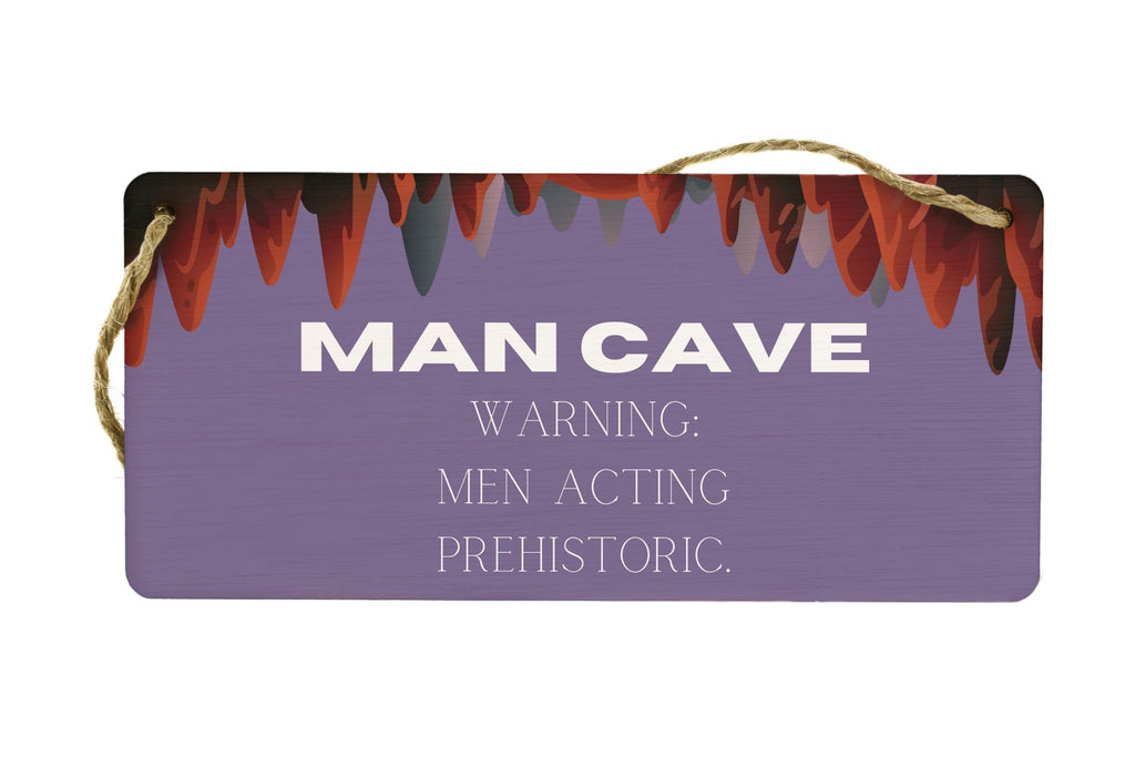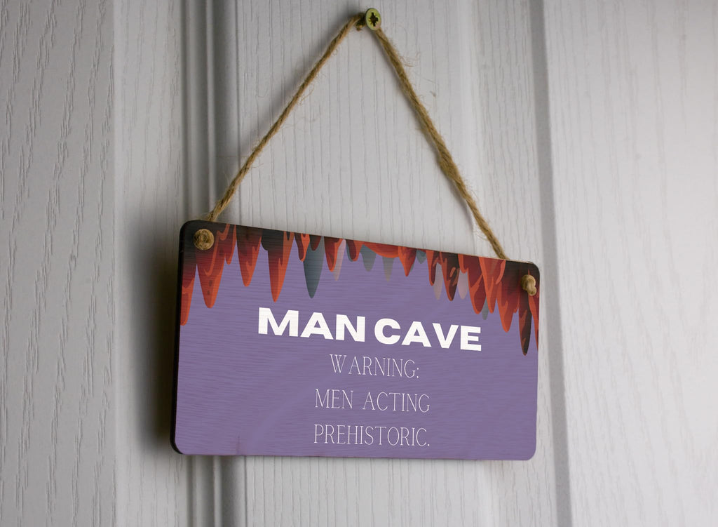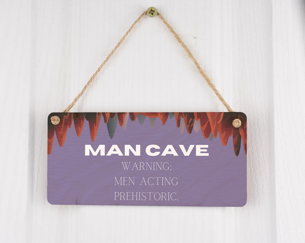Add some humor to your man cave with this Plywood Hanging Sign. With its full colour design and witty message, it makes a perfect novelty gift for your husband, boyfriend, dad, or grandad. This sign will not only provide a touch of home decor but also serve as a warning to others entering the man cave. The sign reads 'Men Acting Prehistoric', giving a fun twist to the environment. Crafted from quality plywood, this sign is durable and can easily be hung on the wall. Whether you want to prioritize a prehistoric theme or simply enjoy a good laugh, this sign is a fantastic addition to any man cave or home.