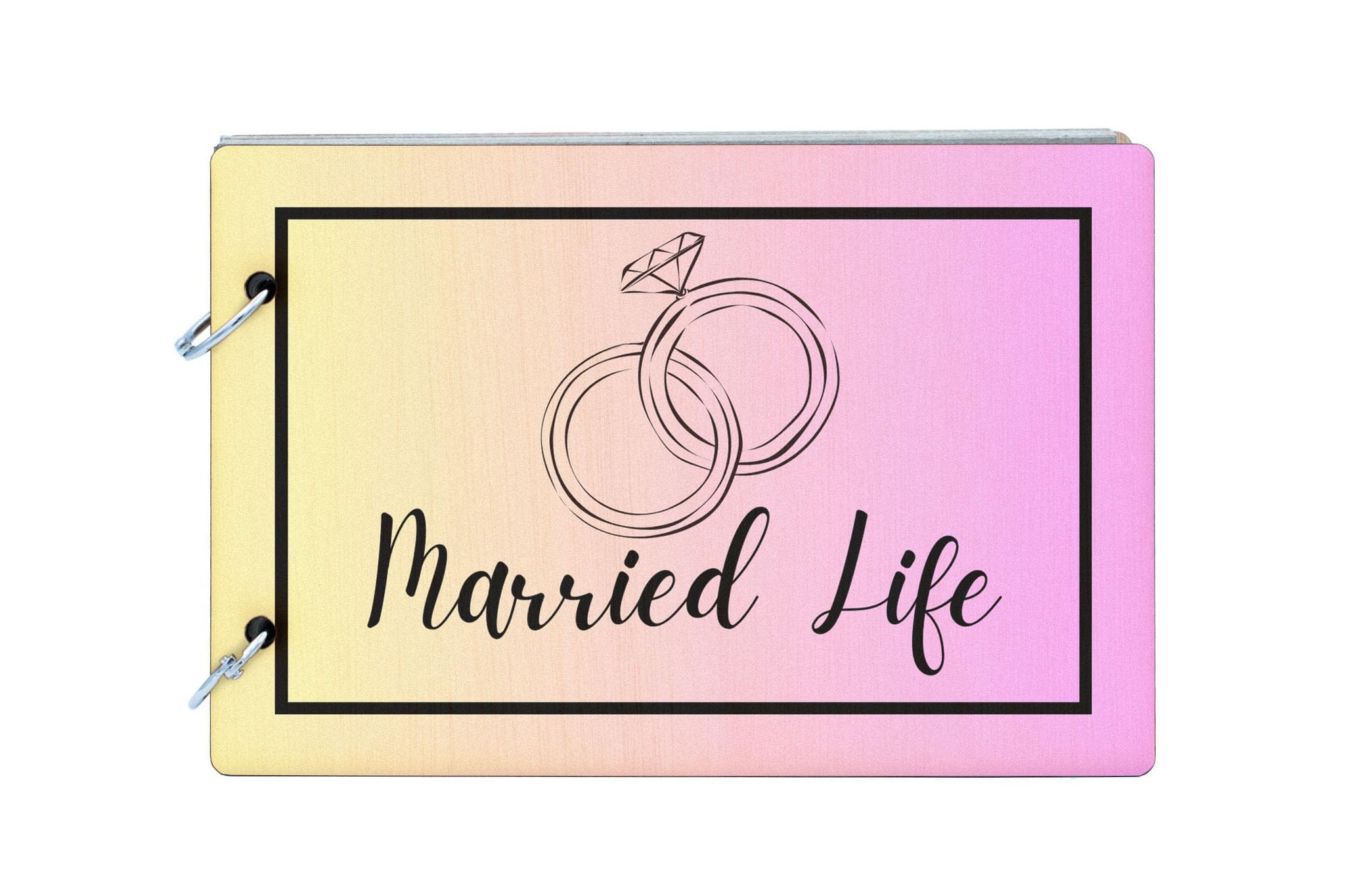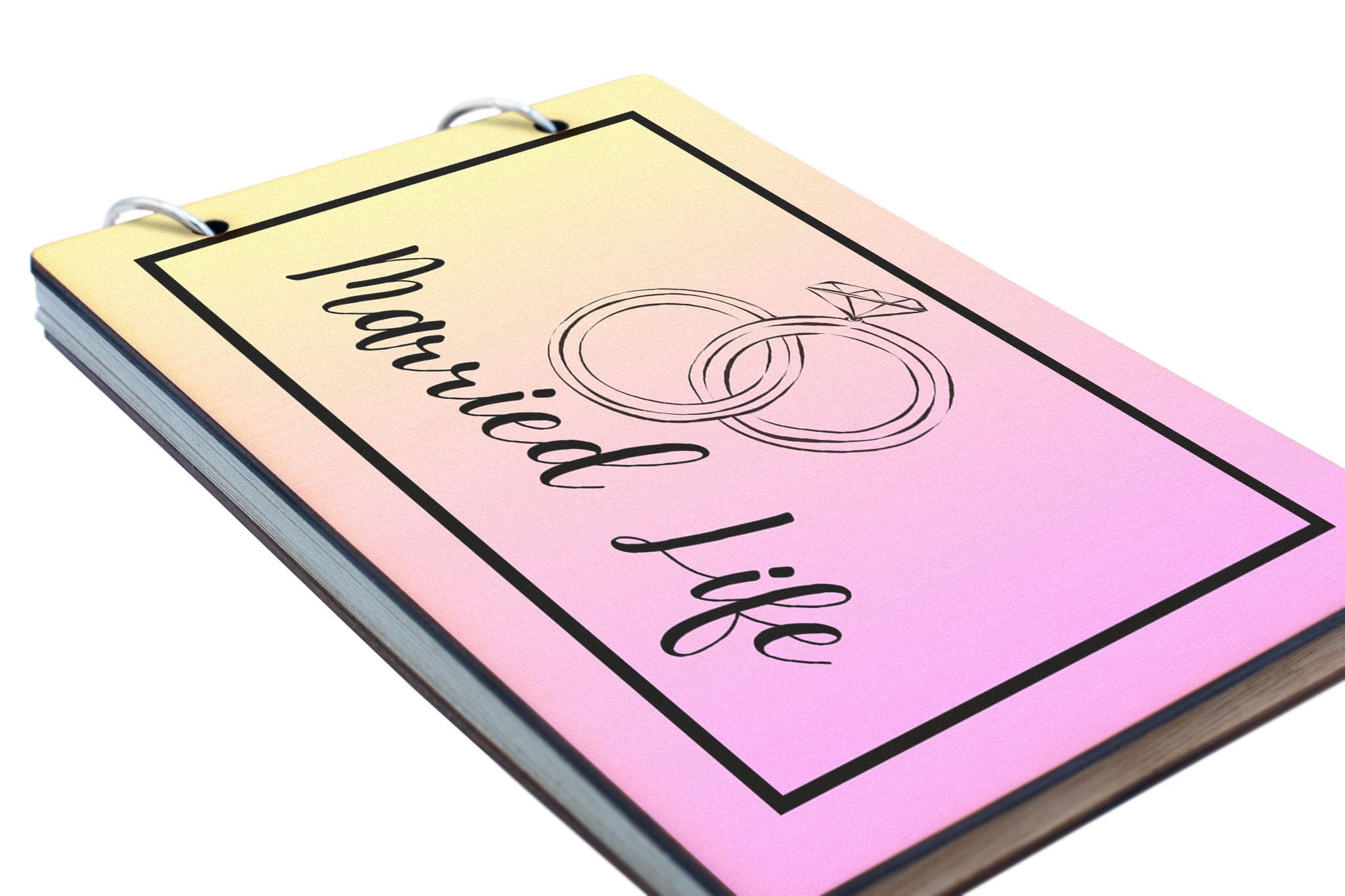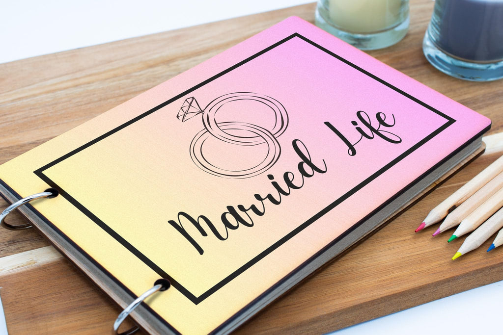 Capture and cherish all your cherished wedding memories with this stunning Marriage Keepsake: Romantic Moments - Wedding Day Album with Wooden Cover. This Newlywed Album is the perfect way to preserve your love story in a beautiful and timeless Bridal Scrapbook. From your Engagement Memories to your Wedding Planning to your Married Adventures, this Couples Scrapbook is the ideal place to document every moment of your journey together. Celebrate your Anniversary Memories with a Bridal Shower or Honeymoon Album filled with 25 recycled pages perfect for writing down your most treasured memories. The wooden cover adds a touch of elegance and reads 'married life', while the full colour front cover showcases a colourful gradient and simple black wedding themed design.