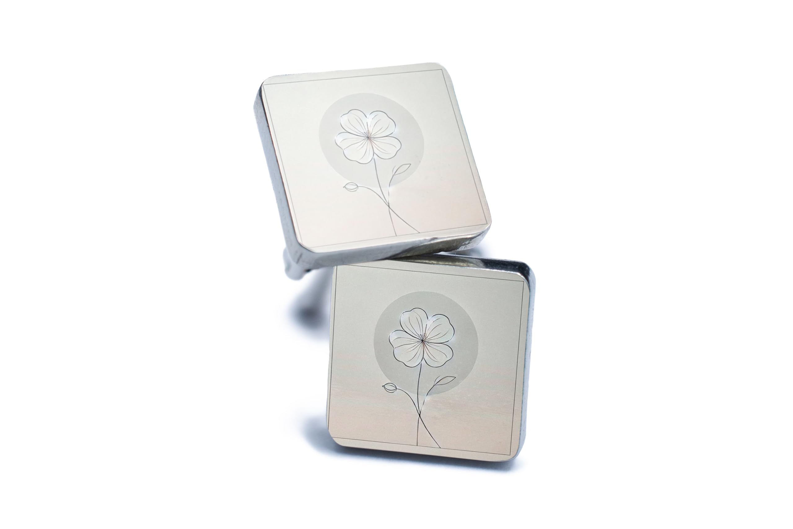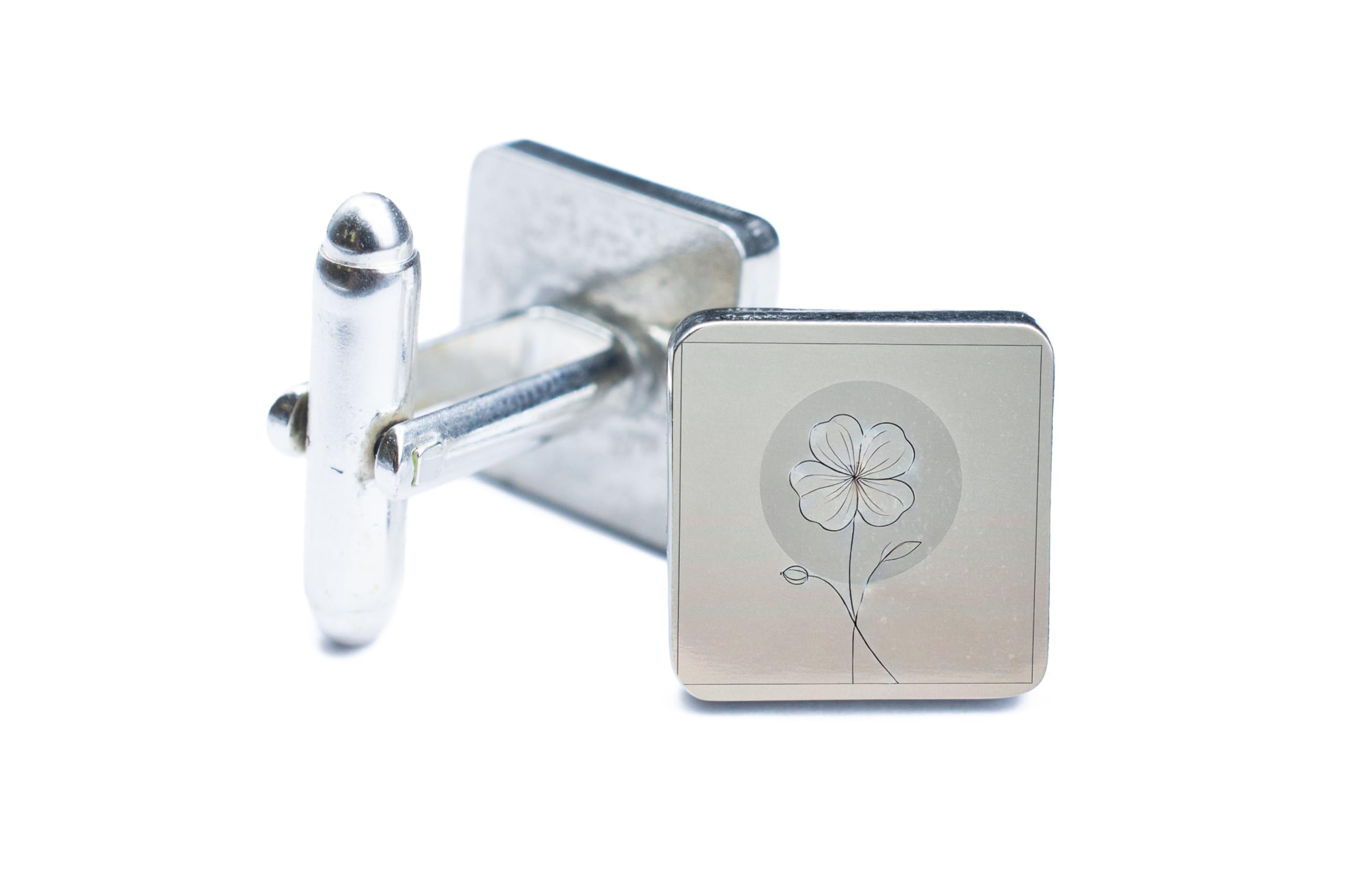 Add a touch of timeless elegance to your wardrobe with these minimalist floral cufflinks. Featuring a delicate flower design set against a clean and polished background, these cufflinks exude sophistication and grace, perfect for both formal and casual occasions. Crafted from high-quality materials and finished with a smooth enamel coating, these cufflinks combine durability with understated style. Whether you're dressing up for a wedding, a corporate event, or a casual outing, they add a refined and elegant touch to any outfit. These cufflinks make a thoughtful and versatile gift for anniversaries, birthdays, or weddings. The secure toggle closure ensures they stay in place, providing comfort and confidence for all-day wear. Celebrate simplicity and elegance with these beautifully designed cufflinks.