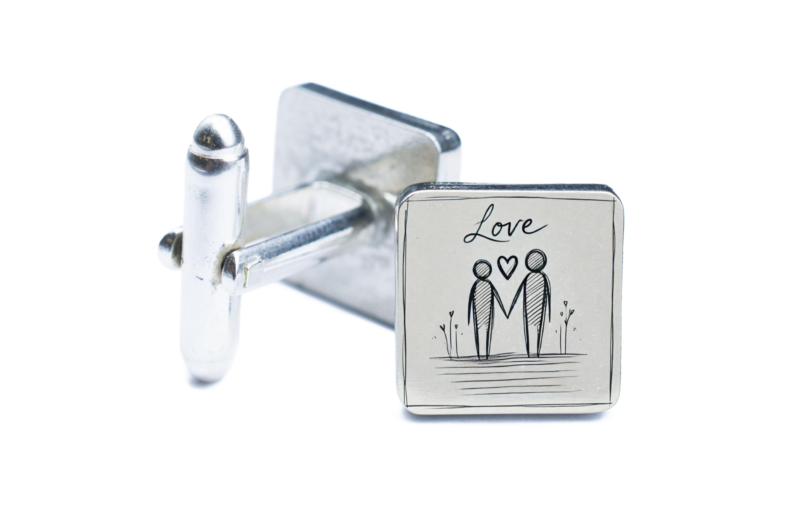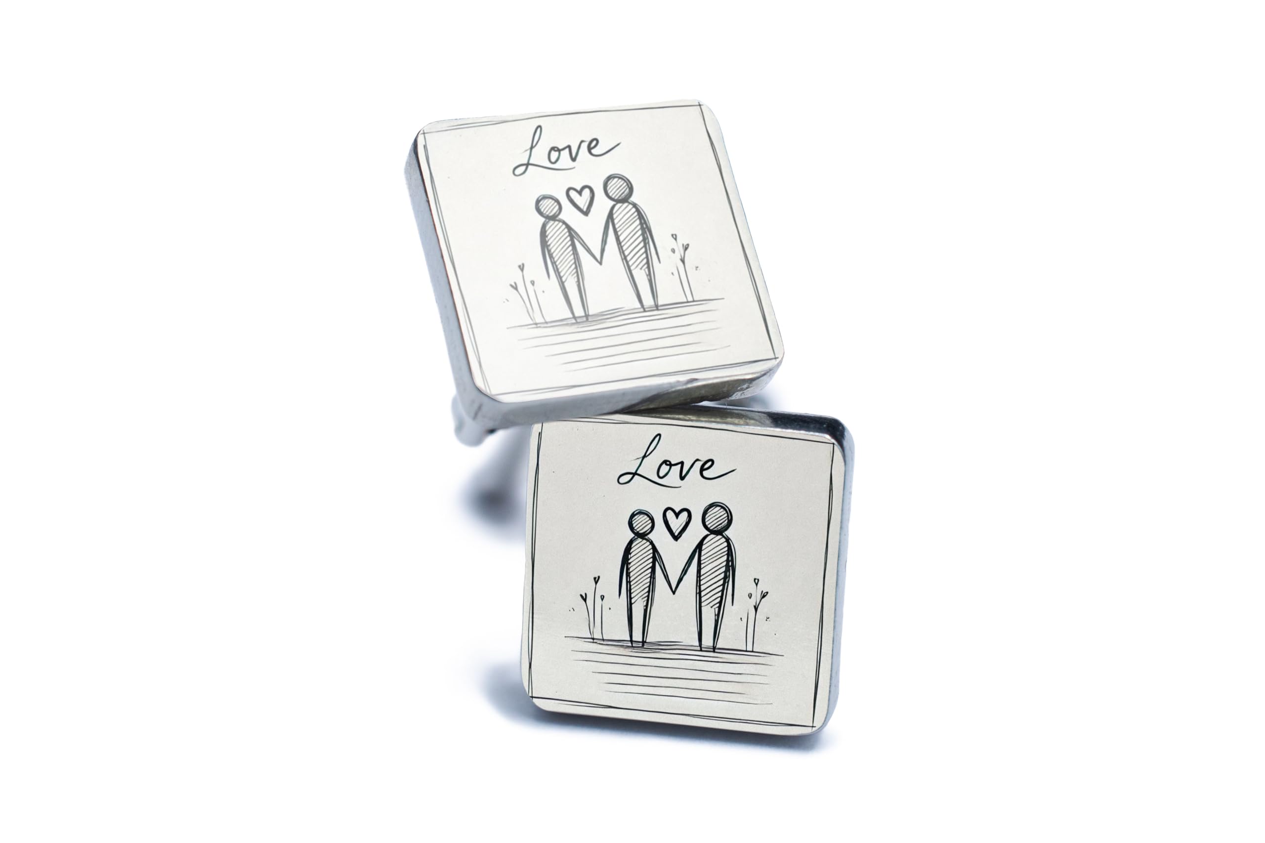 Celebrate the beauty of love with these minimalist sketch-style cufflinks. The unique design showcases two figures holding hands with a heart, making it a perfect symbol of unity and romance. Ideal for weddings, anniversaries, or special date nights, these cufflinks add a touch of elegance and sentimentality to any outfit. Crafted with care and high-quality materials, these cufflinks are both stylish and durable, ensuring they remain a cherished accessory for years to come. Packaged in a sophisticated gift box, they?re ready to be shared as a heartfelt token of affection with your loved one.
