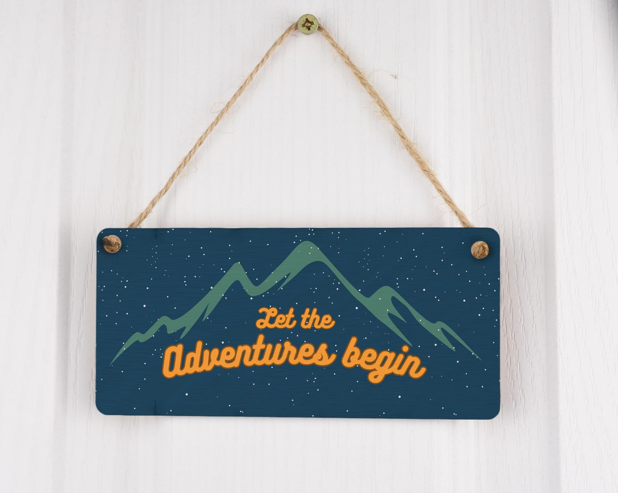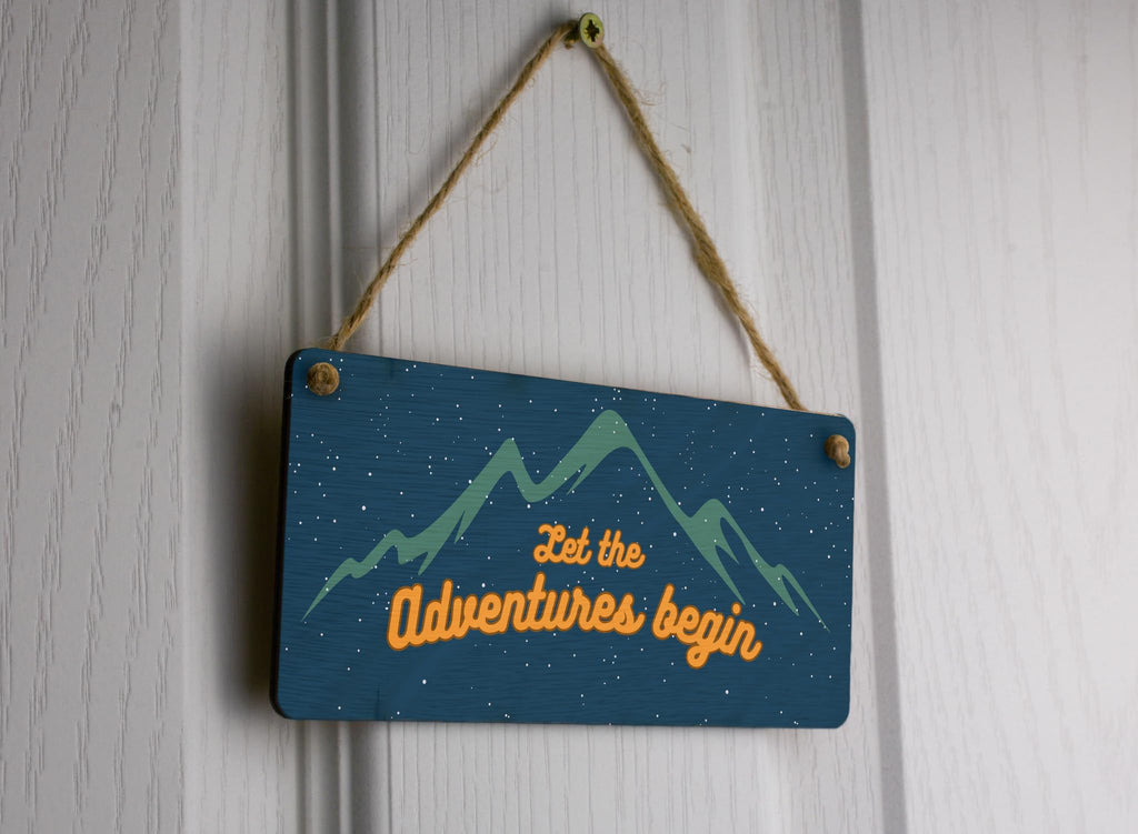 Introducing our Modern Blue Mountain Adventure Plywood Hanging Sign for the Home! Crafted with high-quality plywood, this hanging sign adds a touch of rustic charm to any living space. The modern blue mountain design beautifully complements various home decor styles, making it a perfect addition for nature lovers and adventurers alike. The sign reads 'Let the adventures begin', inspiring you to embark on new journeys every day. It serves as a great reminder to explore the outdoors and seek thrilling experiences. This hanging sign also makes for a thoughtful gift for friends and family, bringing a sense of adventure and wanderlust to their homes. Upgrade your home decor with our Modern Blue Mountain Adventure Plywood Hanging Sign today!