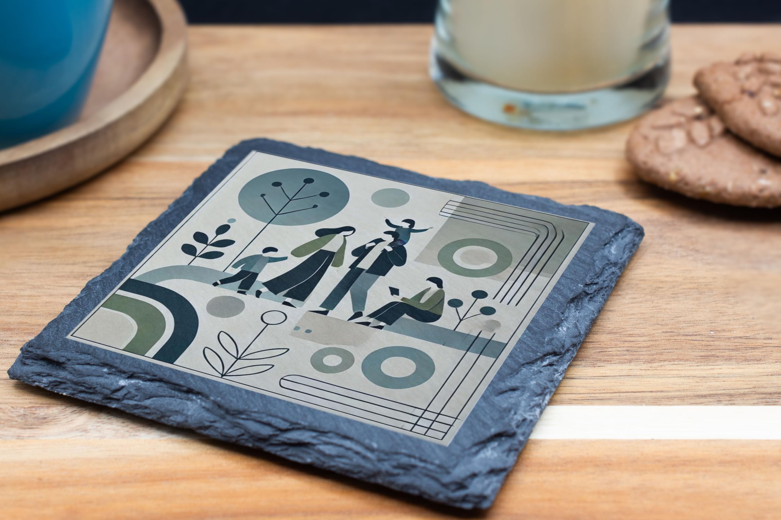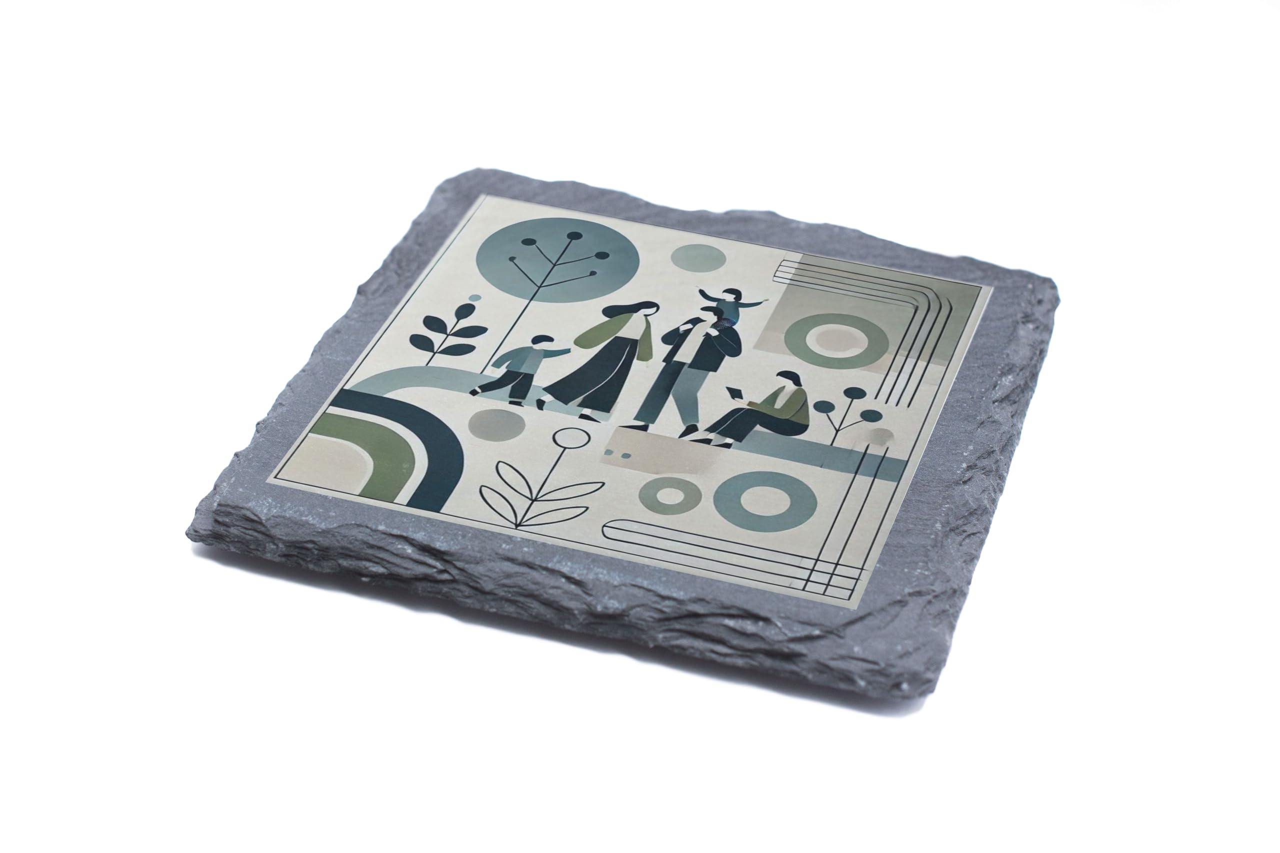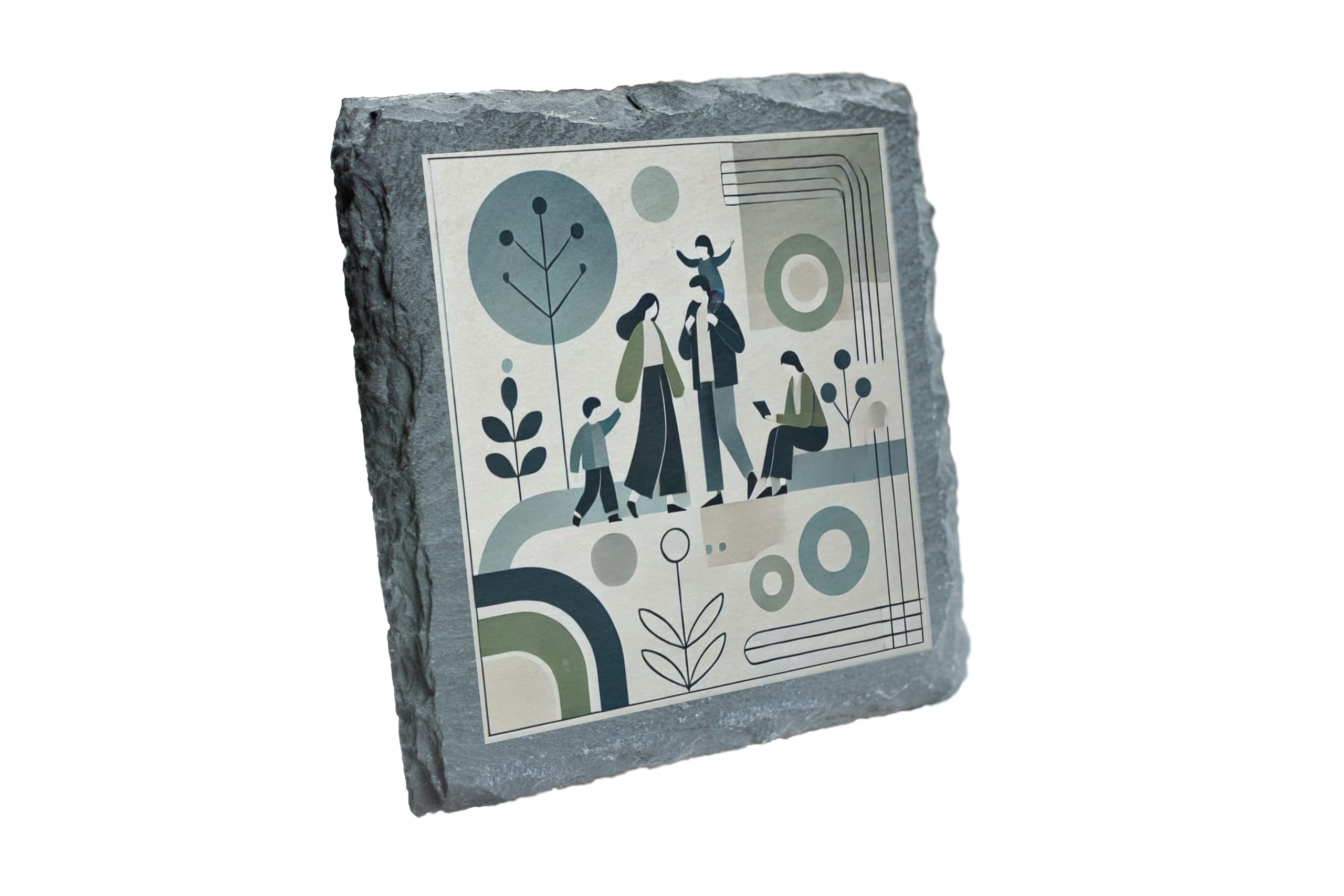 Modern Family Abstract Design Slate Coaster ? Contemporary Art Home Decor (slco-ds24-fammodrg)