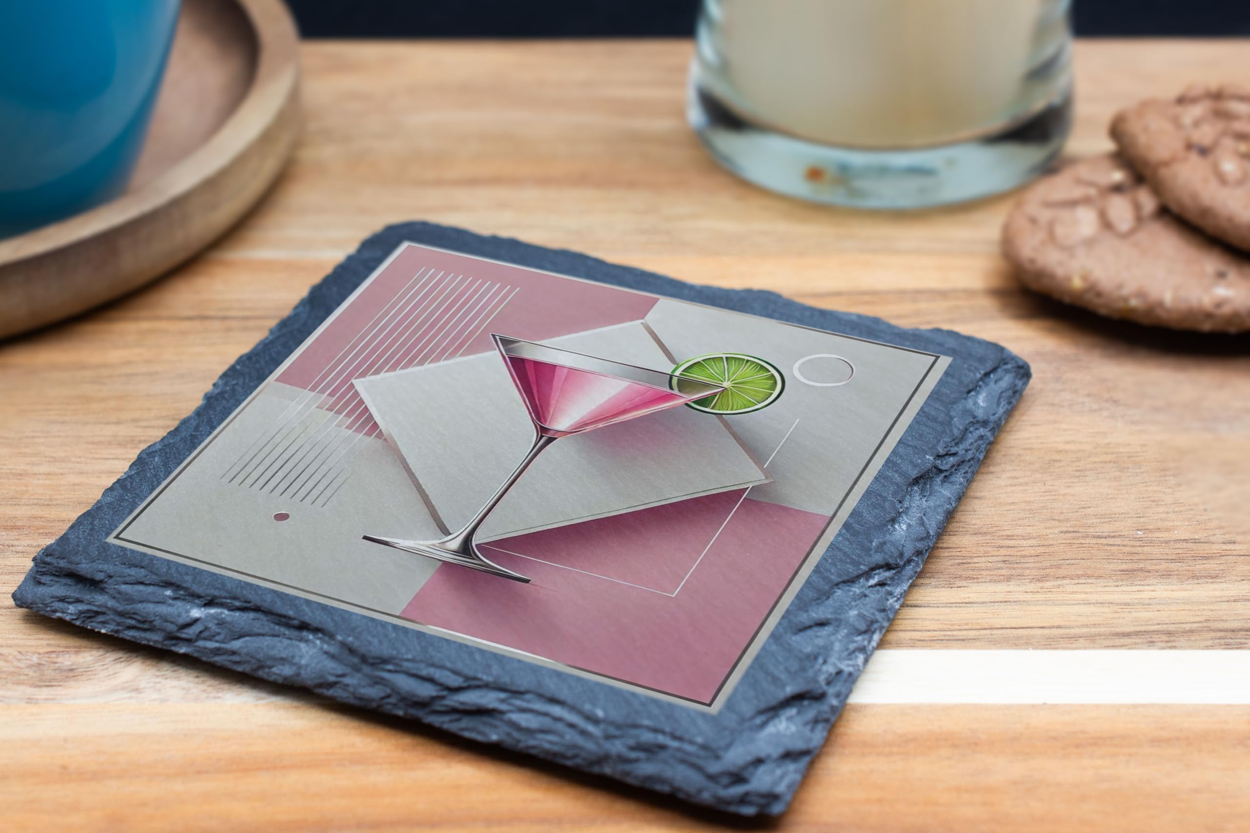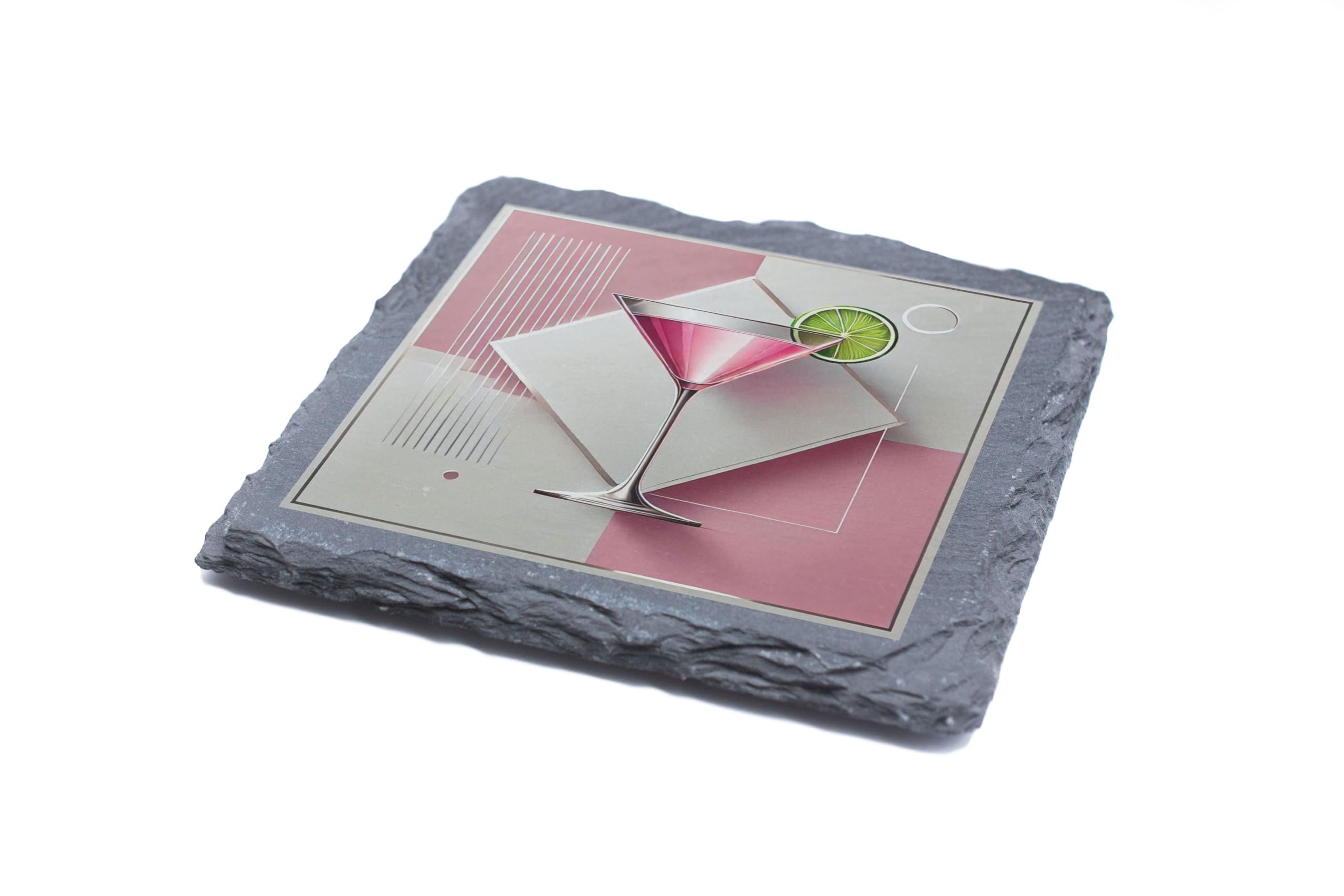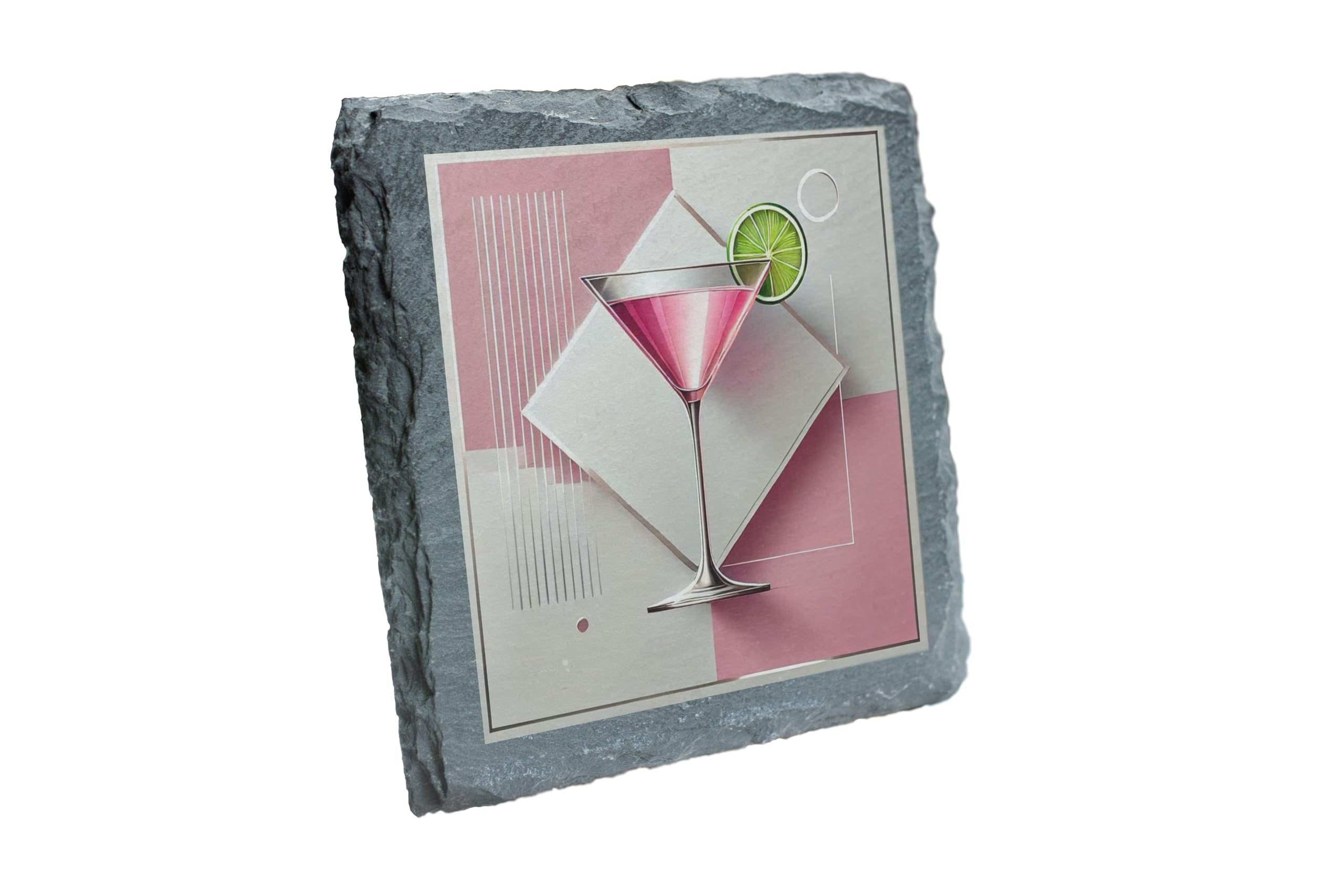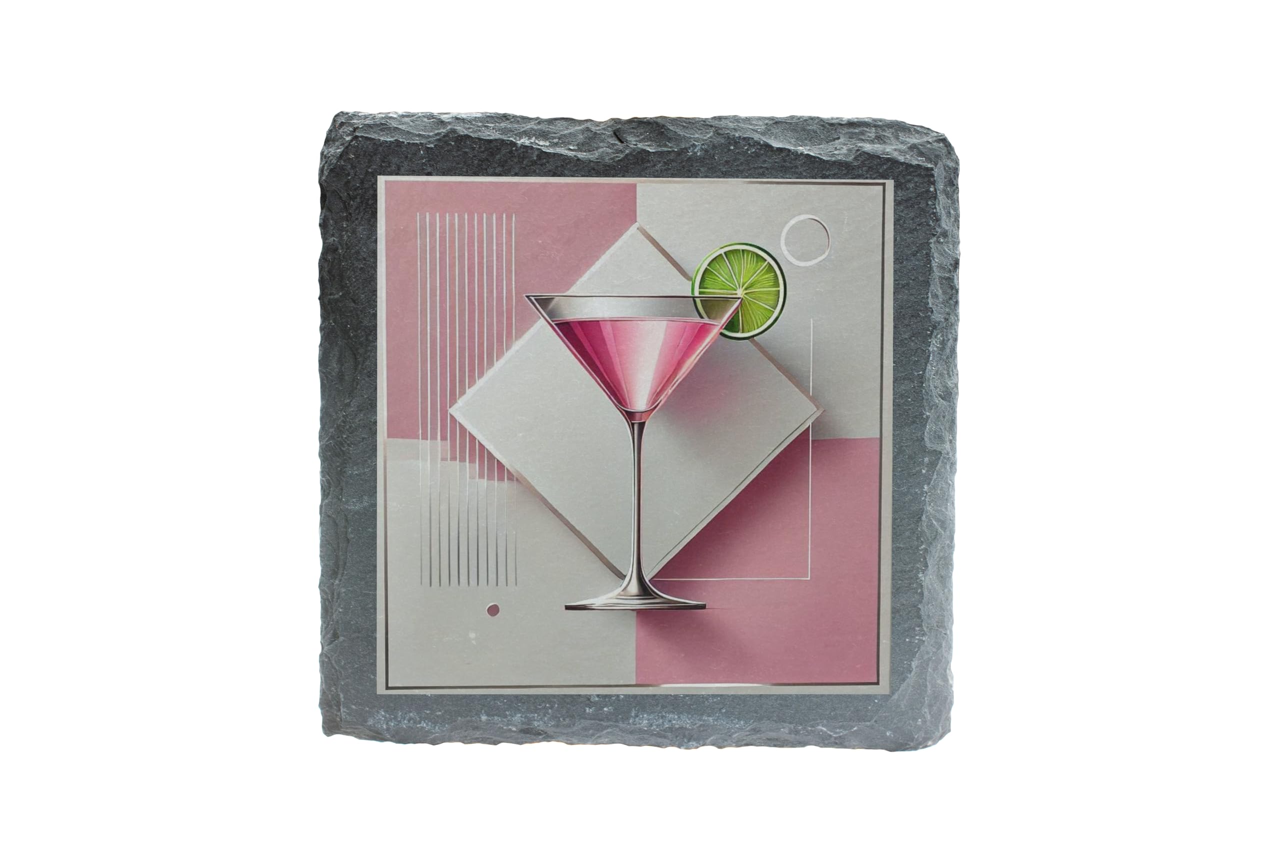 Modern Slate Coaster with Pink Martini Design ? Chic and Durable Beverage Accessory (slco-ds24-pinkcosmorg)