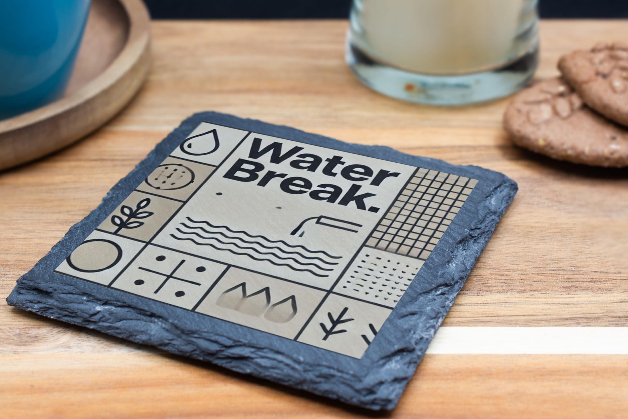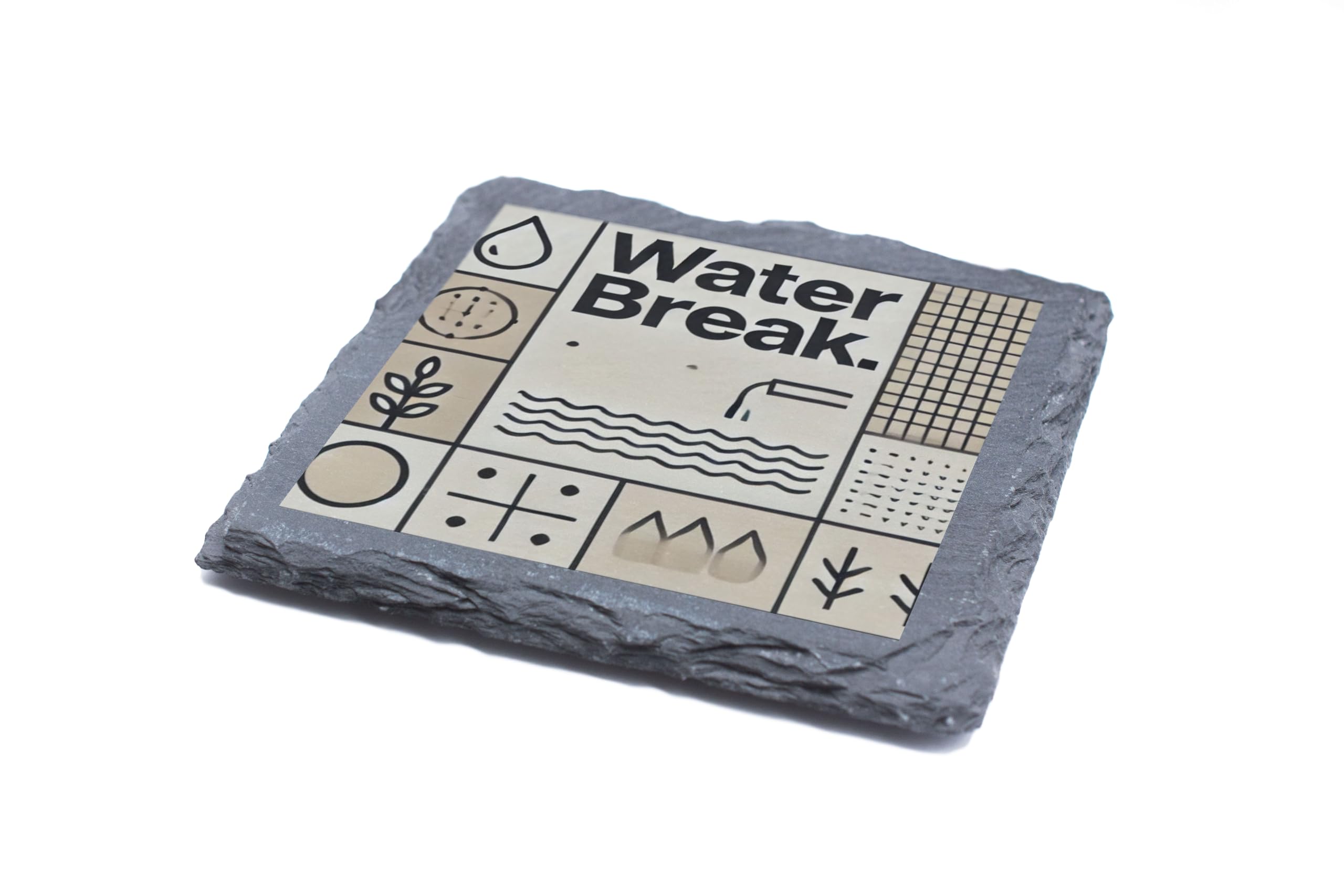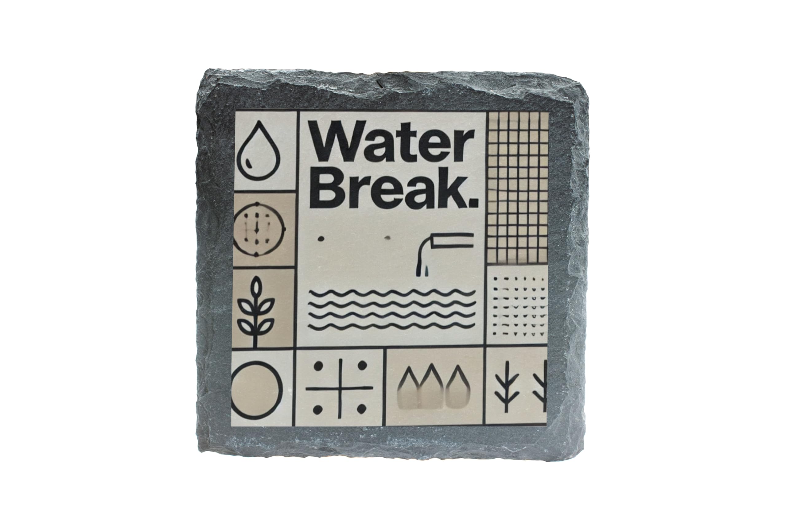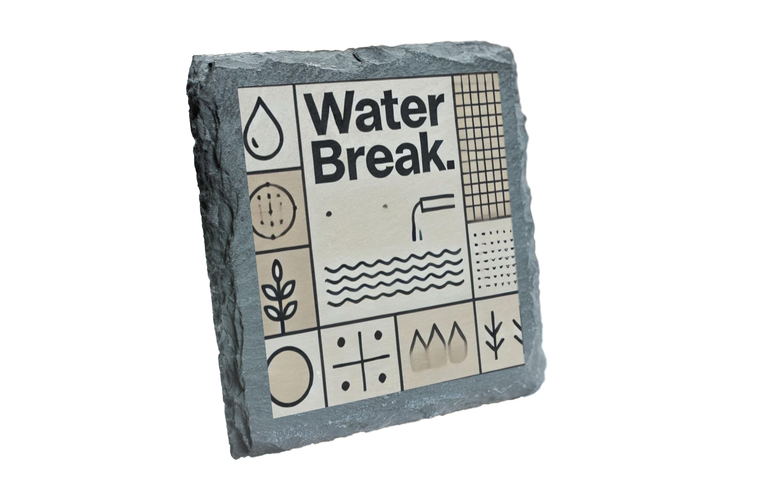 Elevate your hydration habits with this modern slate coaster, featuring a minimalist "Water Break" design adorned with geometric patterns. This unique accessory blends functionality and style, offering a gentle reminder to take a sip and stay refreshed throughout your day. Crafted from high-quality slate, this coaster provides a sturdy and heat-resistant base for your drinkware, protecting surfaces from spills and scratches. Its clean, contemporary look makes it a versatile addition to your home, office, or workspace decor. Perfect as a thoughtful gift or personal accessory, this eco-friendly coaster is designed to last, encouraging sustainable living while adding a touch of elegance to your surroundings. Stay hydrated and keep your space stylish with this functional yet decorative piece.
