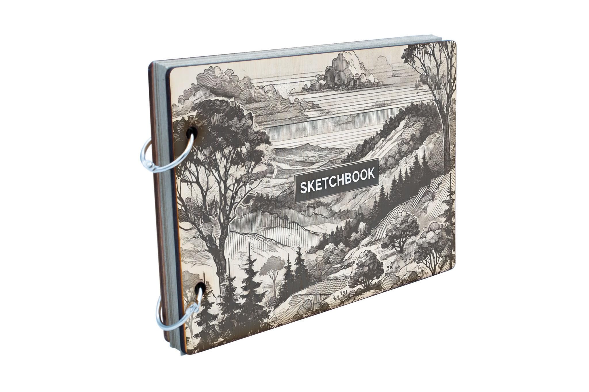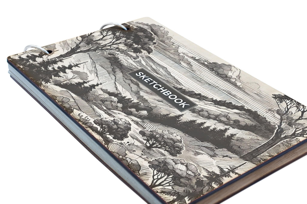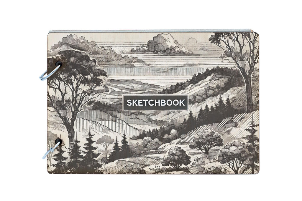 Capture the beauty of nature with our Monochrome Landscape Art Sketchbook featuring AI Generated Cover Art. This sketchbook is perfect for artists looking to express their creativity through detailed illustrations of scenic landscapes. The minimalist aesthetic of the monochrome design enhances artistic expression, making it a must-have for your artistic portfolio. The wooden cover adds a touch of elegance, while the AI Generated cover art showcasing a pastoral landscape sketch sets the tone for the artistic journey within. The 25 recycled pages provide ample space for your tree sketches, hills and mountains, and other nature scenes. Let your imagination run wild as you bring your scenic drawings to life in this ring-bound sketchbook that reads 'Sketchbook' on the cover.