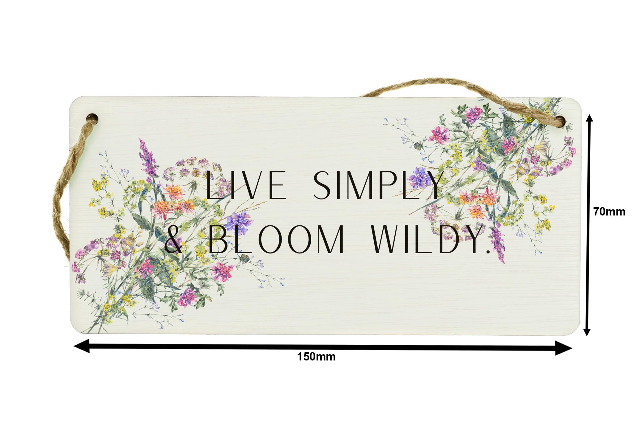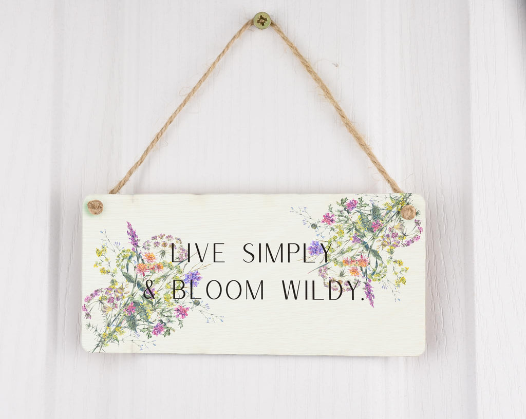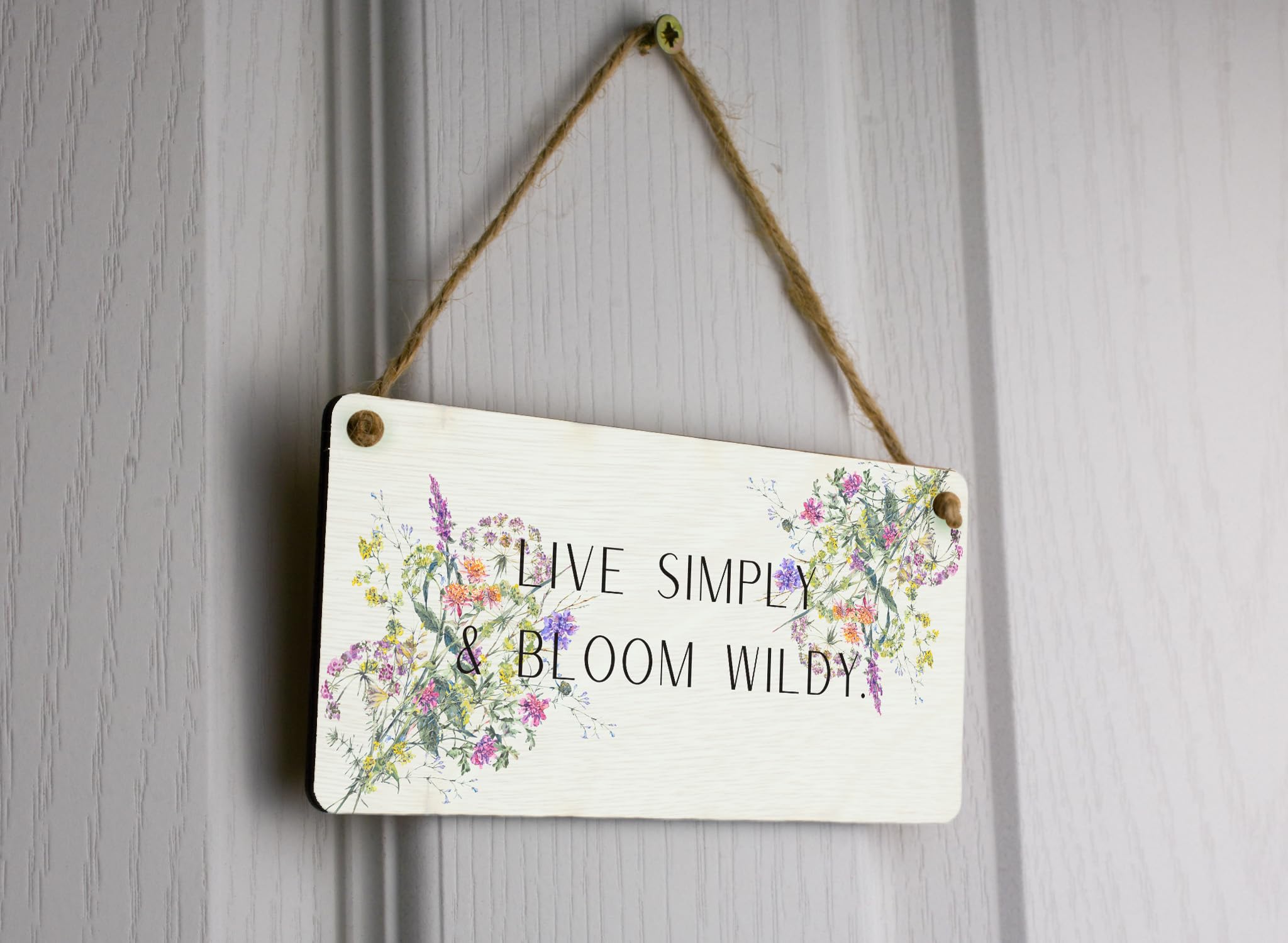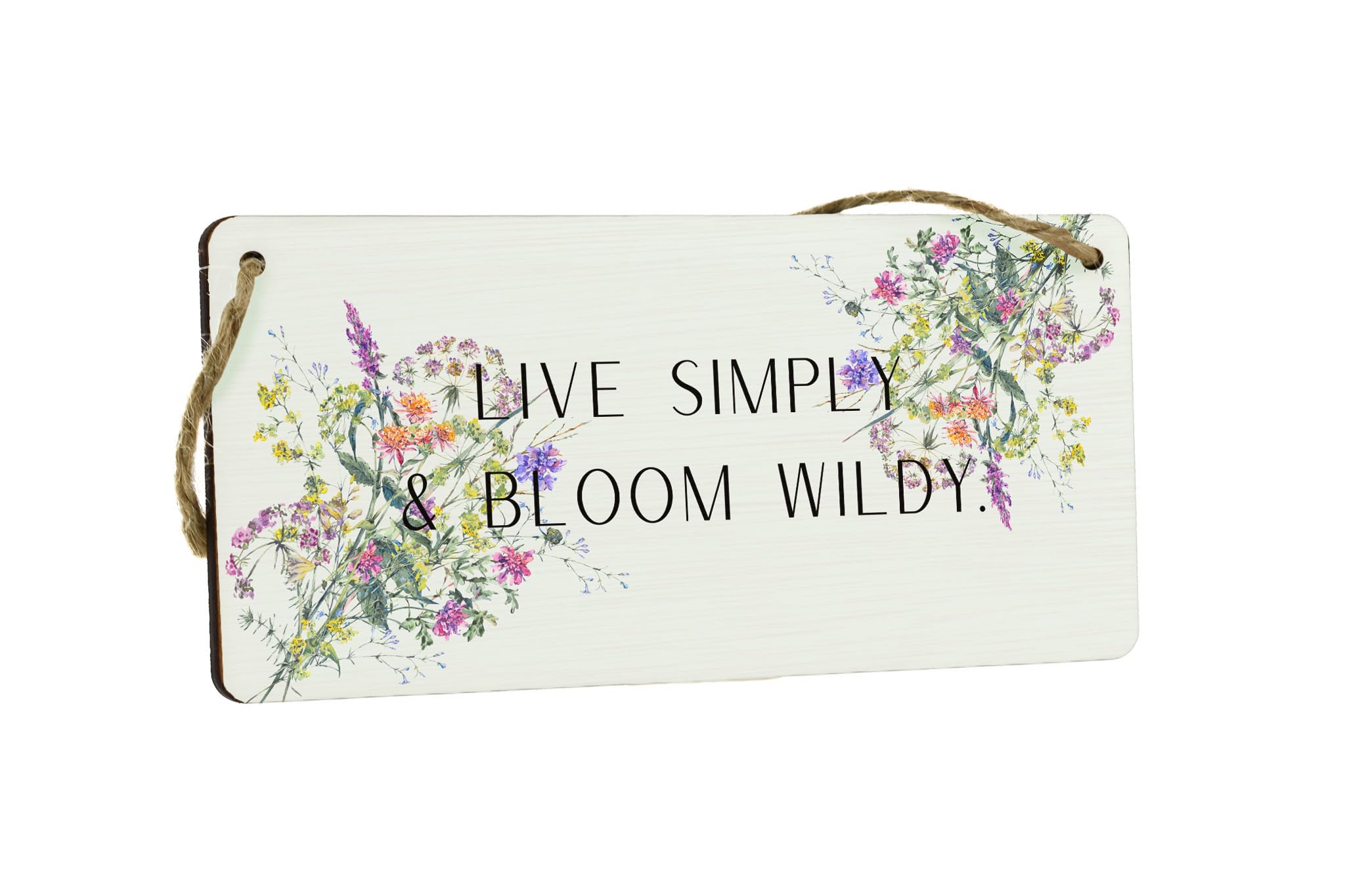 Motivational Floral Plywood Hanging Sign - Live Simply, Grow Wildly - Perfect Idea for Mum, Daughter, and Friends to Spruce up Home Decor