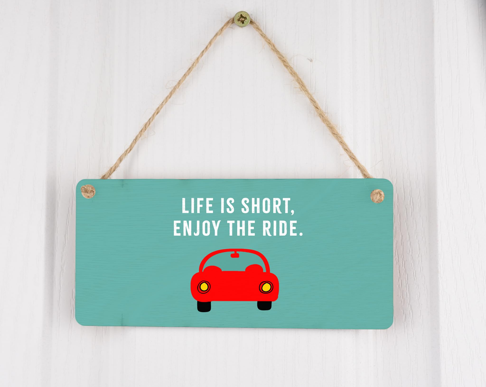 - Reads 'Life is short, enjoy the ride' to inspire positivity